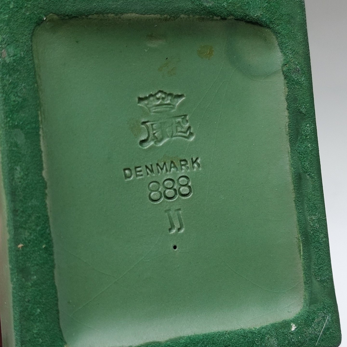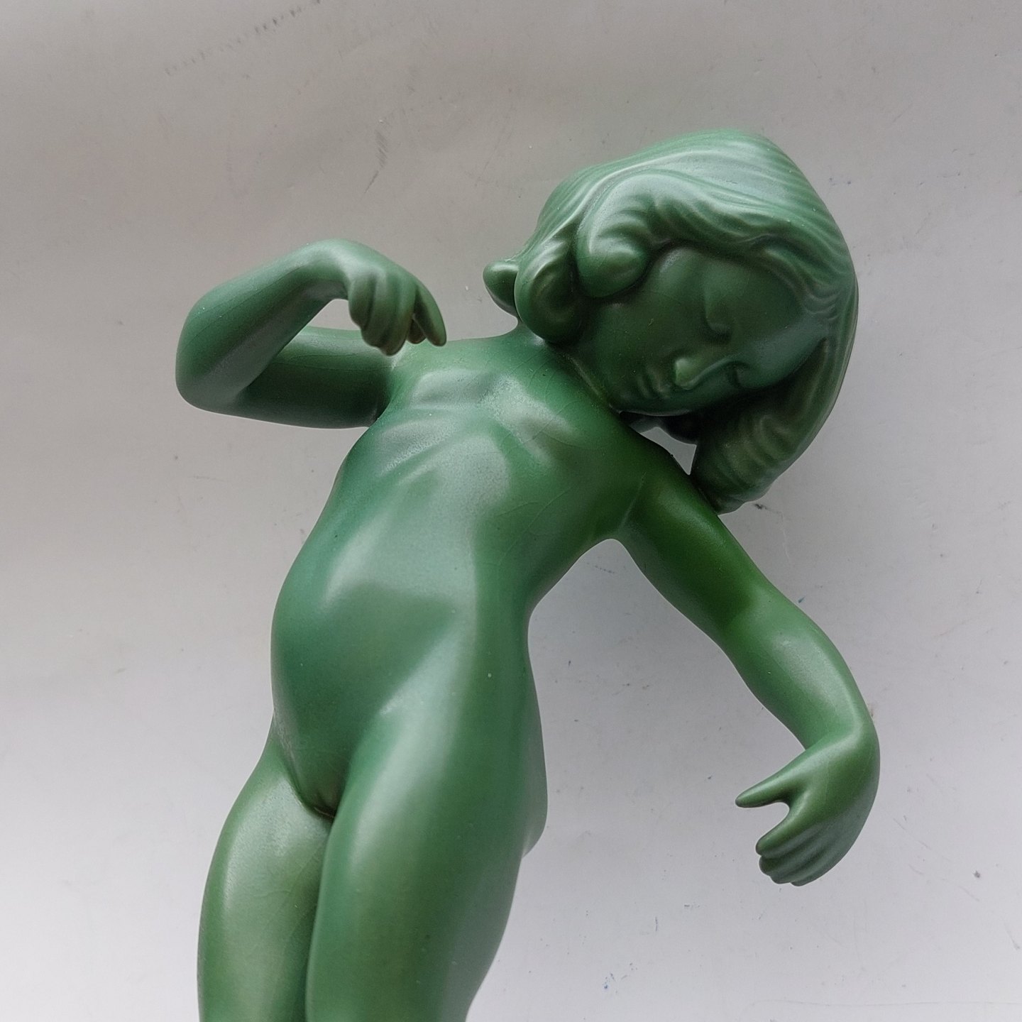 Green glazed figure in ceramic by Venus Kalipygos by Kai Nielsen for Peter Ipsen's Widow. The factory mark on the bottom together with the model number. In good condition. H. 21½ cm