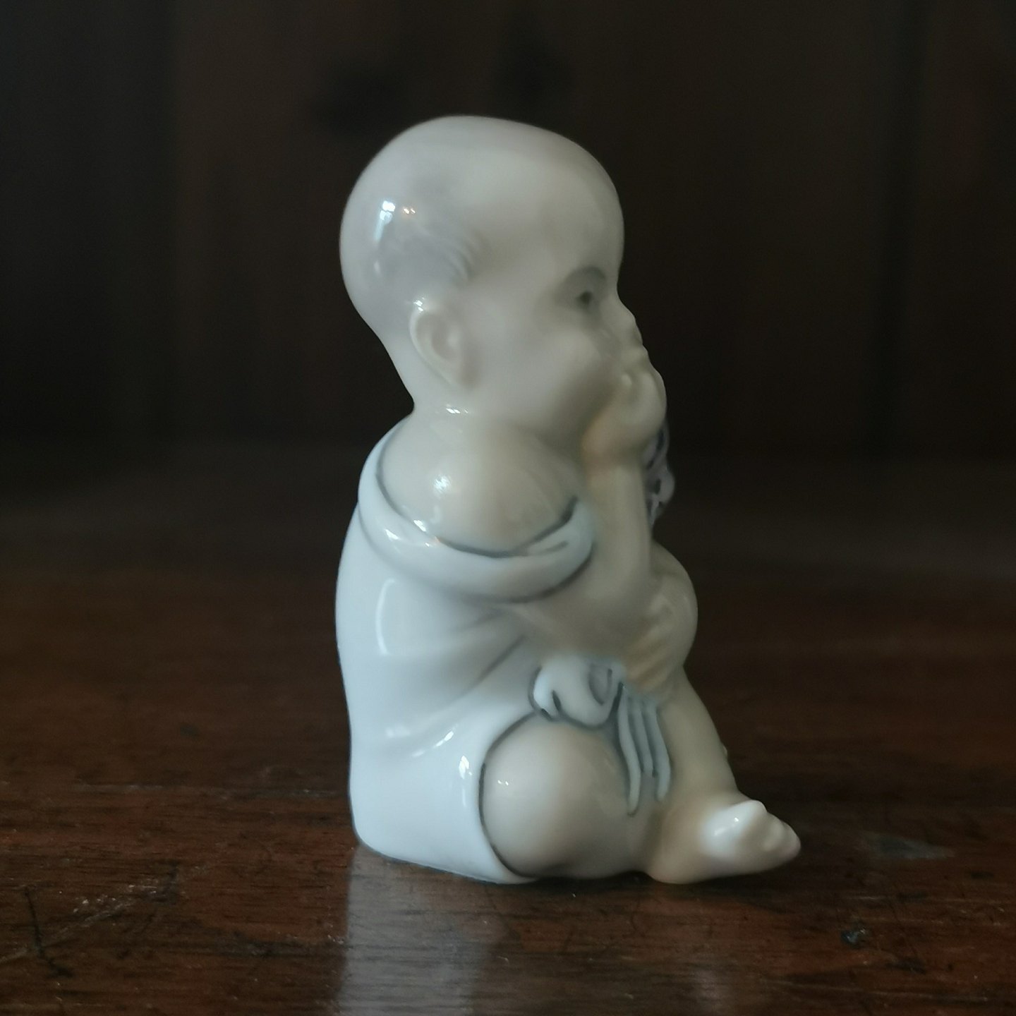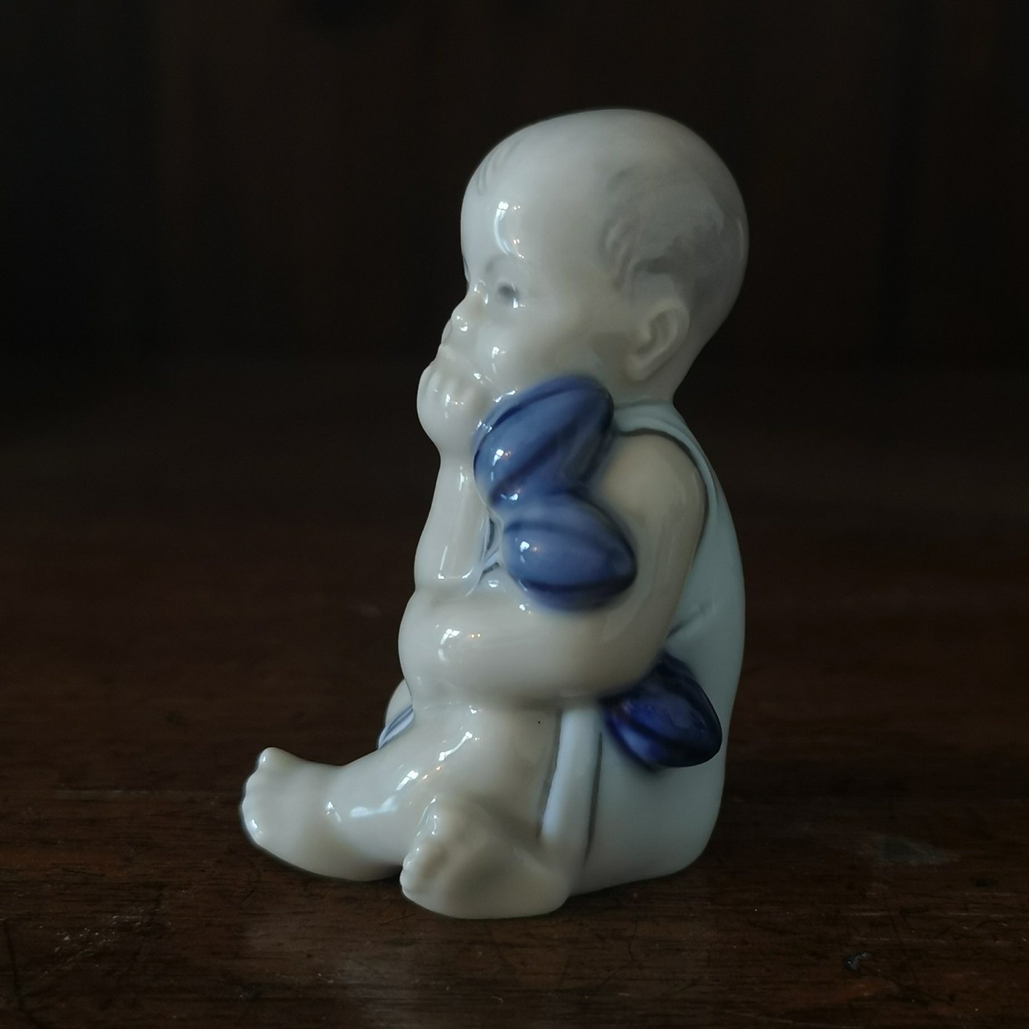 Small porcelain figurine designed by Hans H. Hansen for Royal Copenhagen in 1927. The figurine of the little boy with flowers is called "Spring". In perfect condition. Model number 2856. Manufactured around 1930. Factory first production. Factory mark on the bottom. H. 7 cm.