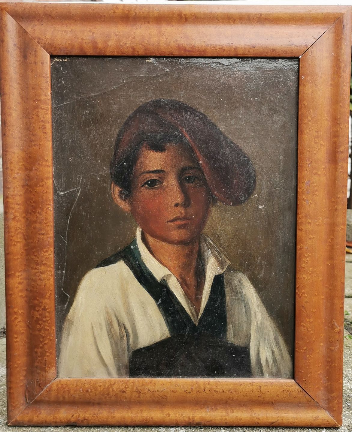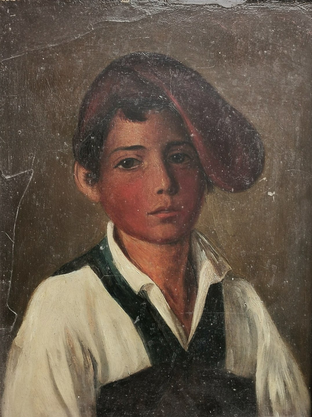 Motiv af ung italiensk dreng med rød hue. Formodes malet i anden halvdel af 19. århundrede. Fremstår i god stand. Mål: 33 x 41 cm.