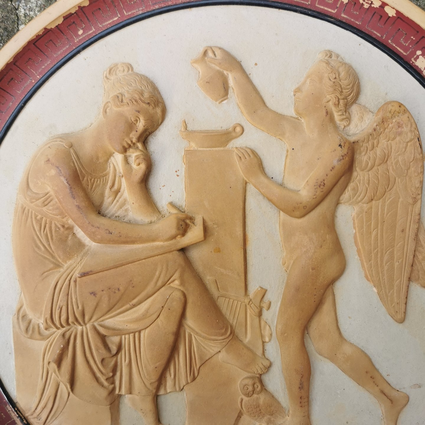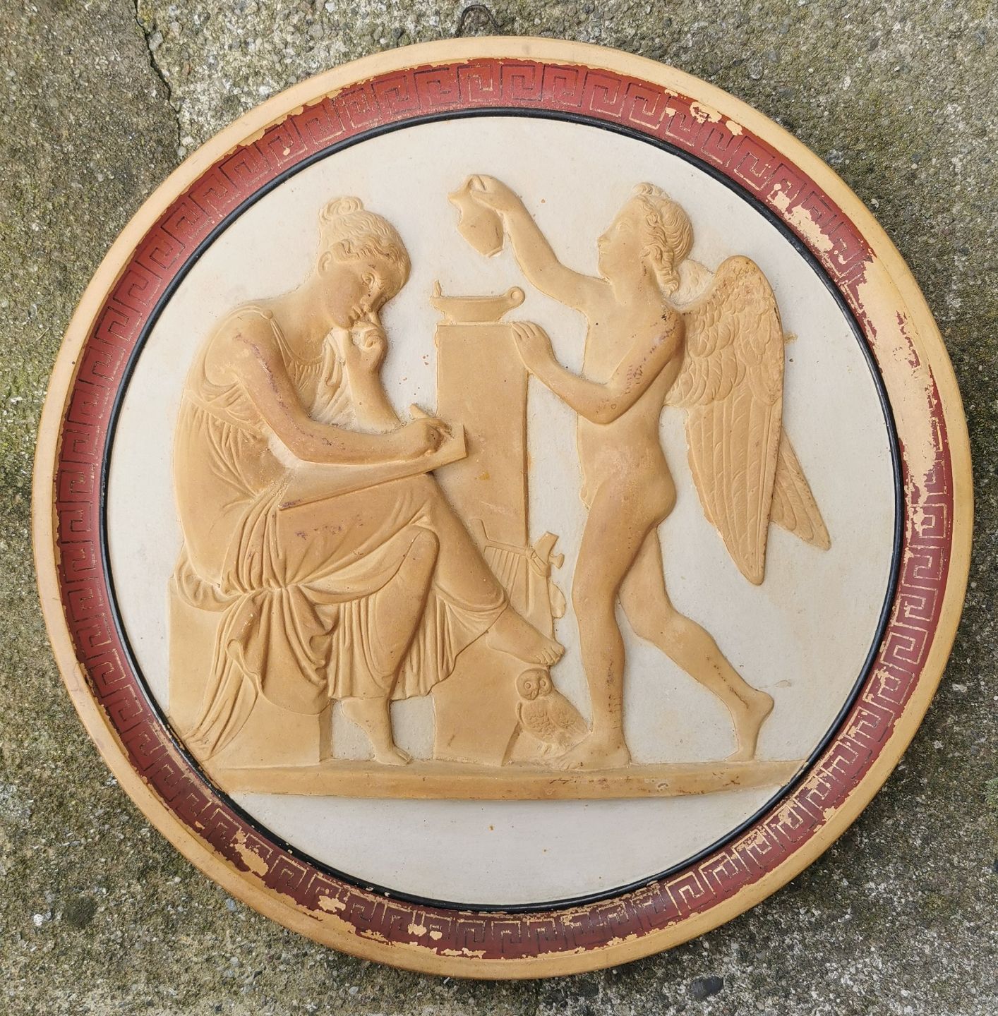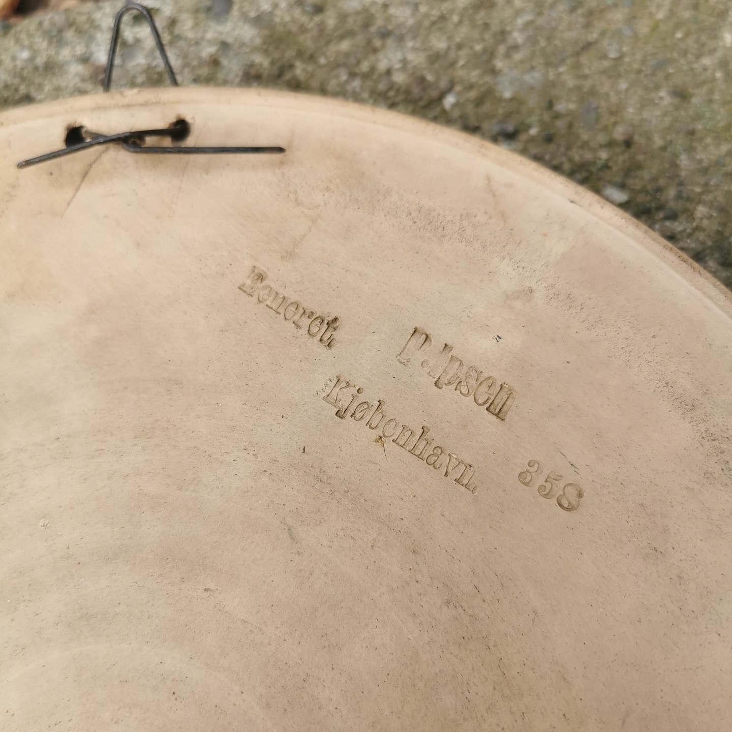 Terracotta plate from the Copenhagen Pottery Factory Peter Ipsen approx. 1900. The original was made by Sculptor Bertel Thorvaldsen (1770 -1844) in Rome in 1808. This plate is in good condition with normal wear and tear on the surface. No damages or repairs. The factory mark on the back. Dimensions: the plate measures 24-24.5 cm in diameter.