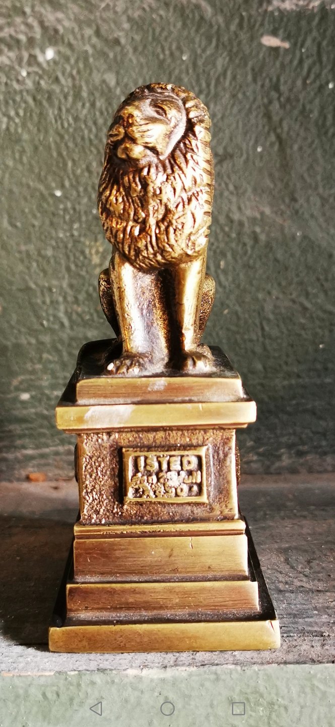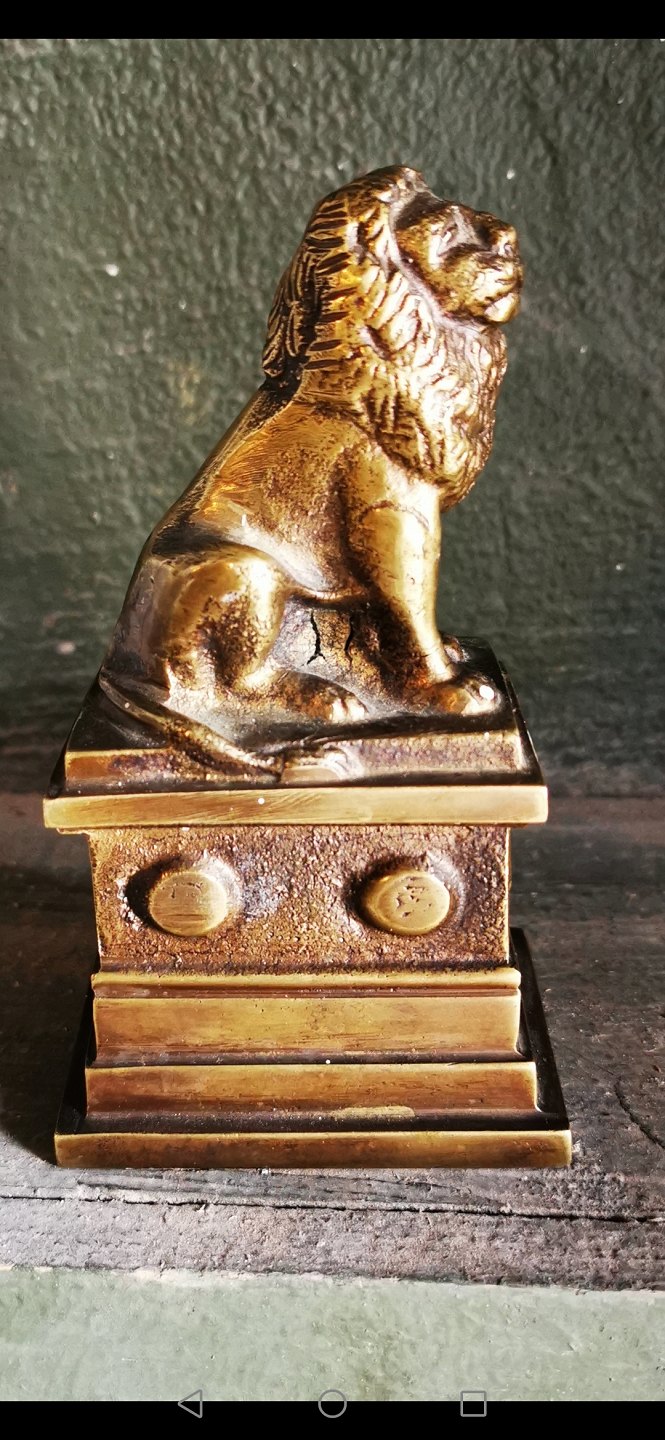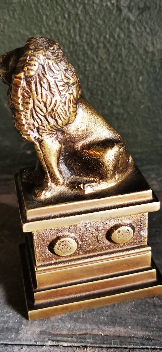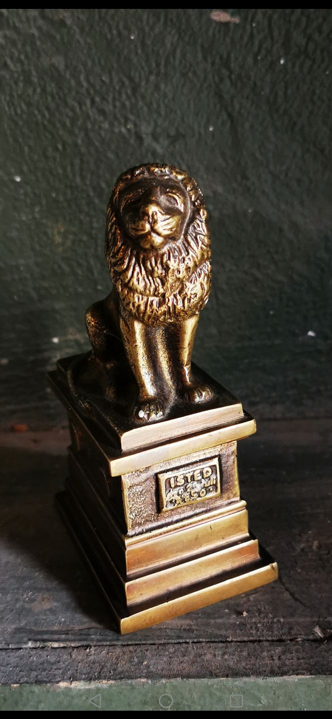 Smaller (heavy) figure of the Isted Lion in bronze. Made by the sculptor H. W. Bisssen 1859-60 in memory of the battle of Isted Hede in 1850. Appears in good condition. Presumably produced around 1900. Dimensions: H. 13½ cm, base dimensions are 5½ x 7½ cm,