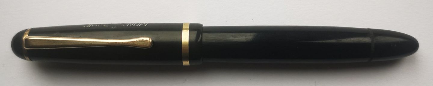 Sort Montblanc no. 344G fyldepen fra 1950´erne. Fremstår i god stand. Ingen skader eller reparationer. Montblanc indprintet på hætten. Modelnummer på bundskruen. Piston blæk-påfylder. Fungerer fint. Montblanc 14 karat guldspids. Klar til at blive brugt. 13 cm lang.