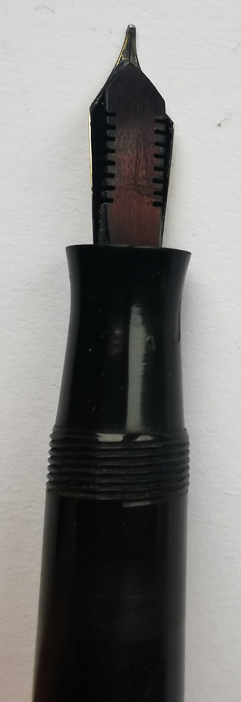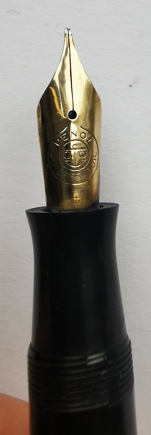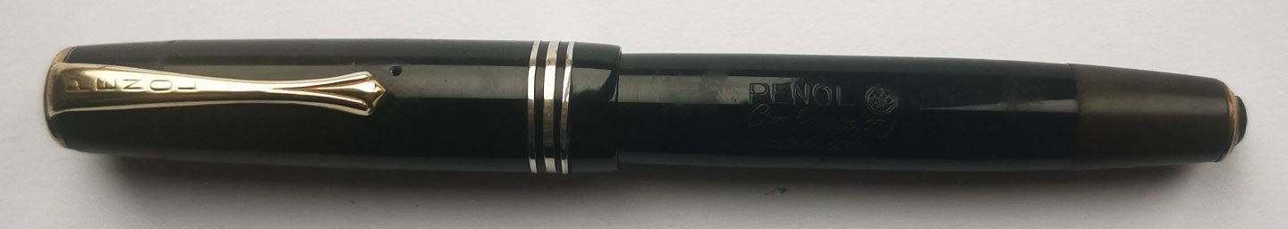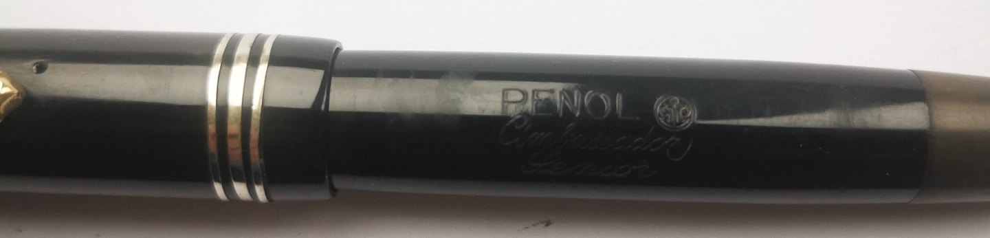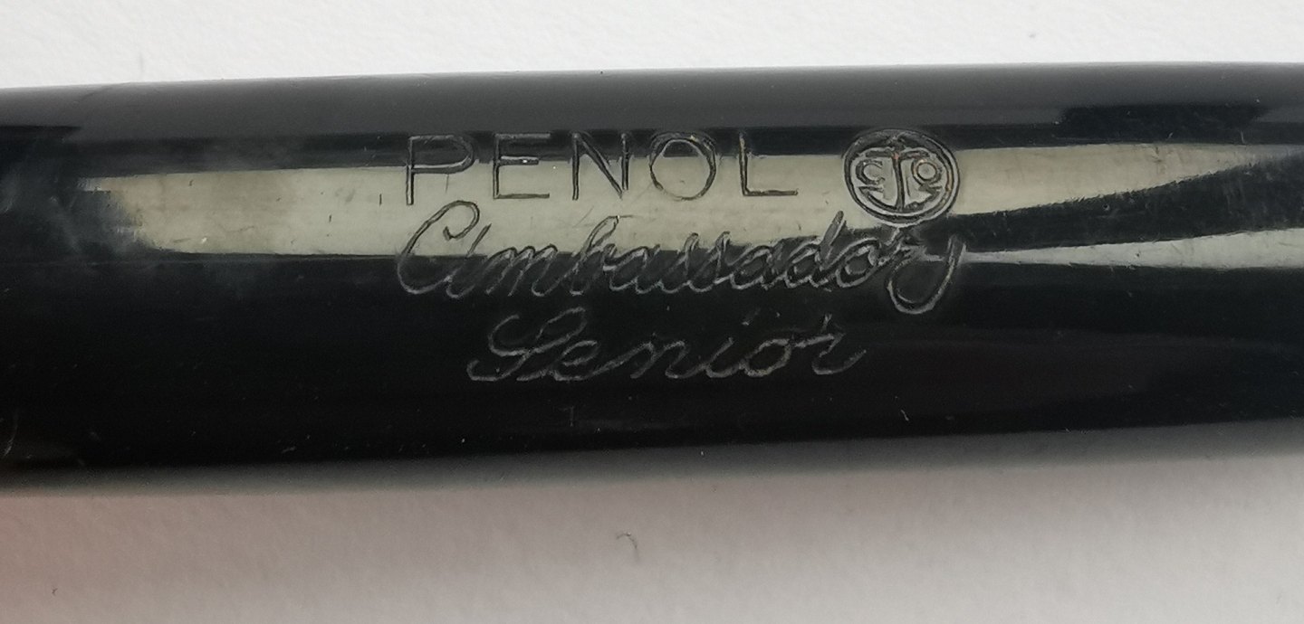 LARGE CIGAR: Black Penol Ambassador Senior fountain pen. Produced in Denmark in the 1940s. Appears in good condition without damage or repairs. All parts original from the Penol factory. "Push button" ink filling system. Ambassador nib. L. 13½ cm.