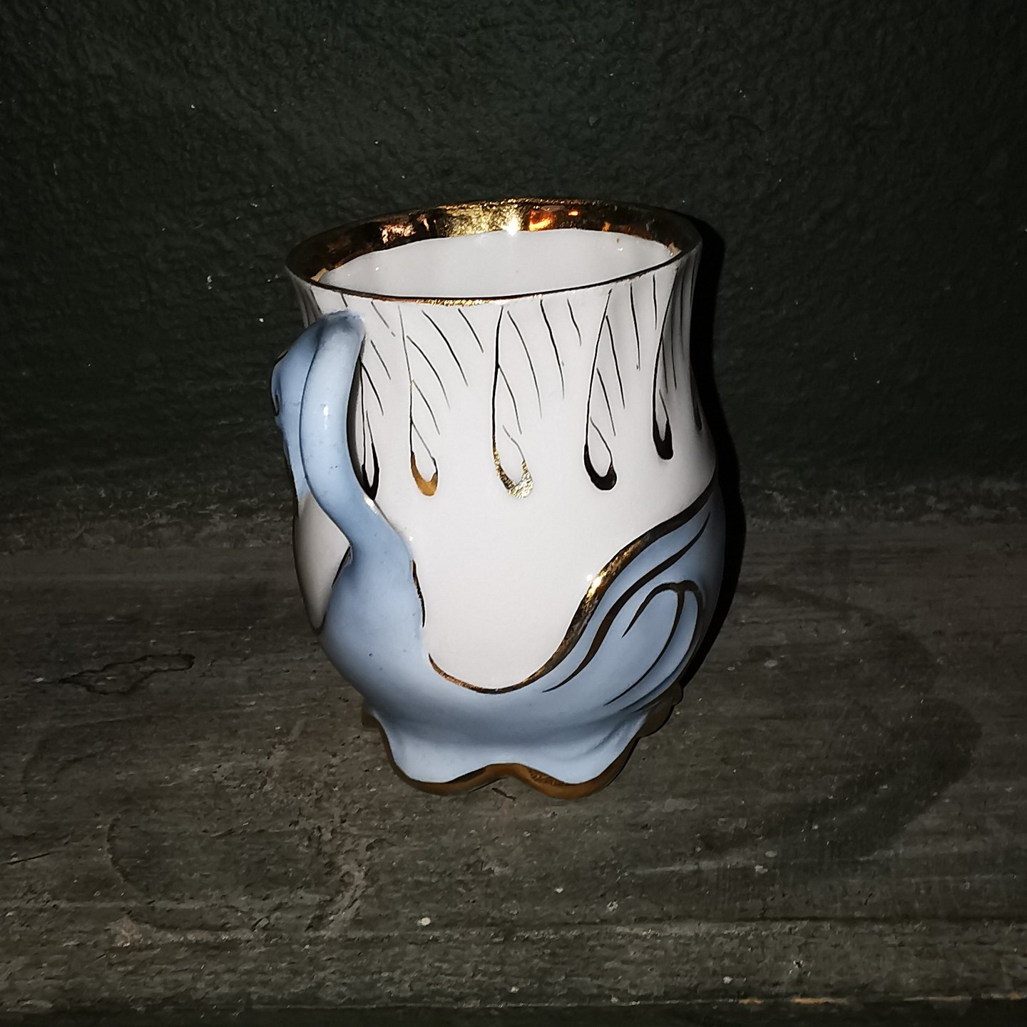 Art Nouveau "Svane-kop" fra Bing & Grøndahl in porcelain fra slutningen af 19. århundrede. Hanken udgør svanens hoved og hals ! I perfekt stand uden skader eller reparationer. Fabriksmærket med B&G i blåt på undersiden. H. 8½ cm
