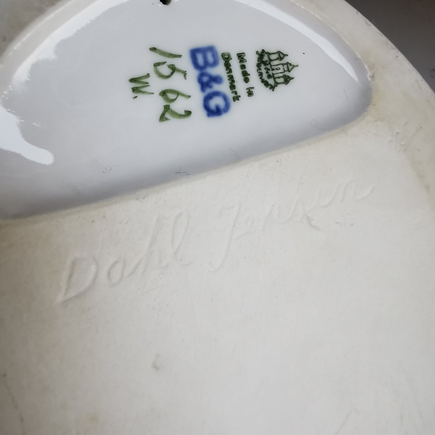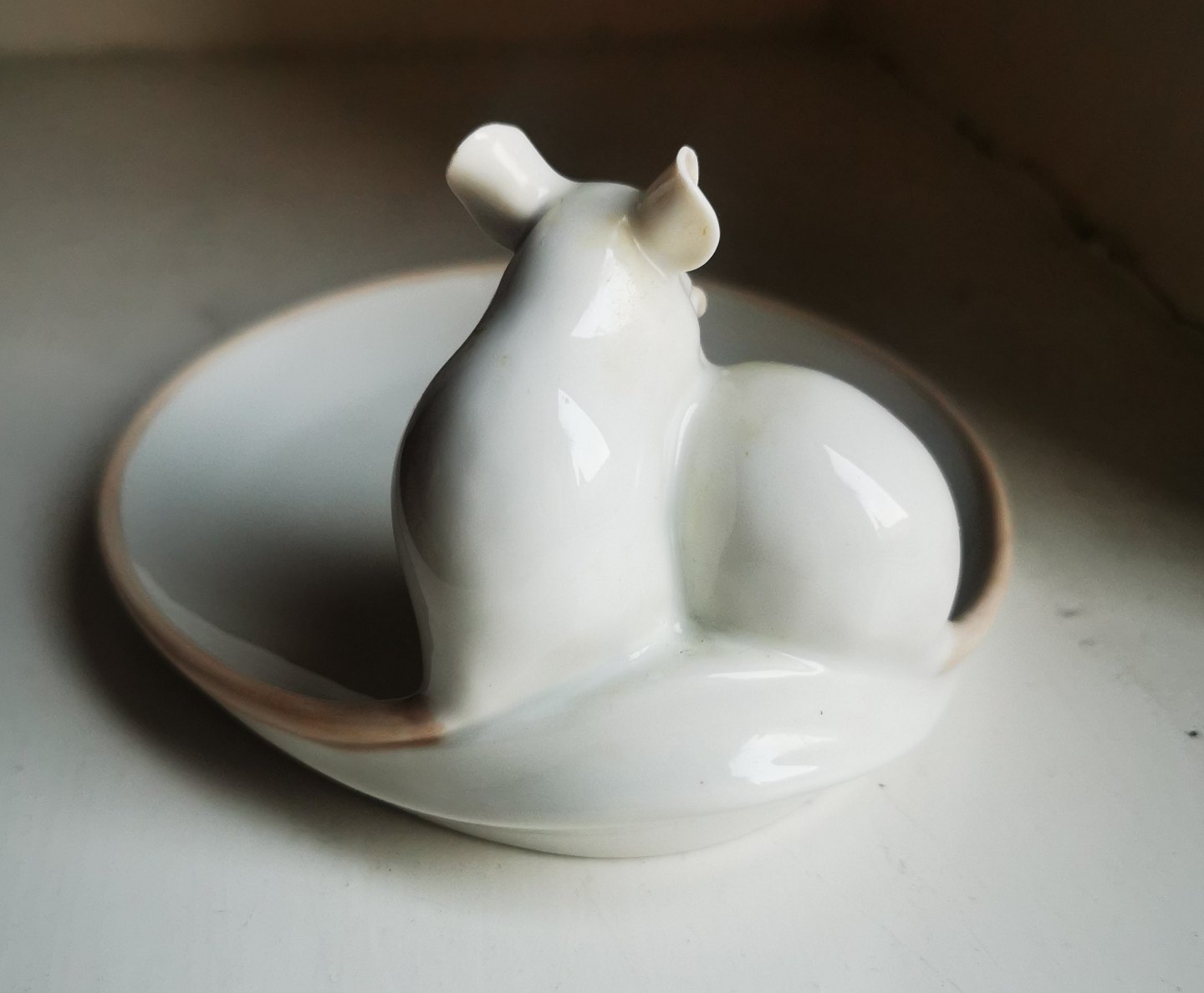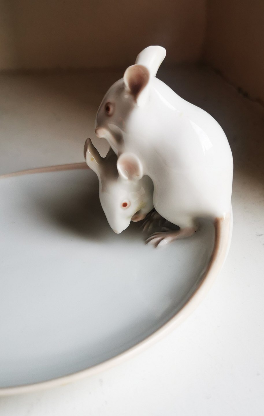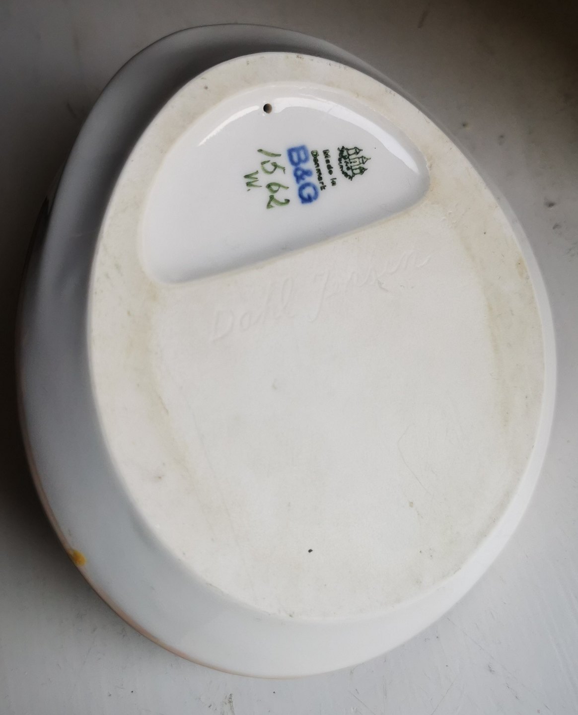 B&G ashtray in porcelain with decoration with two mice. In perfect condition. No damage or repairs. Factory first production. The factory mark at the bottom together with artist signature Dahl Jensen. Model number 1562. Dimensions: H. 8� cm. 14� cm long / deep and 12� cm wide.