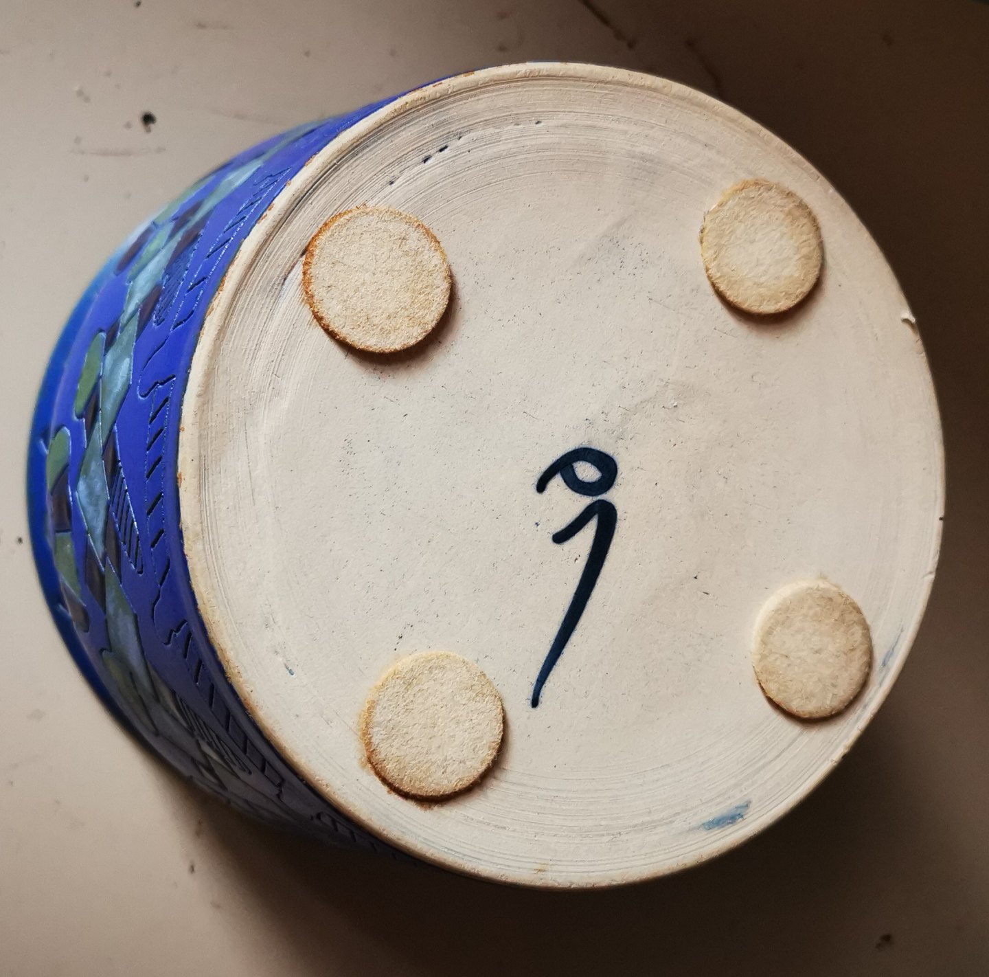 Urtepotteskjuler i keramik af Evelyn Noval. Fremstillet i 1990´erne på Bornholm. Fremstår i god stand. Signeret af kunstneren på bunden. Mål: H.