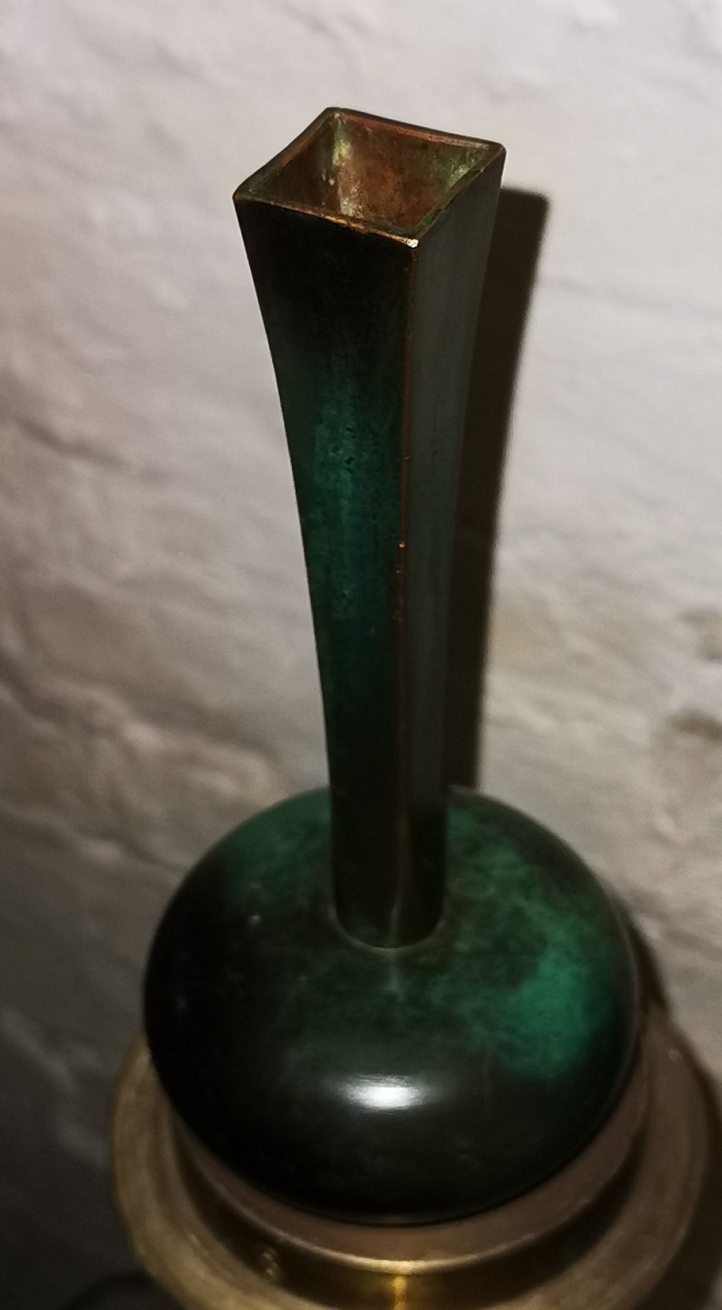 rt Deco vase in bronze from the Swedish bronze foundry GAB (Goldsmedjarnas Aktiebolag) from the 1930s. Designed by Danish Ib Just Andersen (1884-1943). Model number 67. Appears in good condition without damage or repairs. Dimensions: H .: 18½ cm
