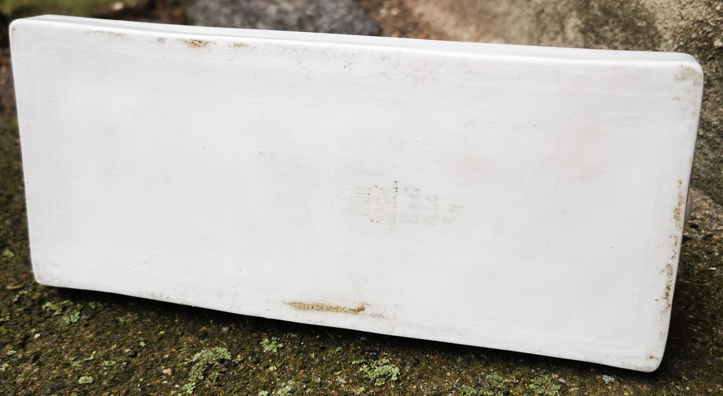 Brevpresser eller brevvægt i porcelæn fra Bing & Grøndahl. Dreng leger med krabbe. Produceret 1914-1915. Fremstår med lille skade. Skår på krabbens højre klo. Ellers i god stand. 1. sortering. Modelnummer 1836. Stemplet bl.a. COPENHAGEN samt B&G i blåt. Mål: 9½ cm høj. Basen måler 8 x 18½ cm.