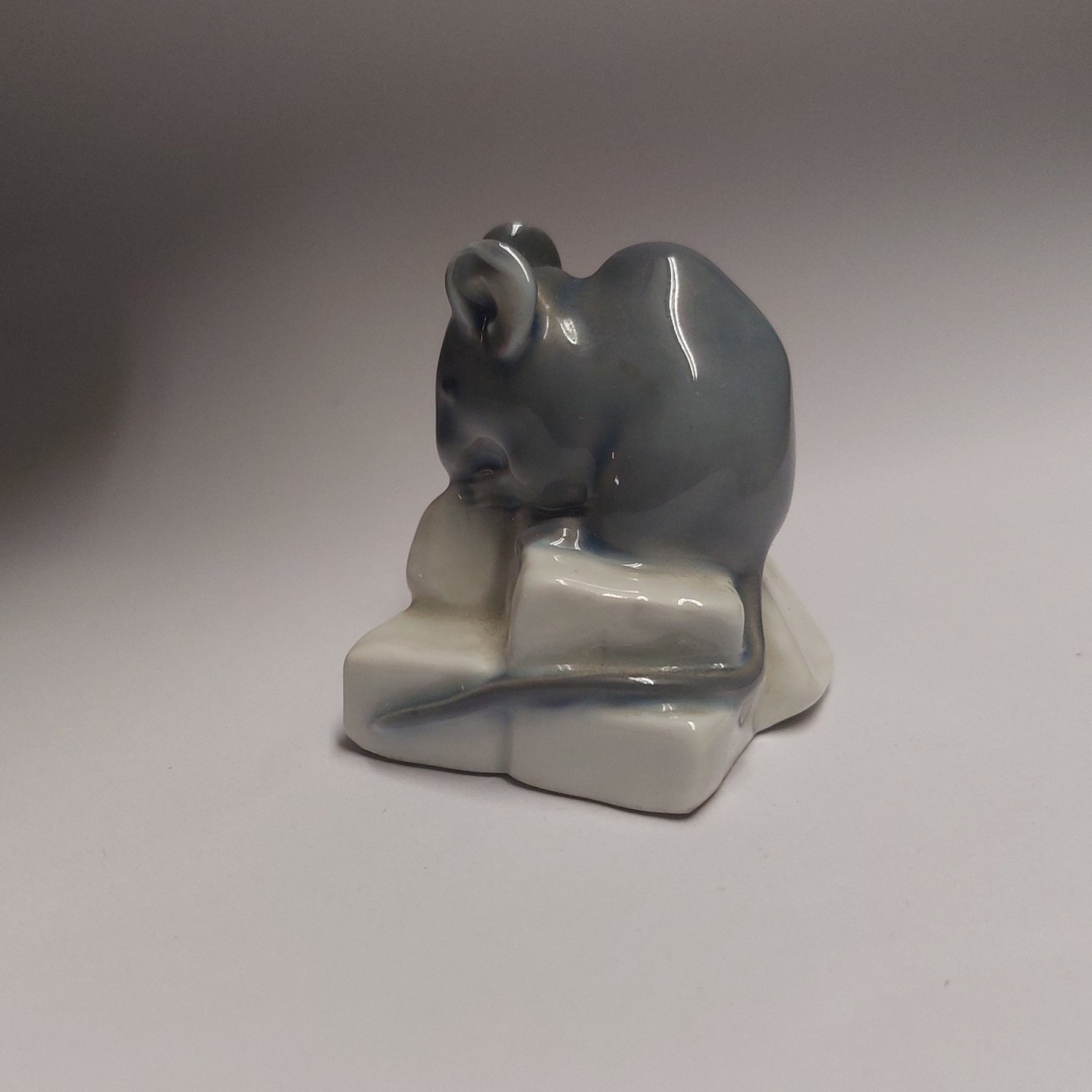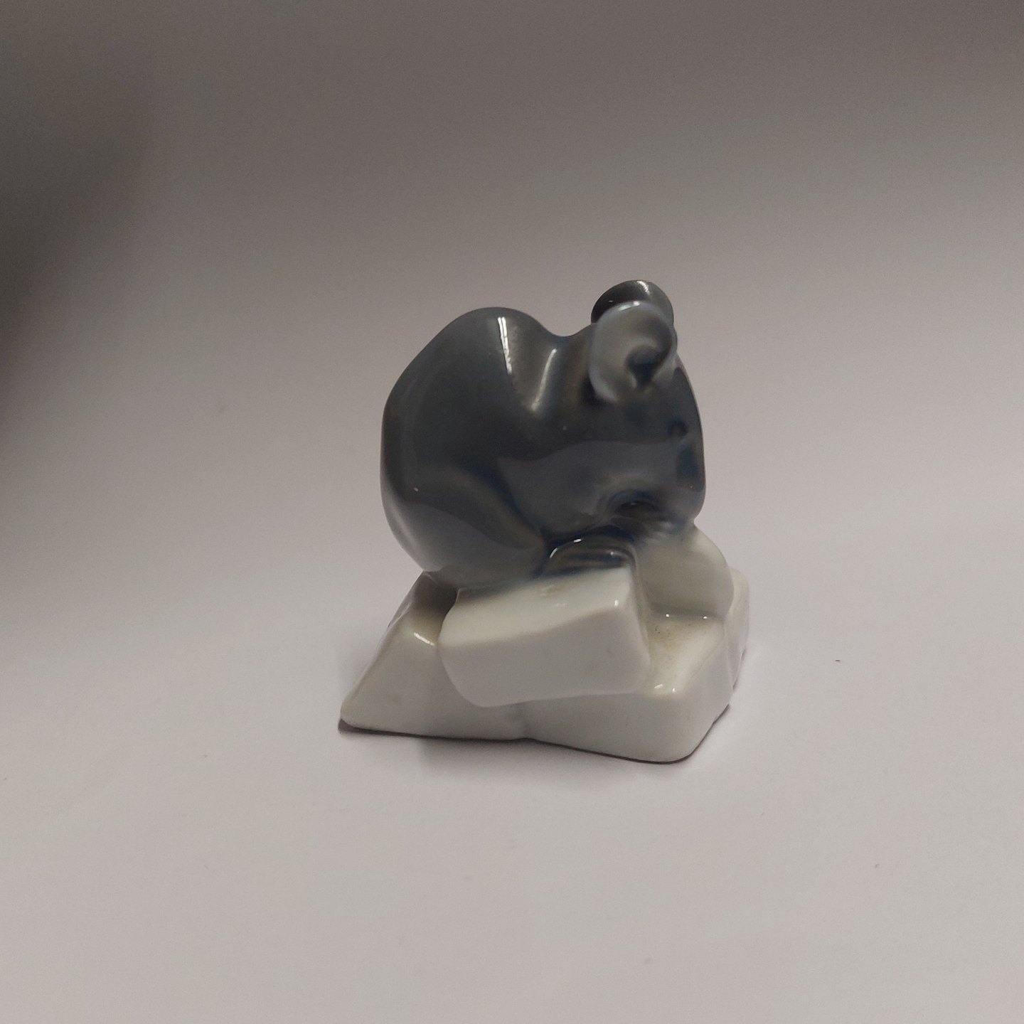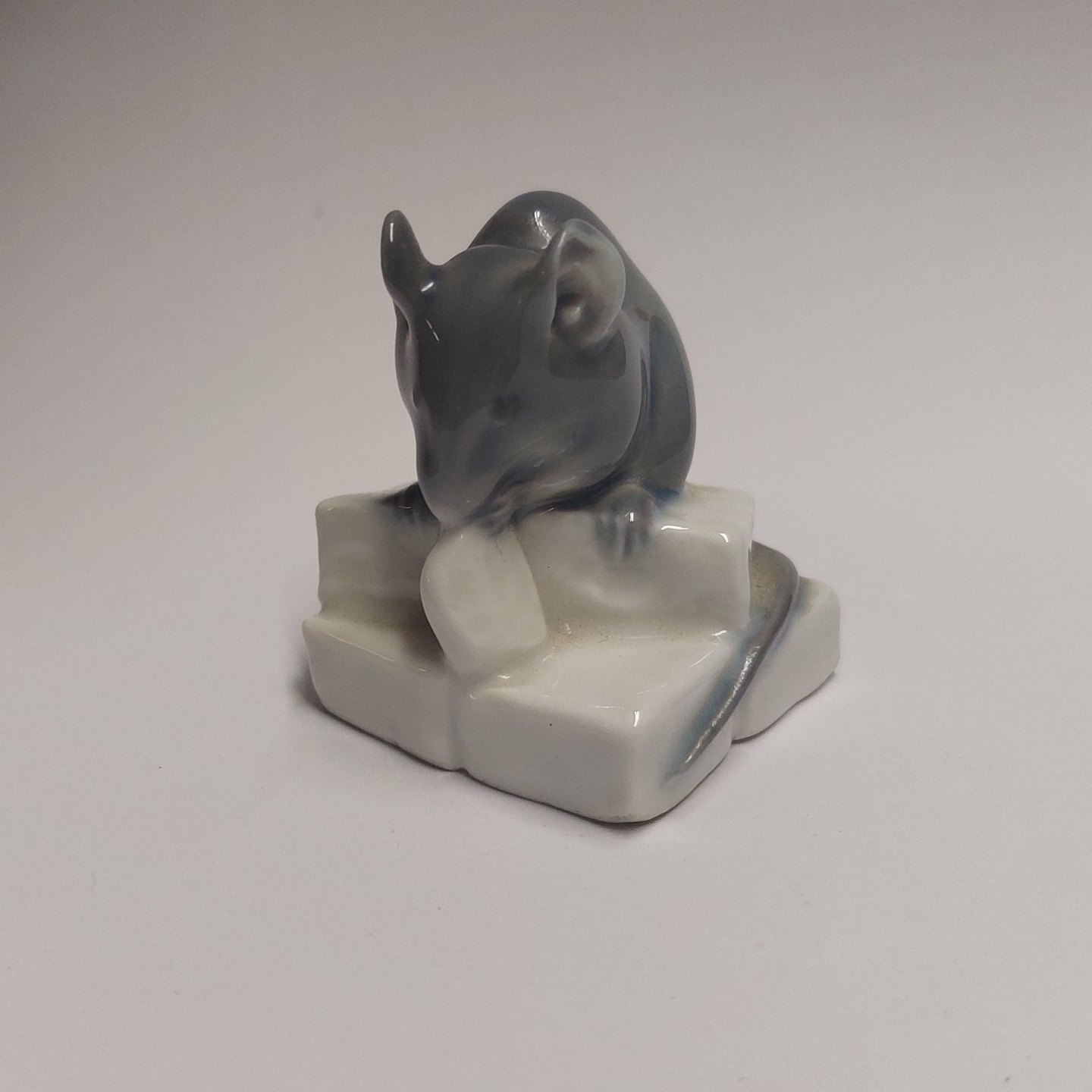 Figure of mouse on sugar lump. Produced for Royal Copenhagen. Designed by Erik Nielsen. Model number 510. The factory mark on the bottom. Factory first quality production. No damage or repairs. H. 4 cm.