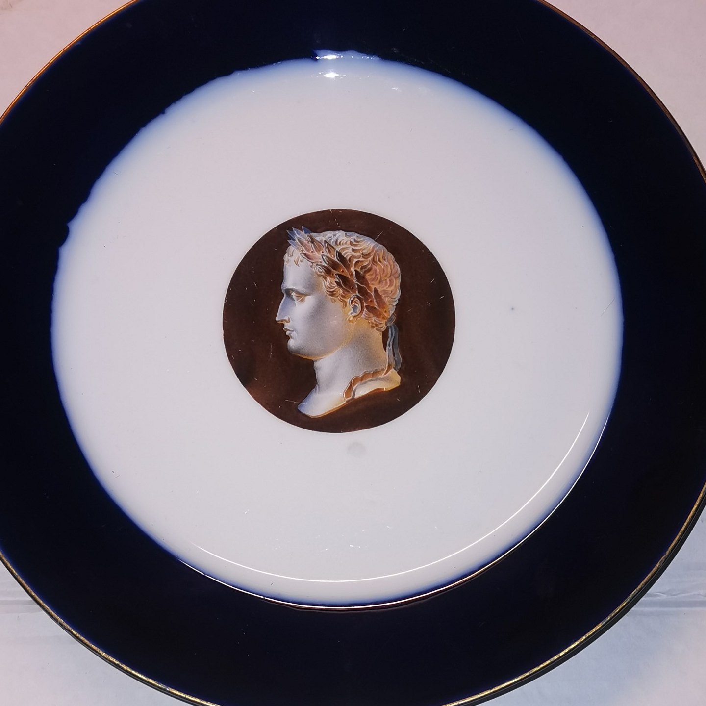Platte i porcelæn med portræt i profil af Napoleon fra Sevres, Frankrig, 1845. Fremstår i perfekt stand. Ingen skader eller reparationer. Mål: 24,5 cm (9.64 inches).