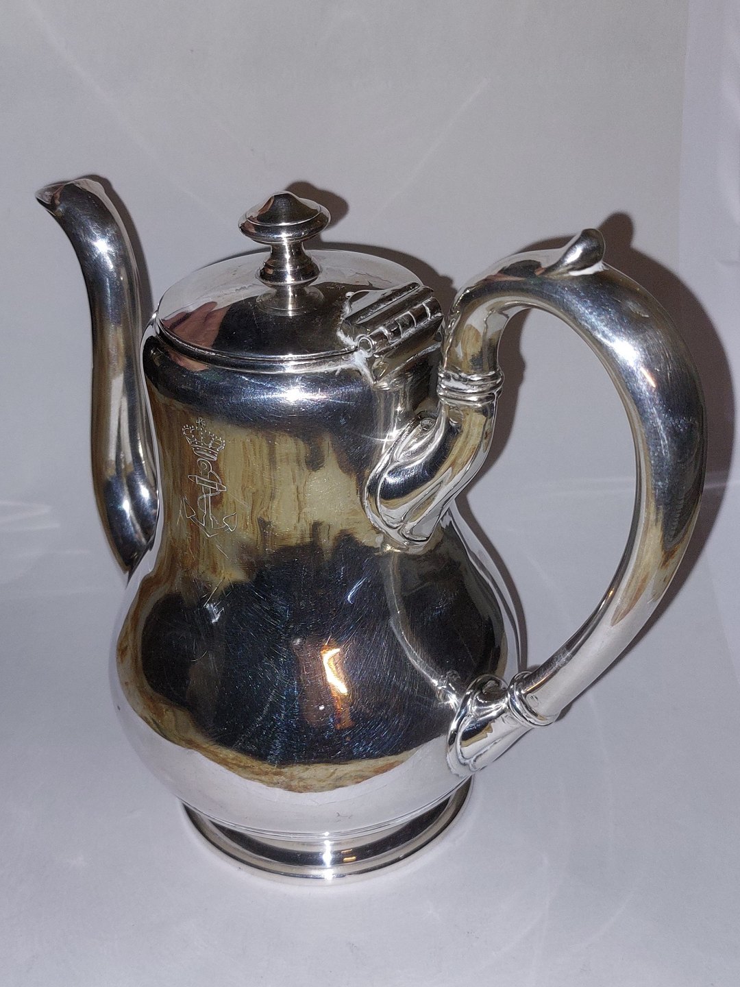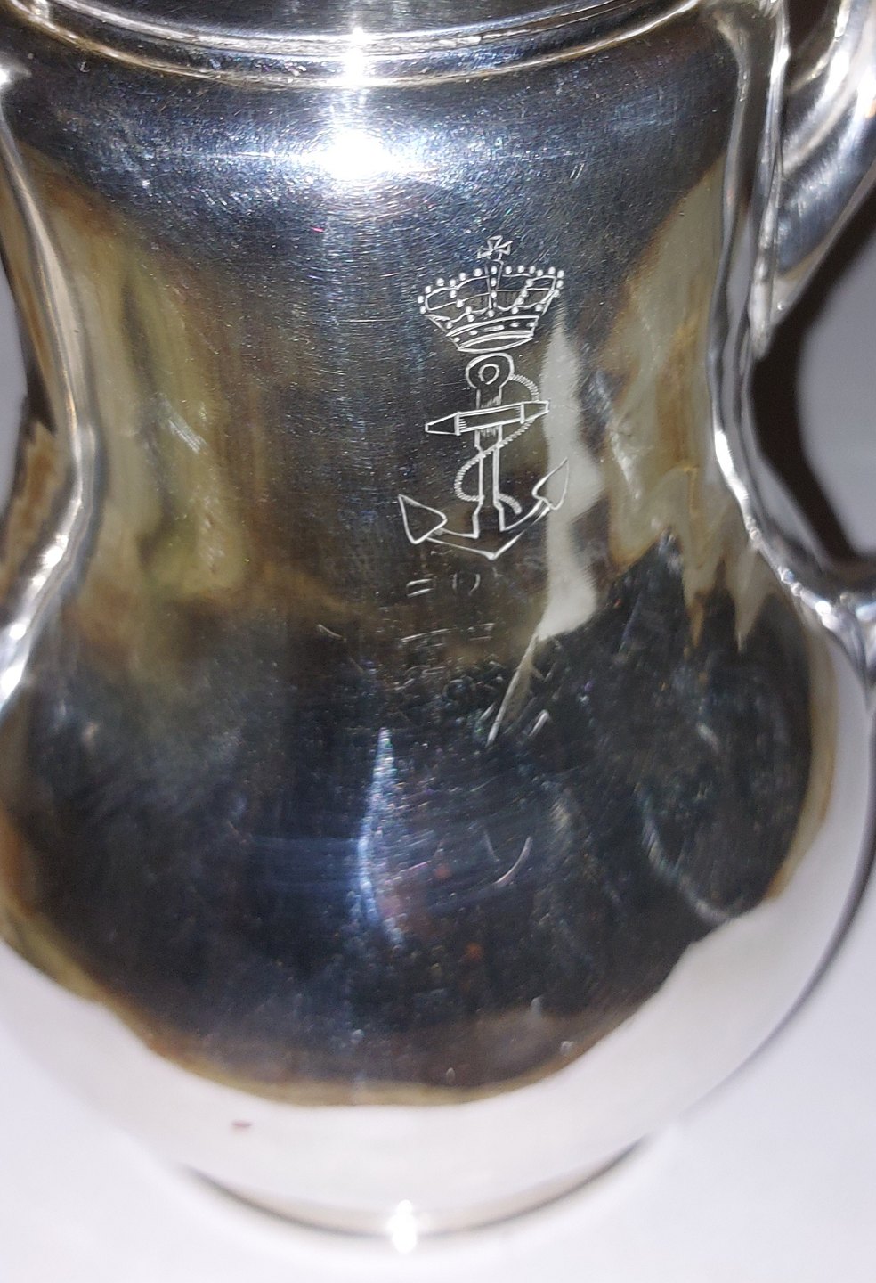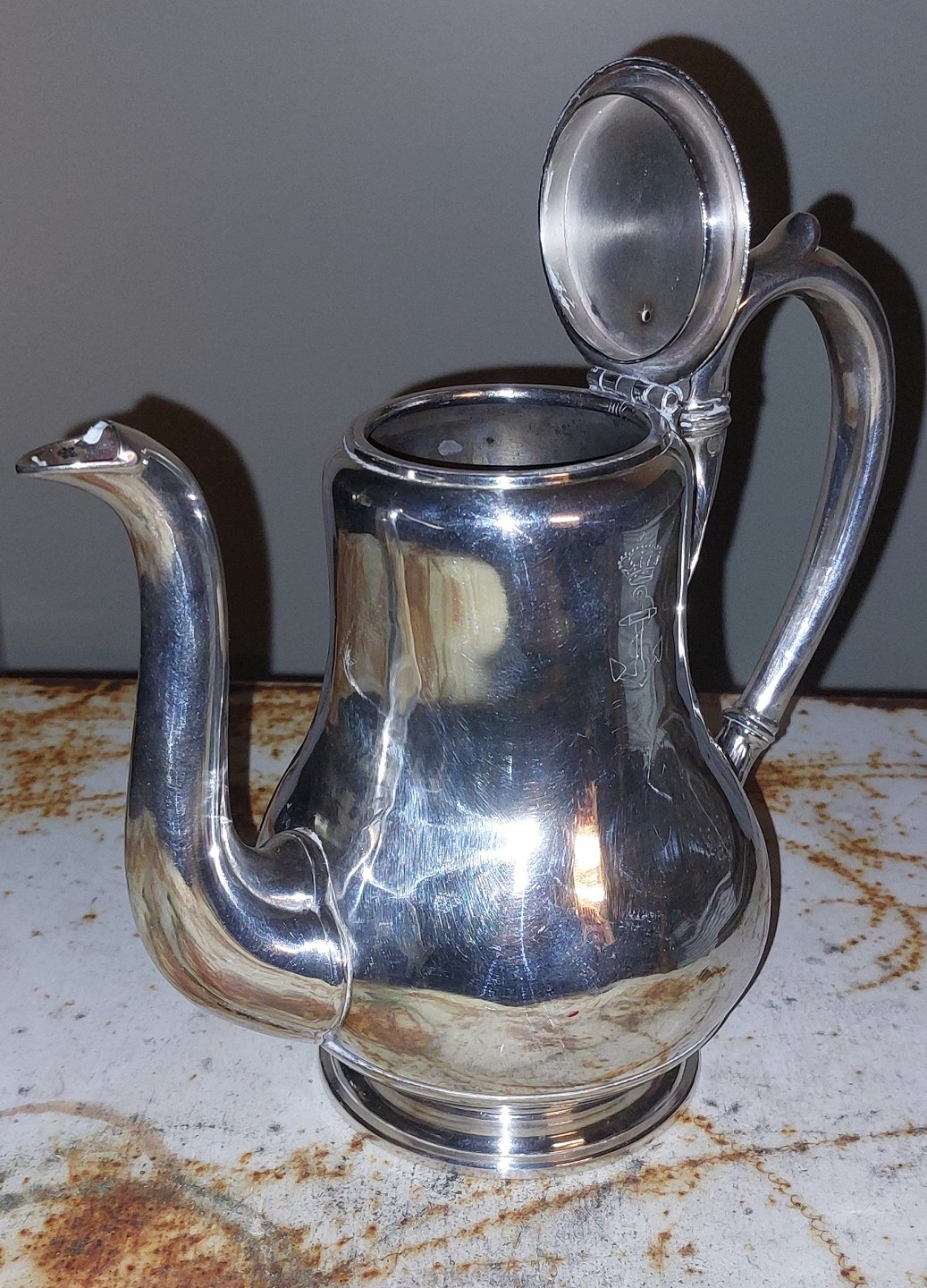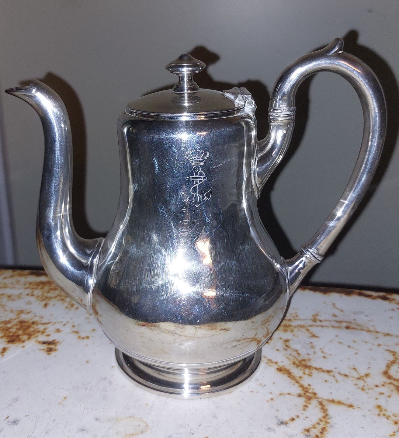 Coffee pots in silver stain. On the one hand, the Navy's logo (Denmark). Appears in good condition. H. 19 cm (7.48 inches) and 20½ cm long (8.07 inches).