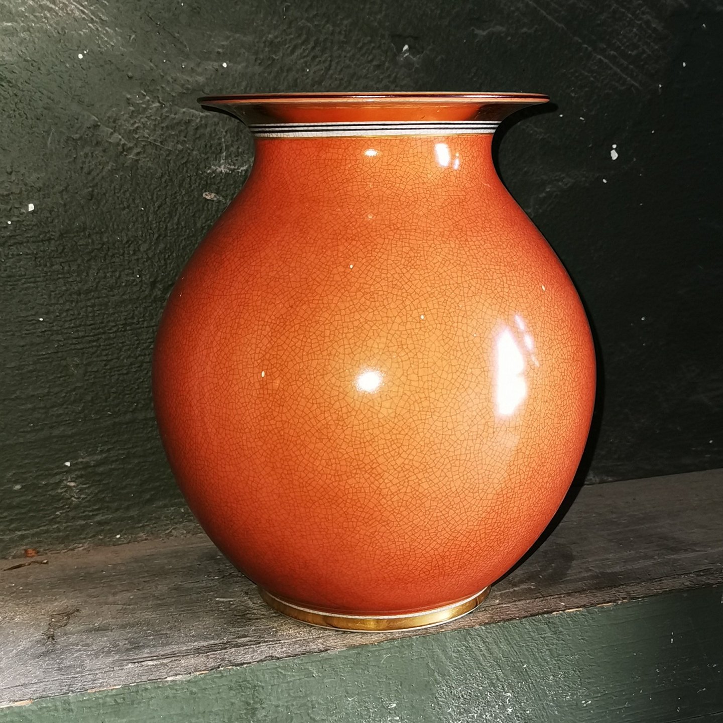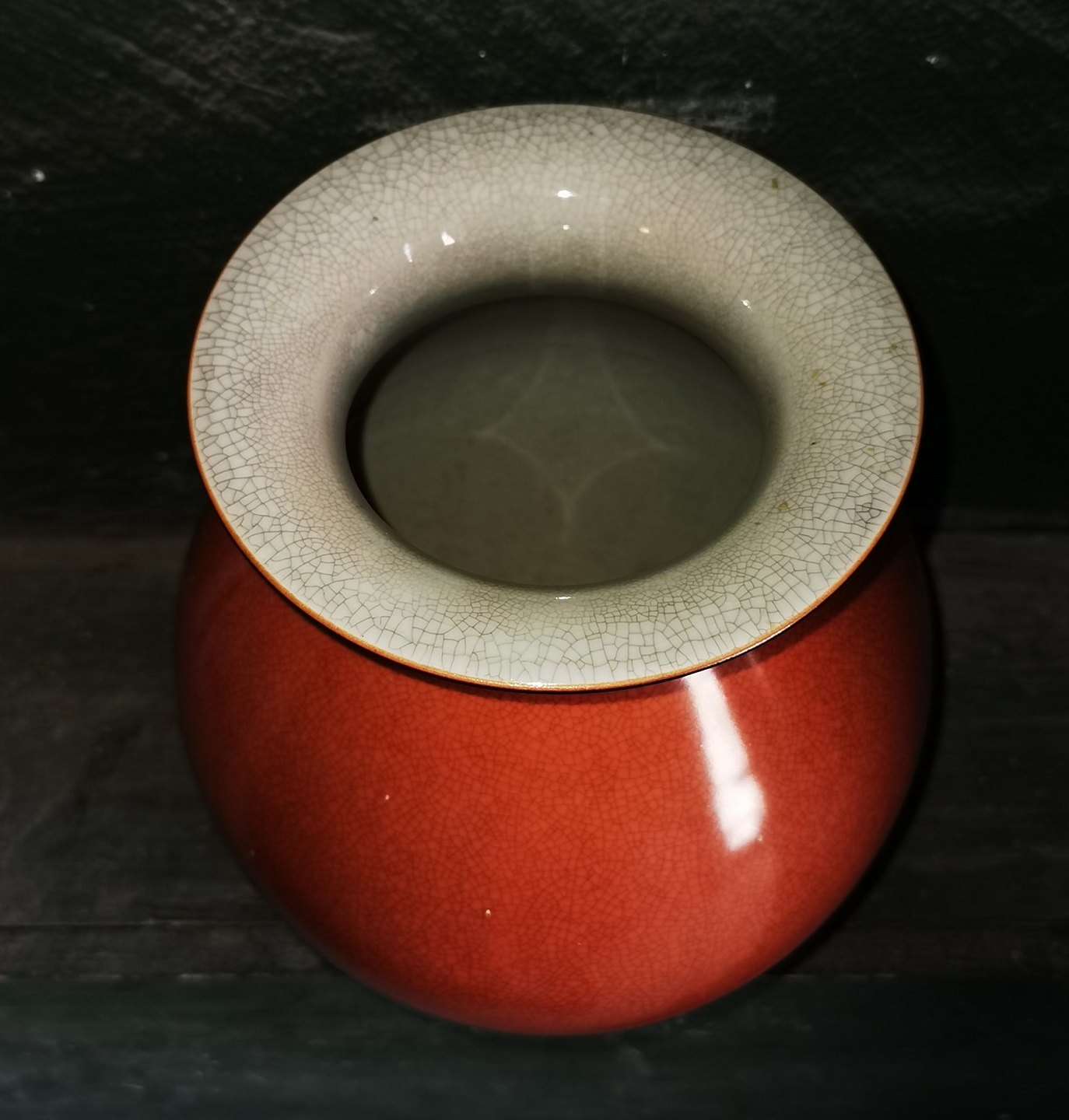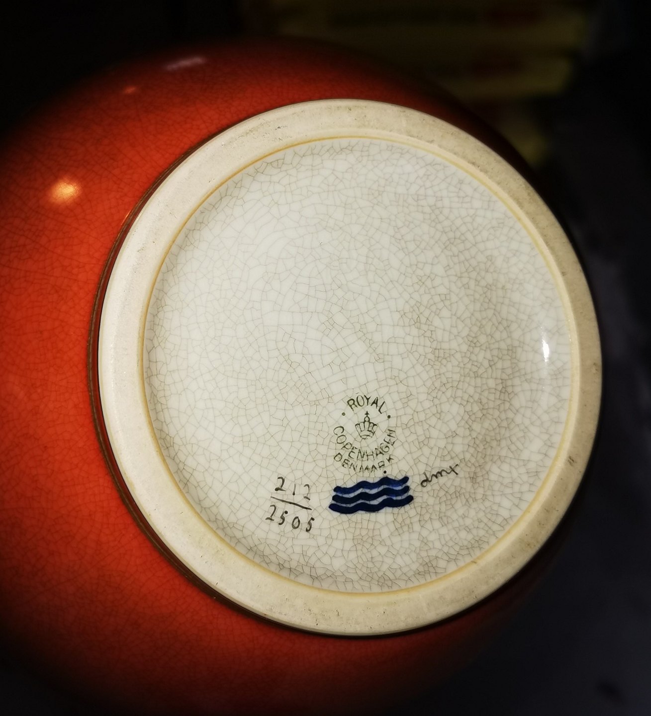 Stor porcelænsvase fra Royal Copenhagen med rød krakkeleret overflade udenvendigt. I perfekt stand. 1. sortering. Modelnummer 2505. H. 21 cm.