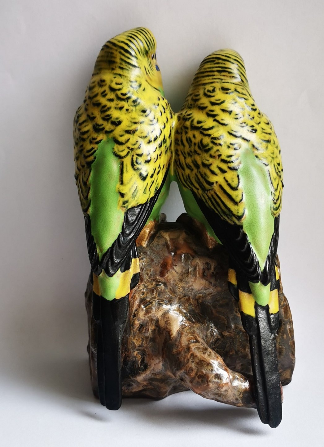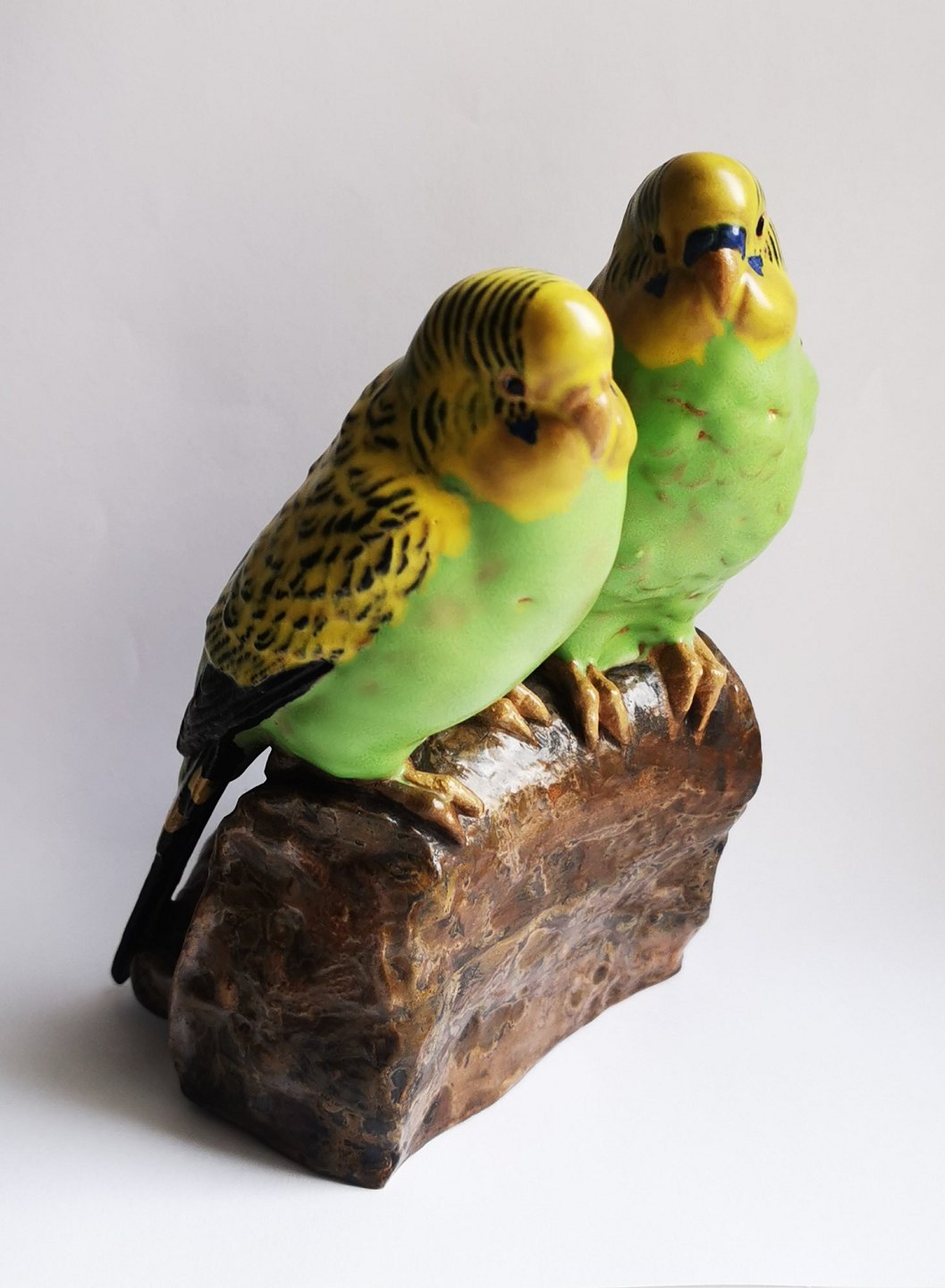 Jeanne Grut: Aluminia figurine. Pair of green budgies