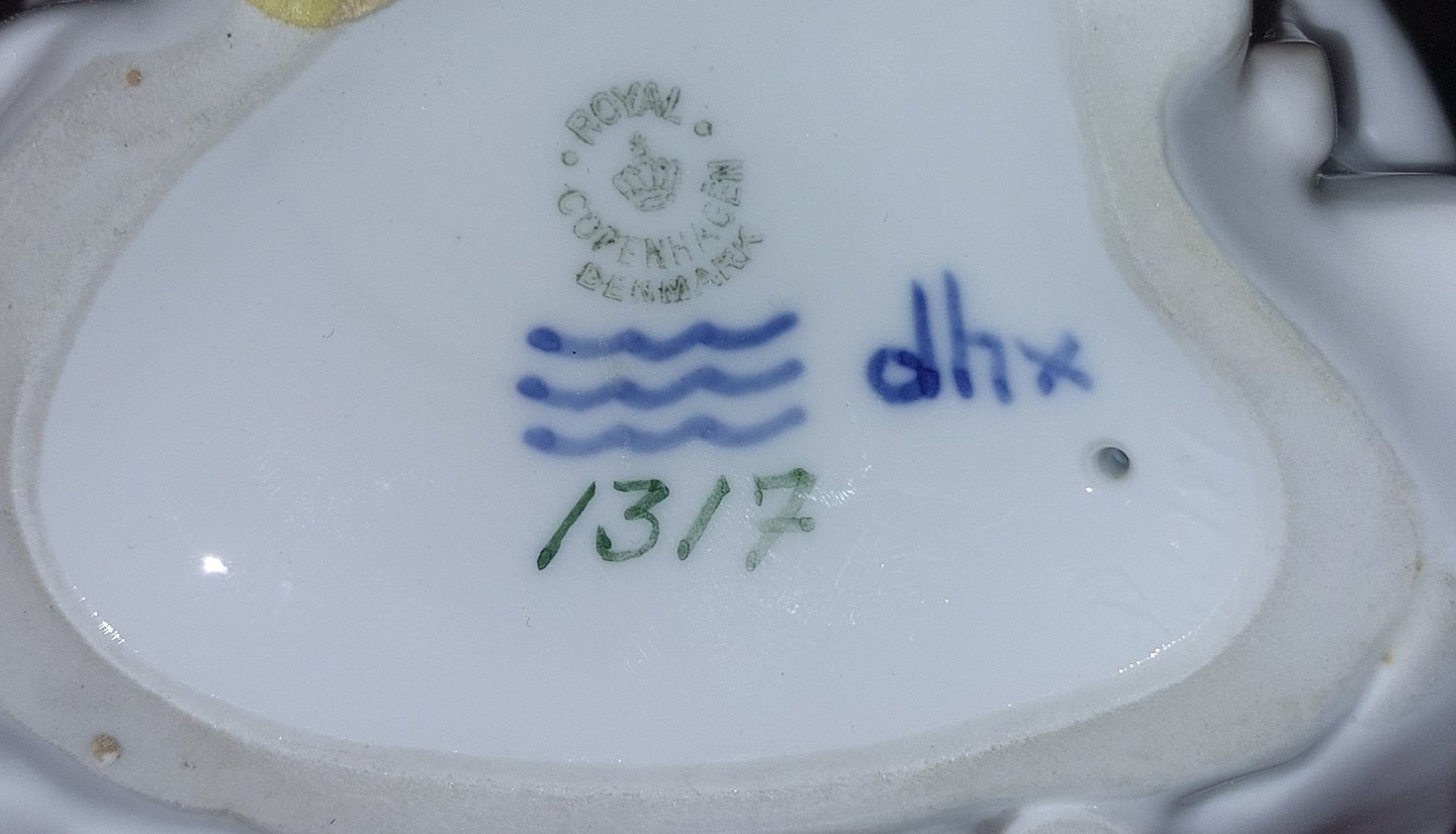 Royal Copenhagen figure in porcelain of young woman in regional costume knitting. Model number 1317. In good condition without damage or repairs. Factory first production. H. 22½ cm (8.85 inches).