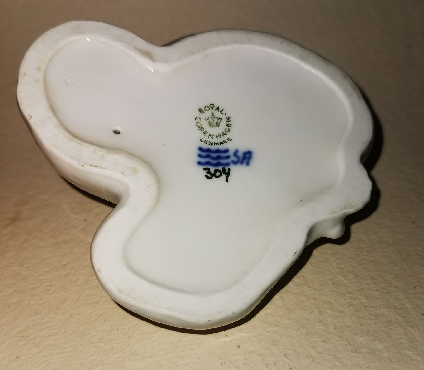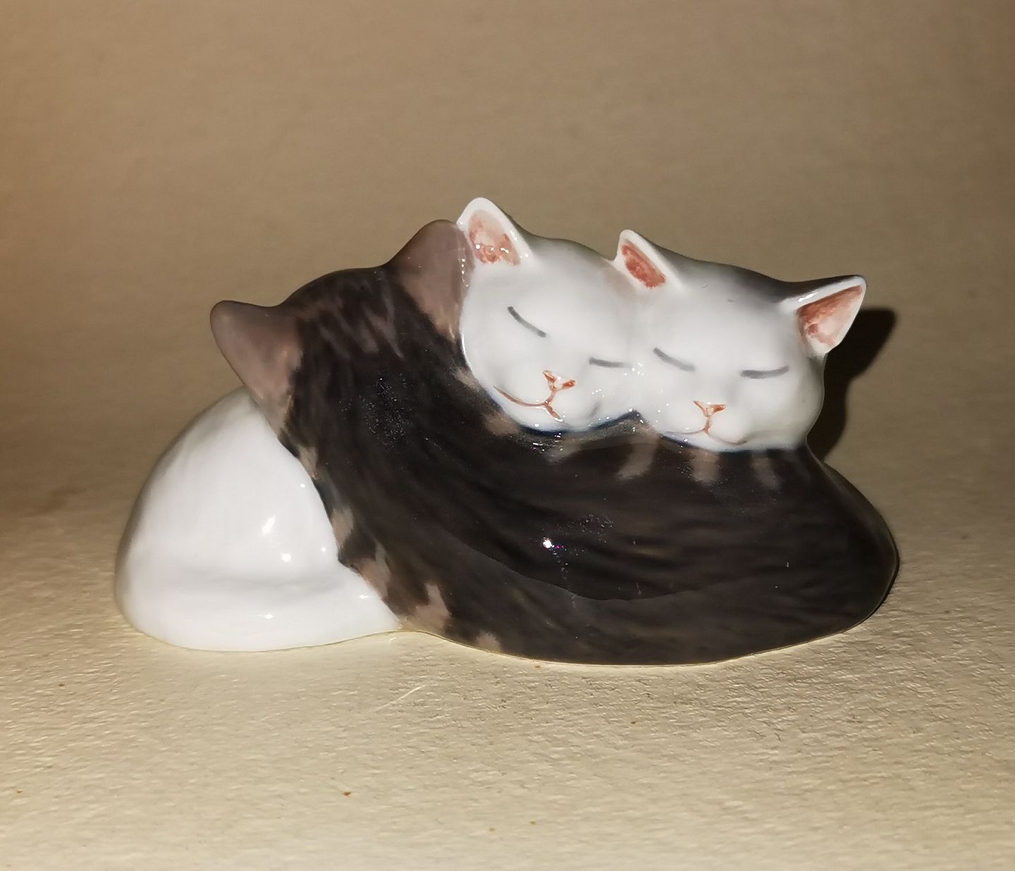 Figur med tre sovende kattekillinger i porcelæn fra Royal Copenhagen. Fremstår i god stand. 1. sortering. Fabriksmærket på bunden sammen med modelnummer 304. Mål: H. 5½ cm (2.16 tommer).