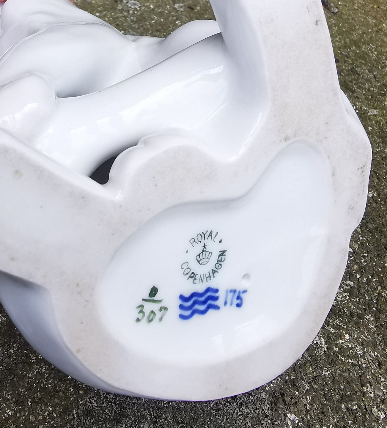 Figur af kat i porcelæn fra Royal Copenhagen i hvid glasur. Fremstillet på fabrikken mellem 1900-1923. Fremstår i perfekt stand uden skader eller reparationer. Modelnummer 307. Fabriksmærket på bunden. H. 17½ cm (6.88 tommer).
