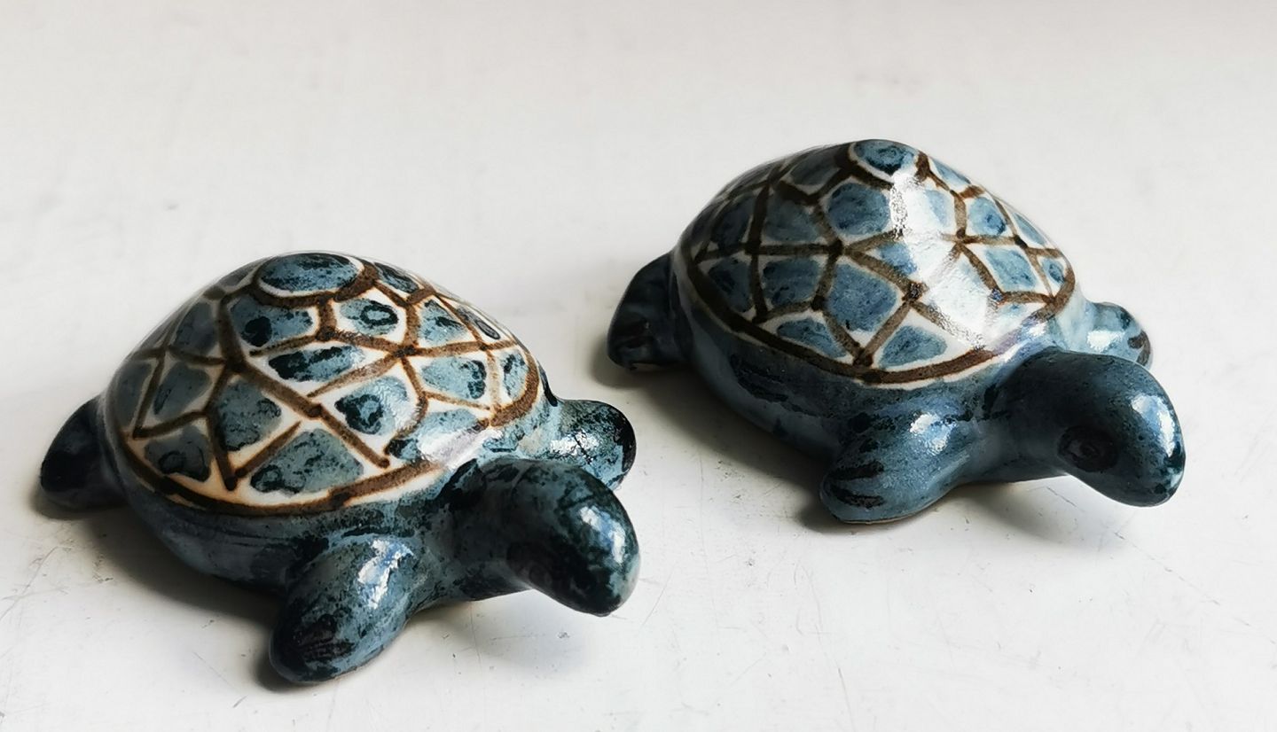 Skildpadde i keramik fra Lauritz Hjorth, Bornholm. Fremstår i god stand. Sælges samlet for kr. 350,- Mål: H. 2-2½ cm L. 5½ cm 3½- B. 4 cm