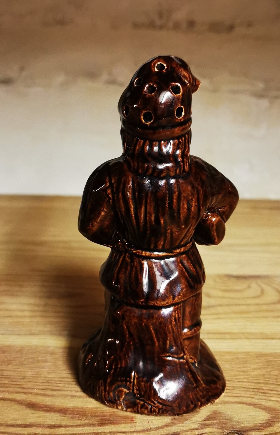 Figur af nisse i keramik med funktion som peberbøsse. Fremstår i god stand med lidt brugsspor. H. 14 cm