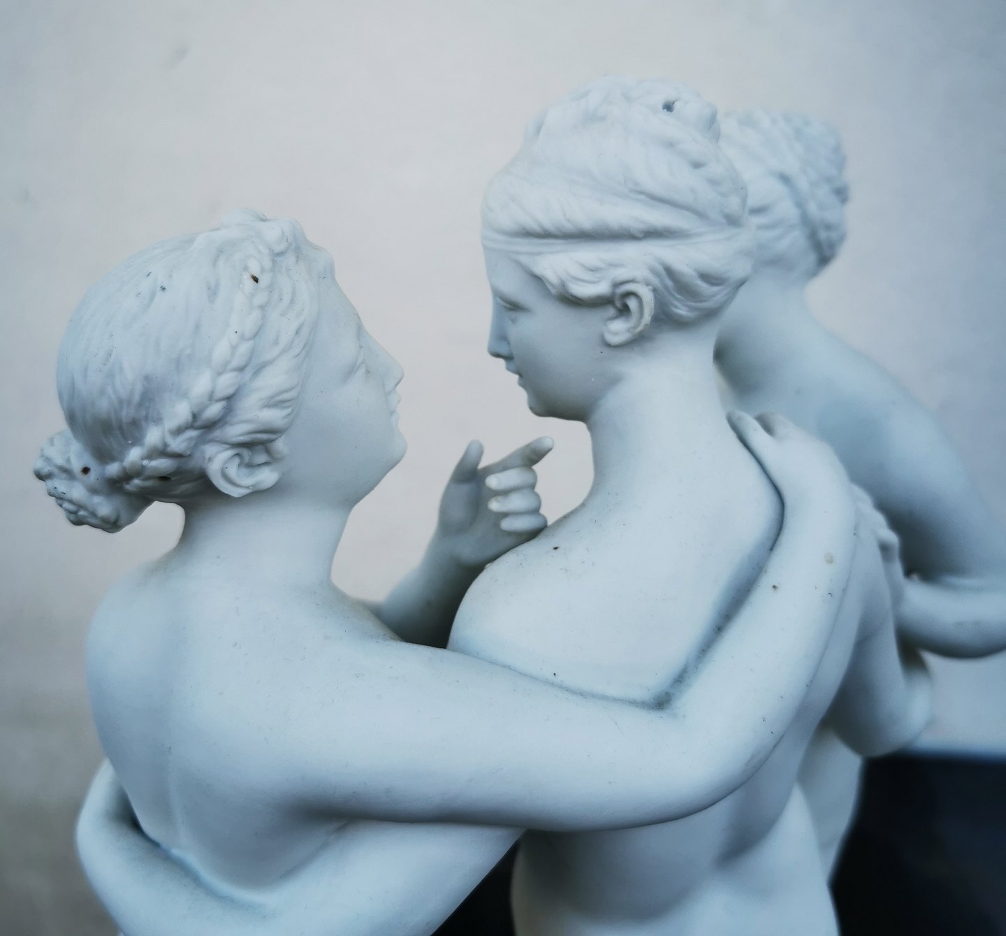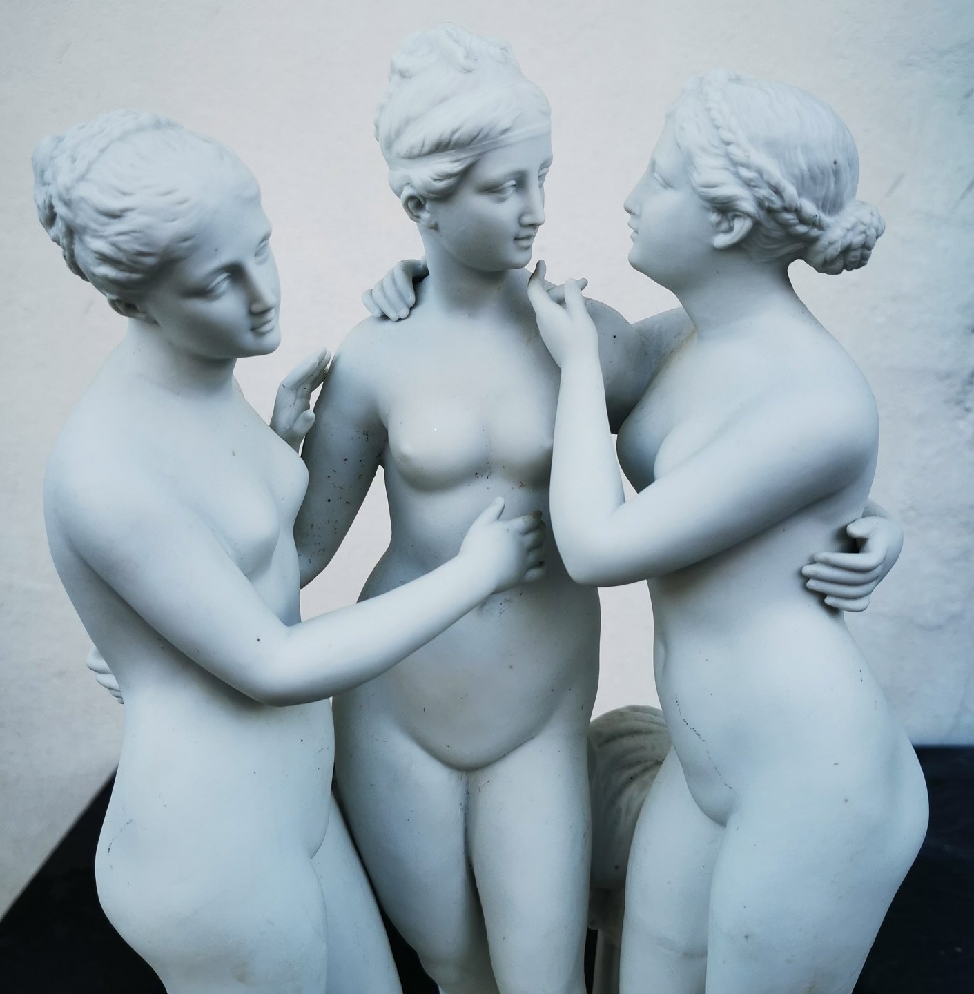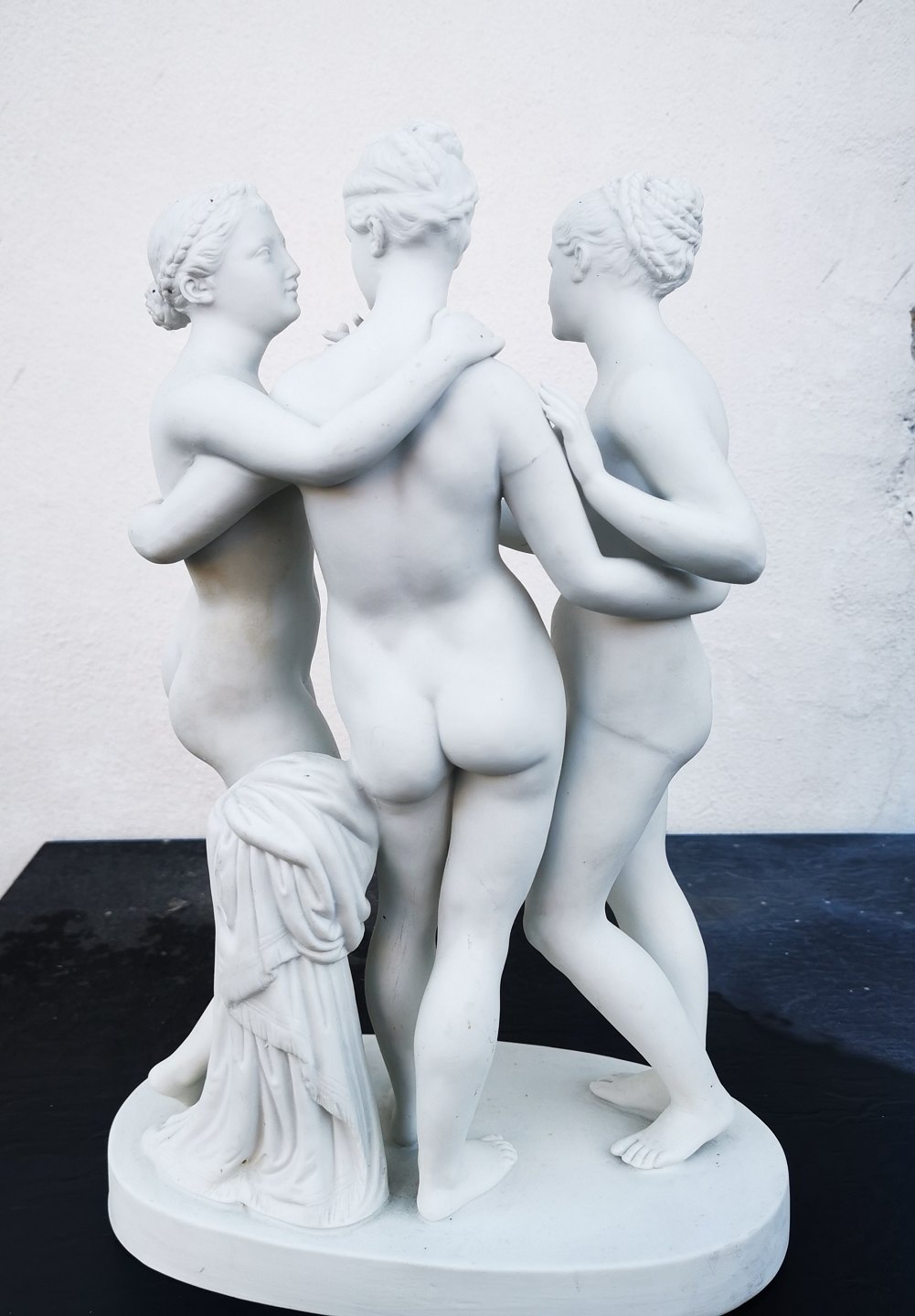 Bisquit porcelain figure depicting "The Three Graces" by the Danish sculptor Bertel Thorvaldsen (1770-1844). Appears in good condition with no damage or repairs. Few traces of use. Made in high quality with fine details. Not factory branded. Presumably manufactured in the first half of the 20th century. Measurements: H. 34 cm The base measures 12 x 24 cm.