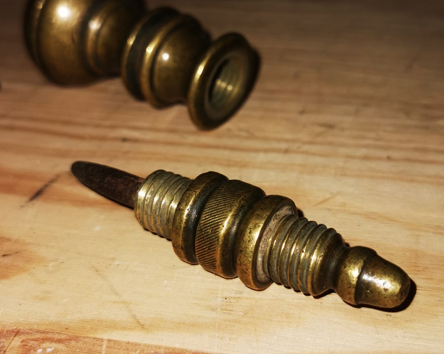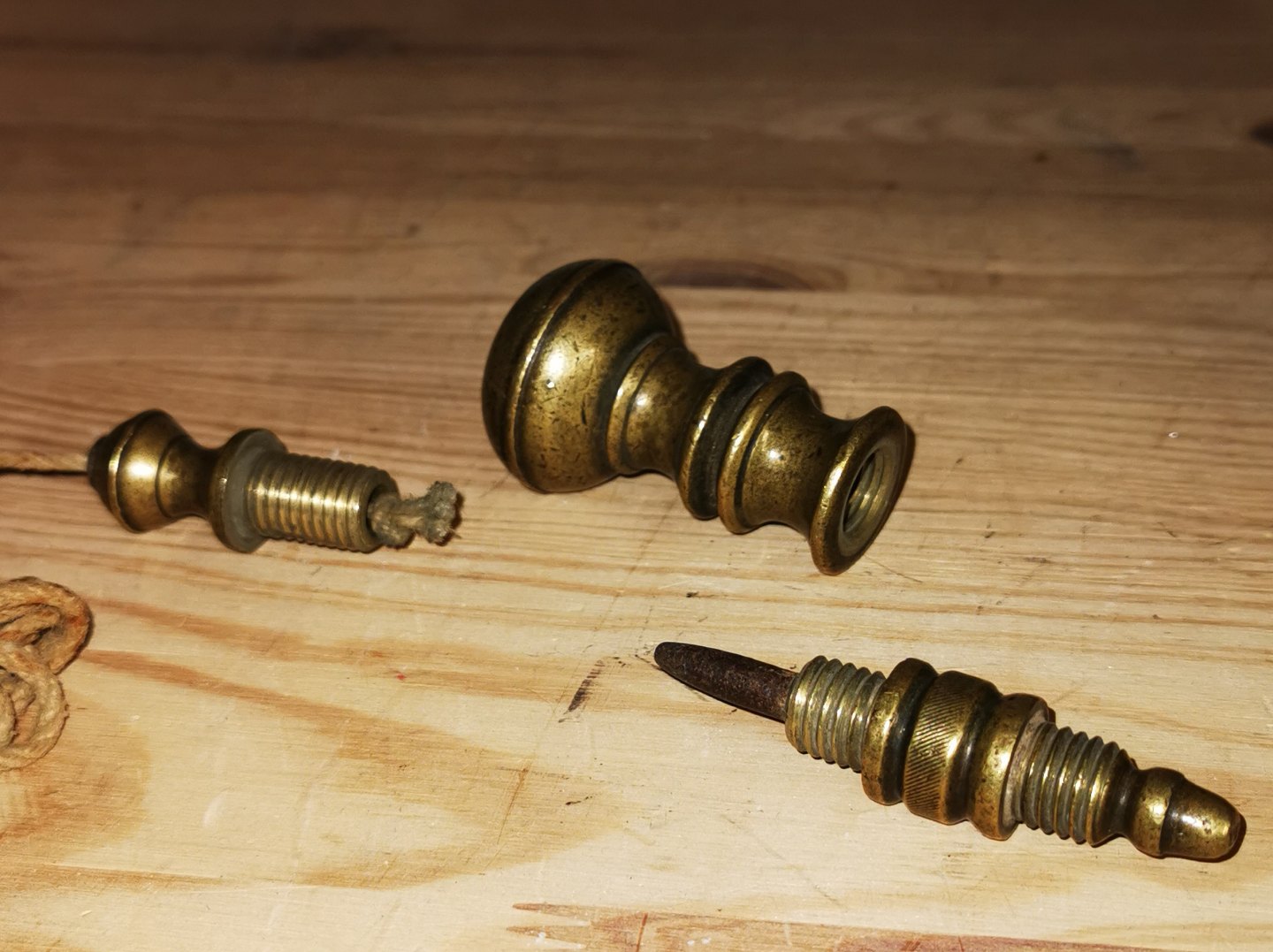 Messing lod i tre dele fra omkring 1800. Fremstår med aldersrelateret brugsspor på overfladen. Ingen skader eller reparationer. L. 13½ cm