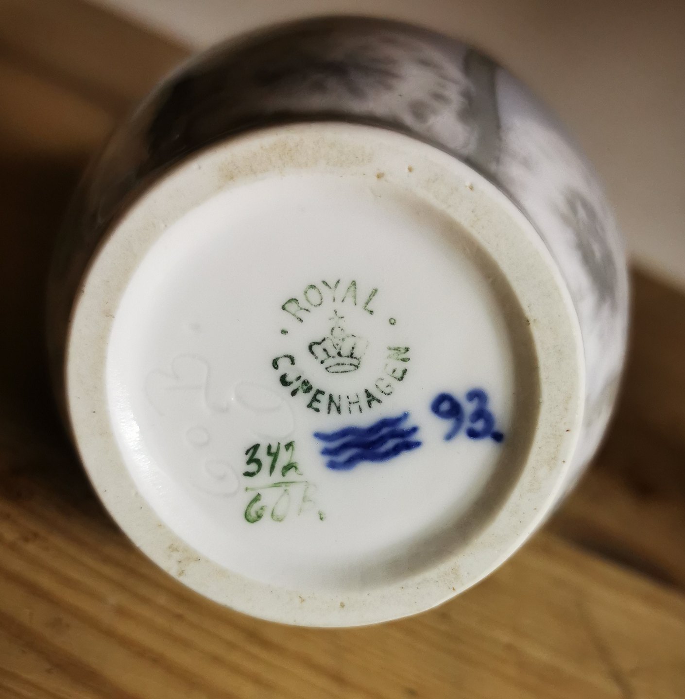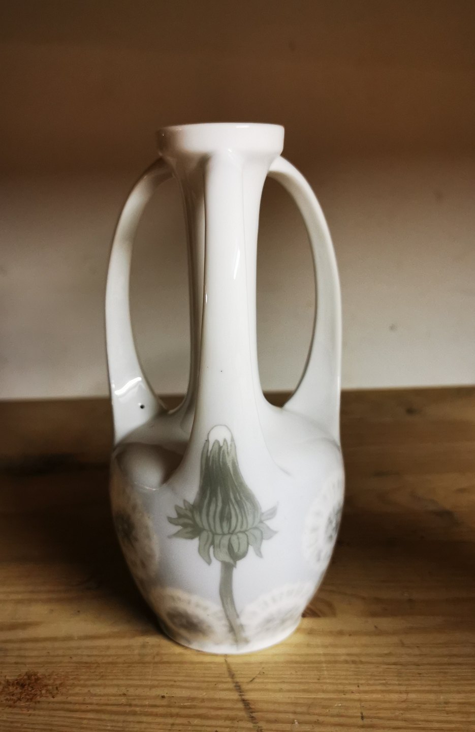 Porcelain vase with three handles from Royal Copenhagen 1900-1923. Decorated with dandelions. Appears in perfect condition. No damage or repairs. Factory mark on the bottom. Factory first production. H. 18 cm