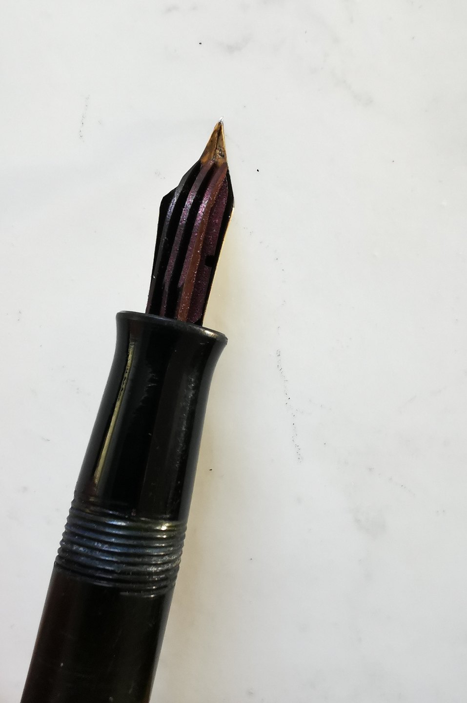 Black Pelikan 100N fountain pen made in Germany in the late 1930s. Appears to be in good condition. No damage or repairs.