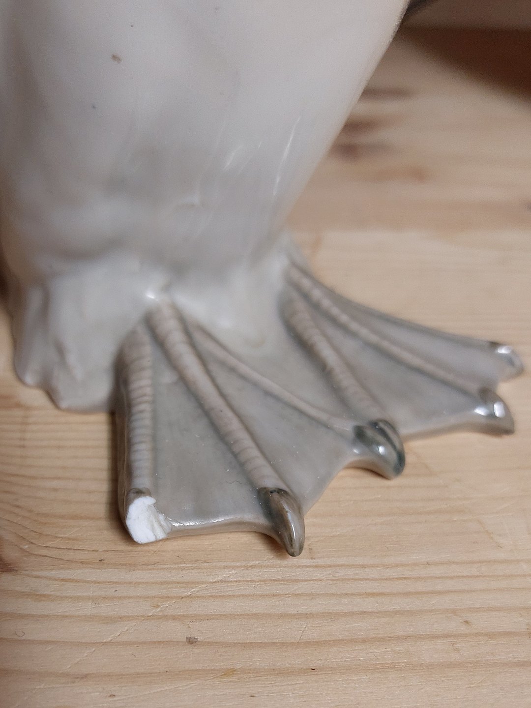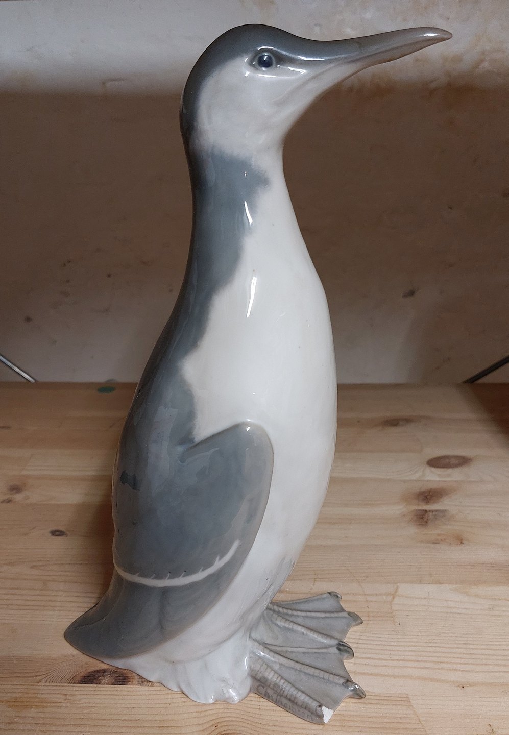 Rare bird: Lomvie in porcelain from Royal Copenhagen. Model number 468 Unfortunately has a defect on two clothes (see photos). Factory mark on the bottom. H.27.5