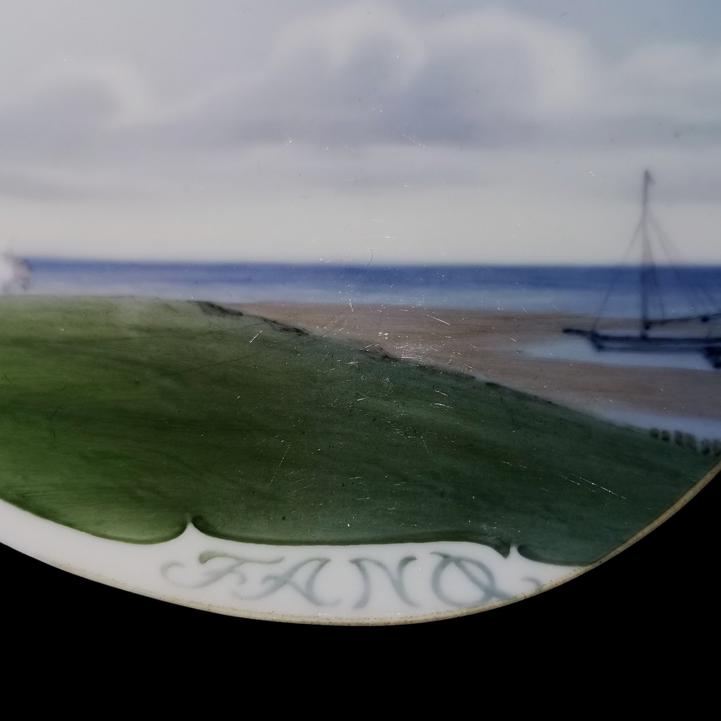 Askefad i porcelæn med motiv fra Fanø. Fremstillet på Royal Copenhagen 1900-1923. Fremstår i god stand. Mål: H. 1½ cm, L. 13½ cm, D. 10½ cm.