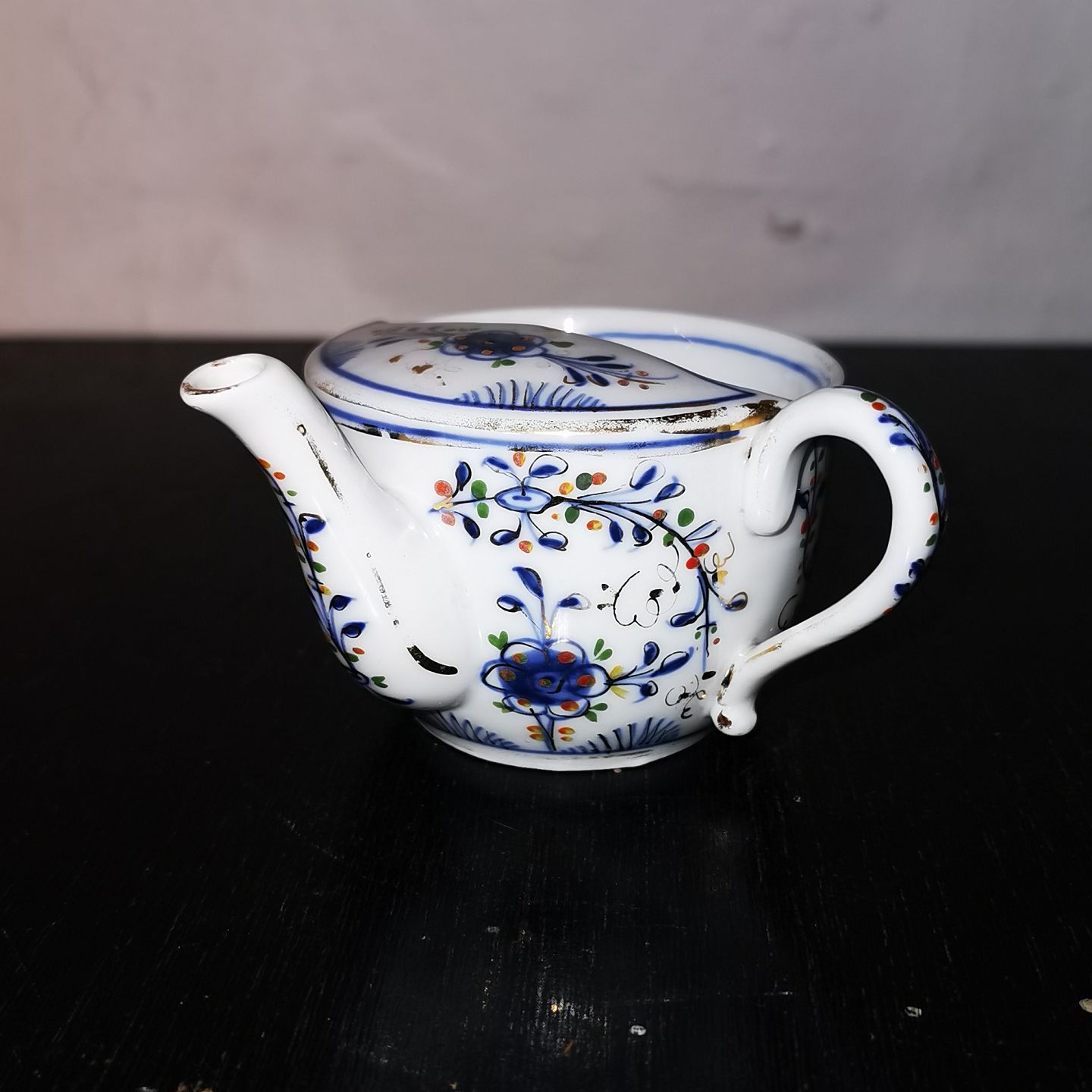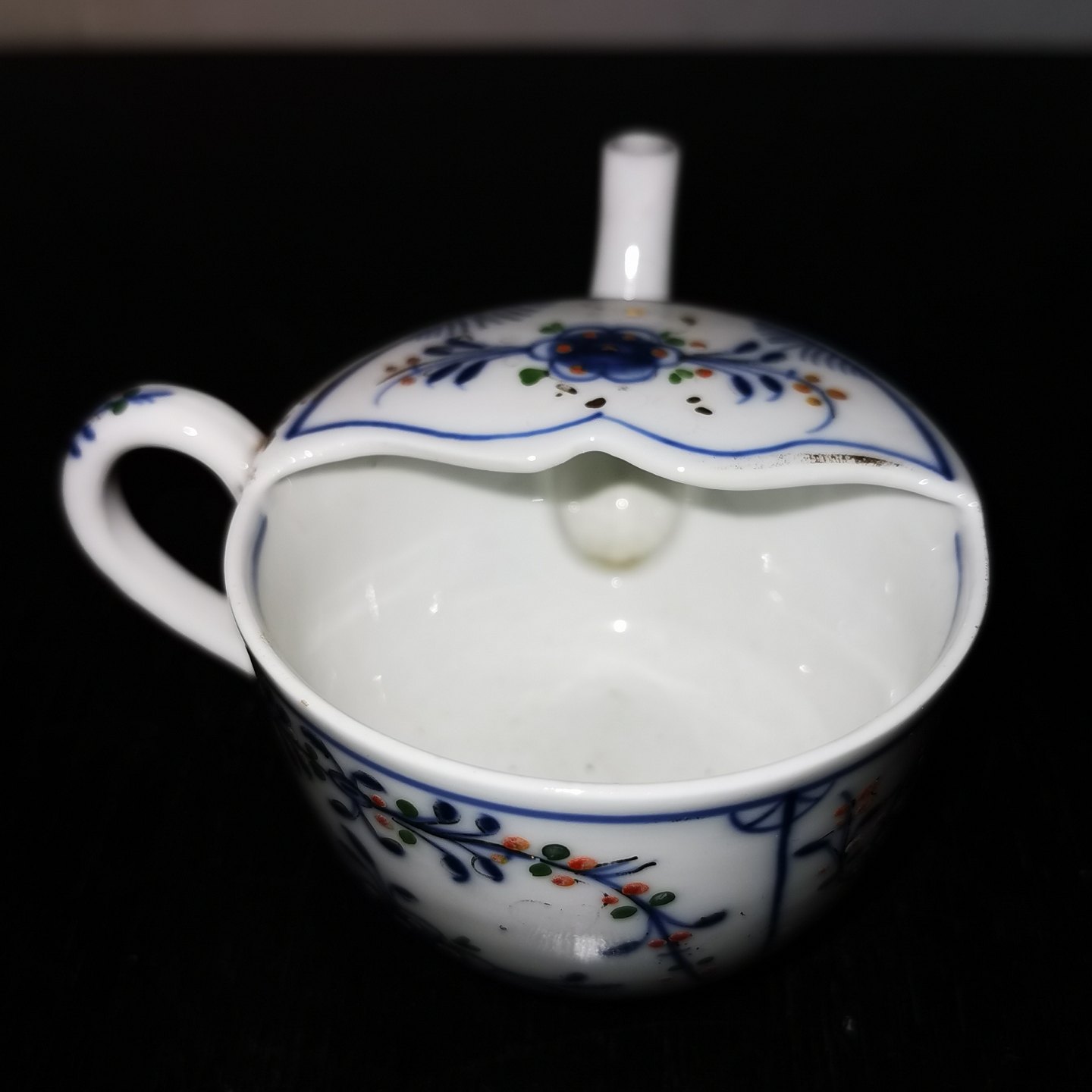 Pitcher in blue fluted porcelain. To help when a bedridden weak person needs to drink liquid. Lower valued versions are used in hospitals and nursing homes. This beautiful blue fluted version was presumably used in private rich homes. Made in the early 20th century. In perfect condition. Who made it is not known, but the quality of the decoration is very fine. H. 6½ cm.