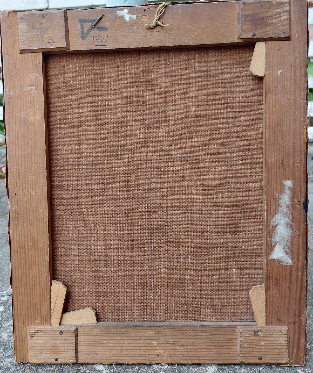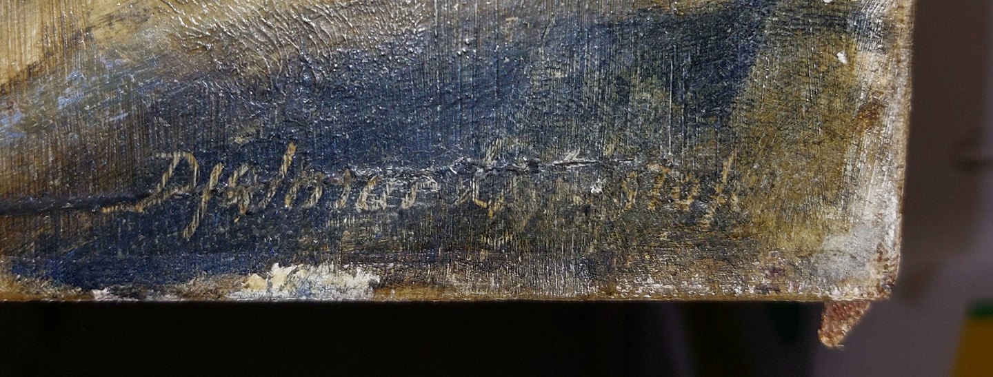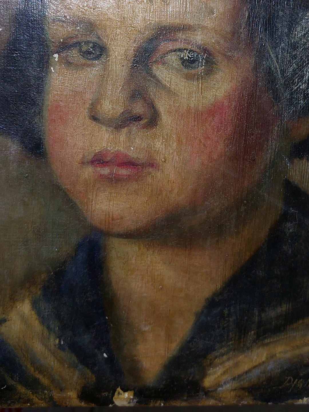Portræt af dreng med hue på. Olie maleri på lærred. Afskalninger på overfladen. Signeret af ubekendt kunstner. Malet på lærred omkring 1900. Uden ramme. MÅL: 28,5.X 34,5.cm.