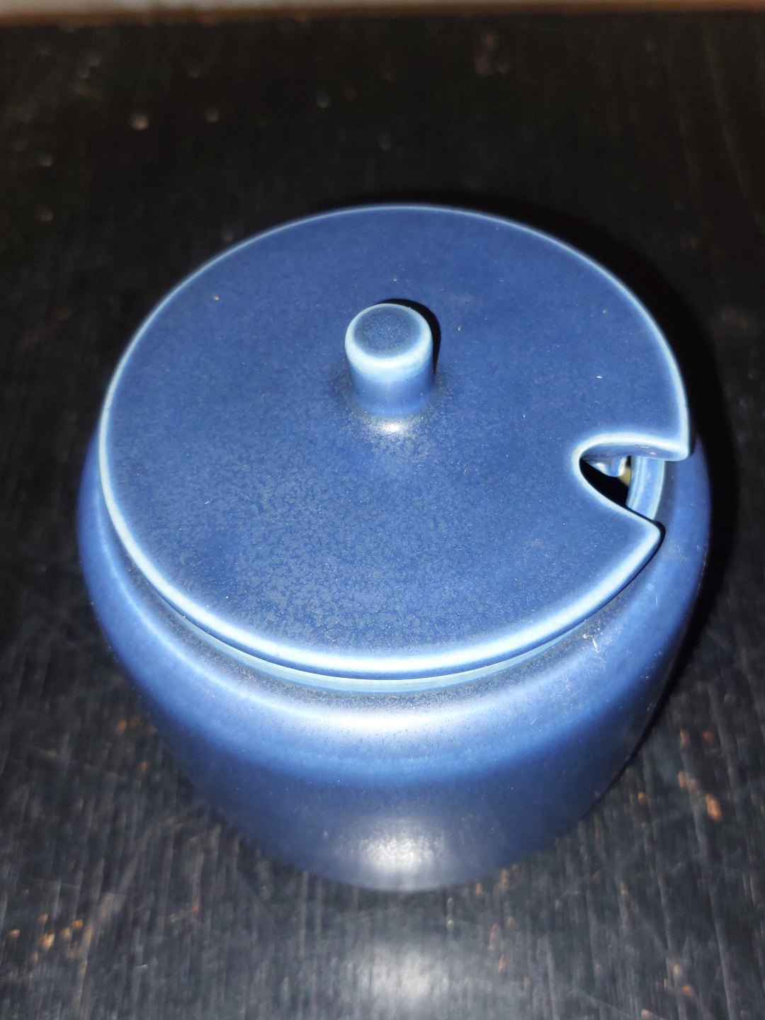 Blå lågskål i keramik fra Palshus. Designet af fabrikkens grundlægger Per Linnemann-Schmidt. I god stand uden skader eller reparationer. 1. sortering. Fabriksmærke, kunstnersignatur PL-S samt modelnummer 1194/1 indridset på bunden. H. 9.5 cm