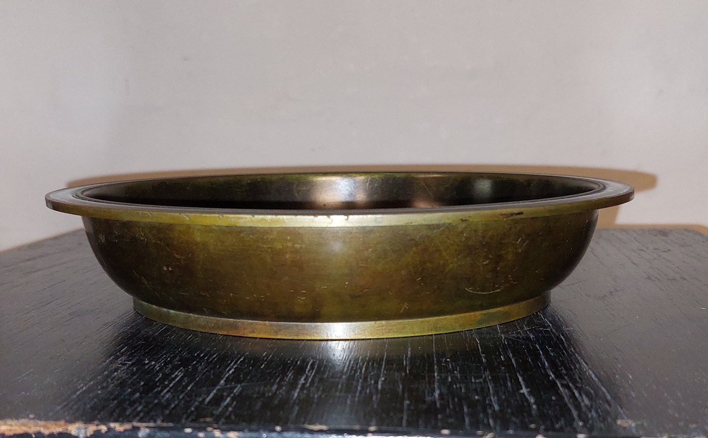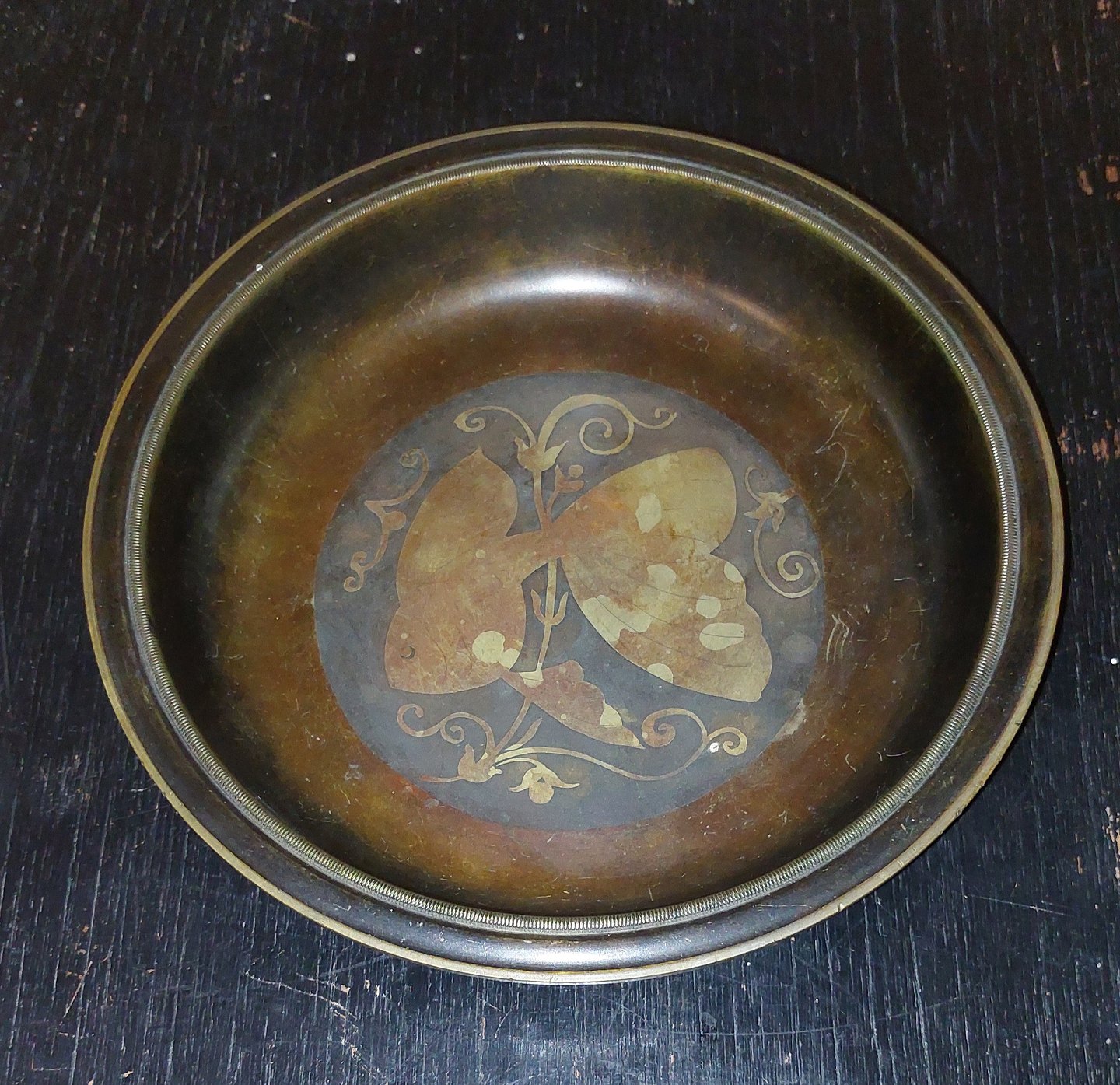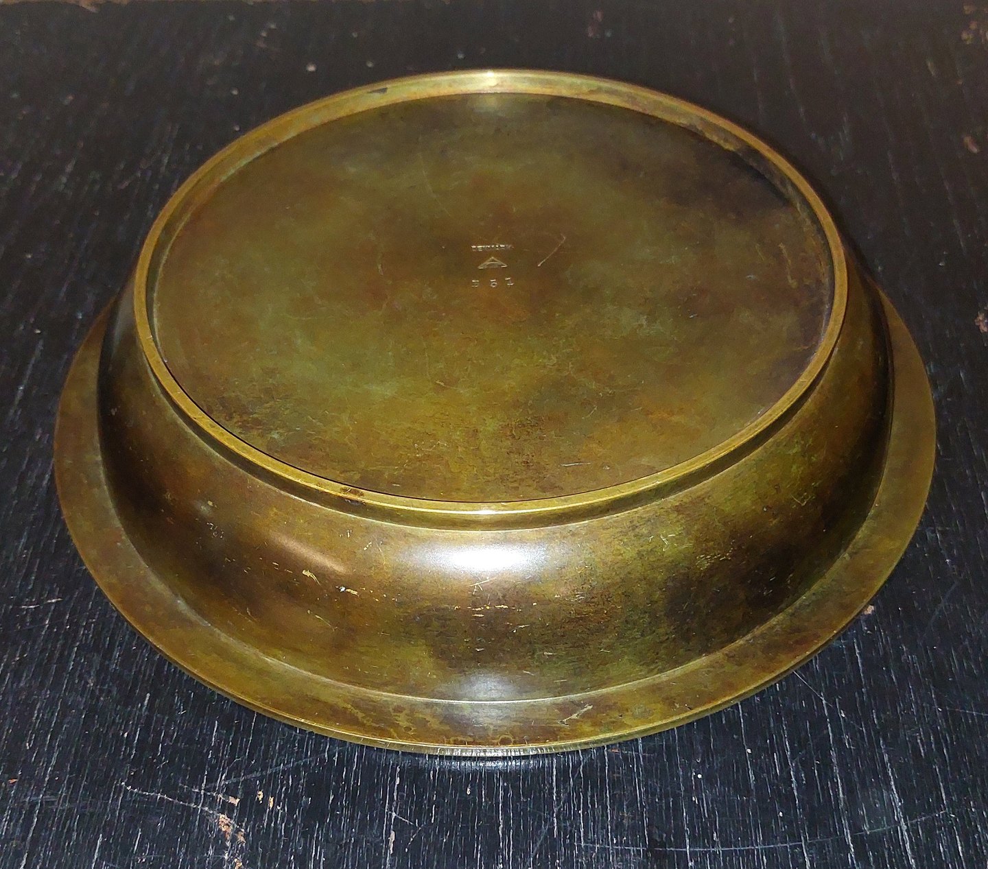Bronze dish with decoration of fish from Just Andersen bronze foundry. Made after 1930. Appears in good condition with normal signs of use. No damage or repairs. Factory mark on the bottom. Measurements: H. 4.5 cm Top diameter at 22 cm
