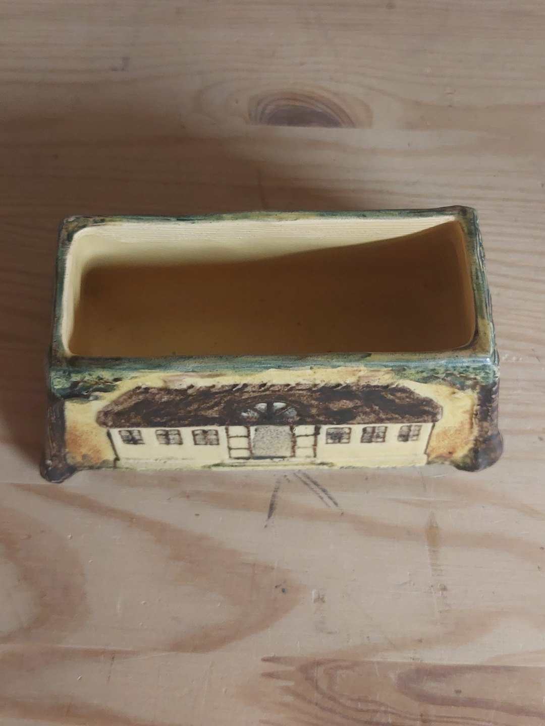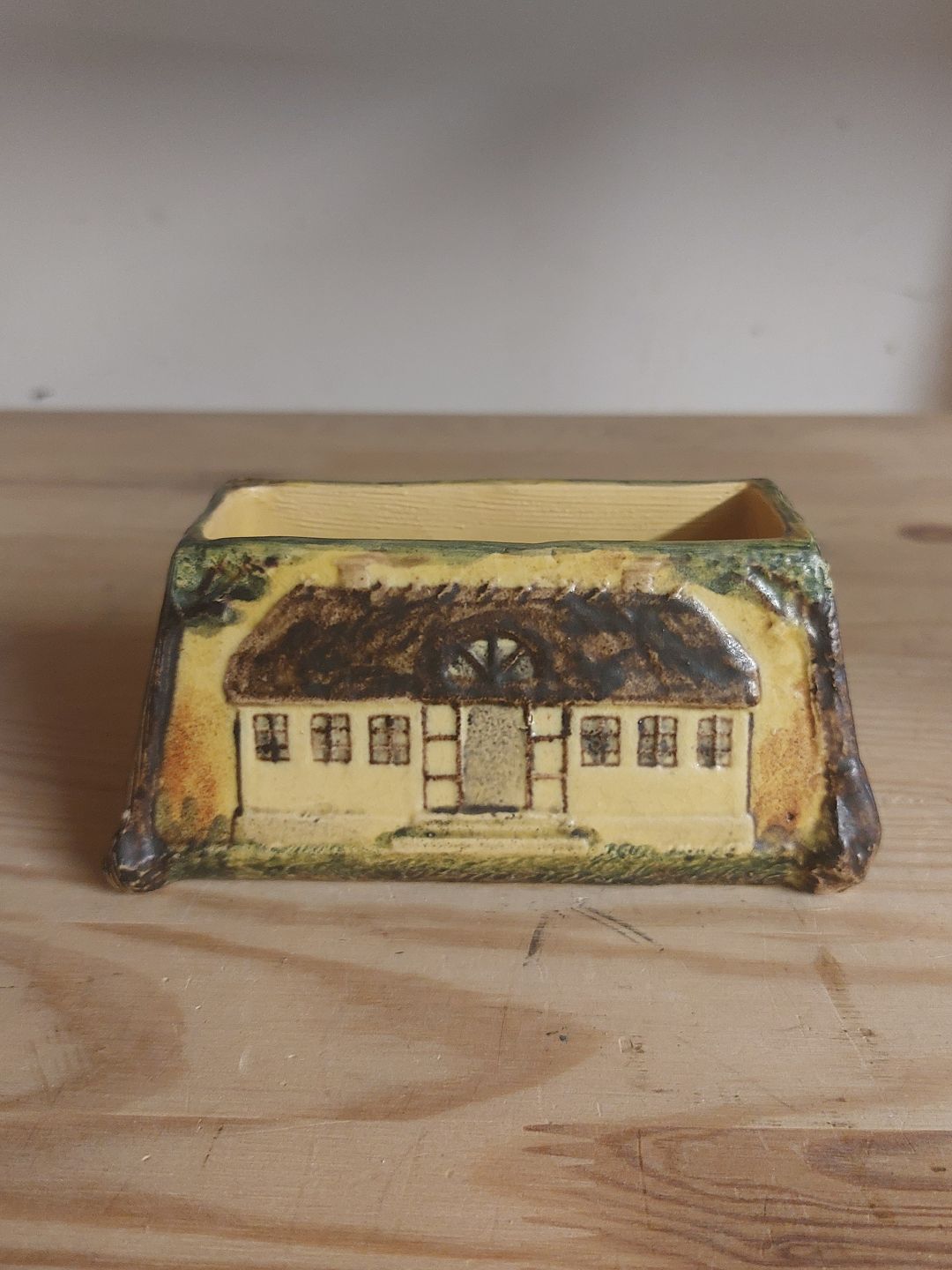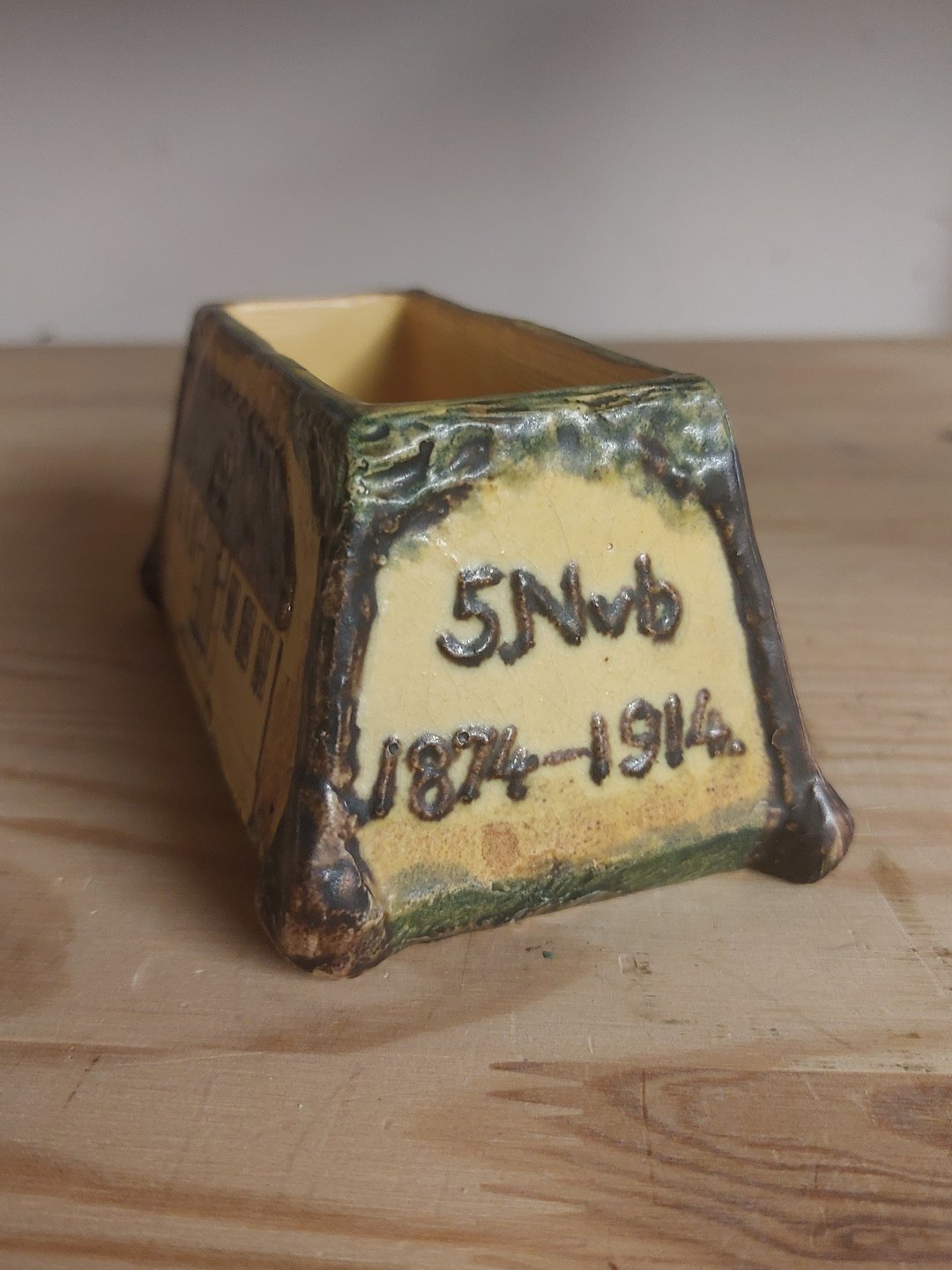 Bowl in ceramics from the Copenhagen pottery factory Peter Ipsen. Decorated with two houses, November 5. 1874-1914 and monogram. The cause/reason for the production of this item is not known. Has a very small glaze chip (see photo). The factory mark on the bottom with P. Ipsen. Dimensions: H. 6.2 cm, L. 13.4 cm and 7.5 cm deep.
