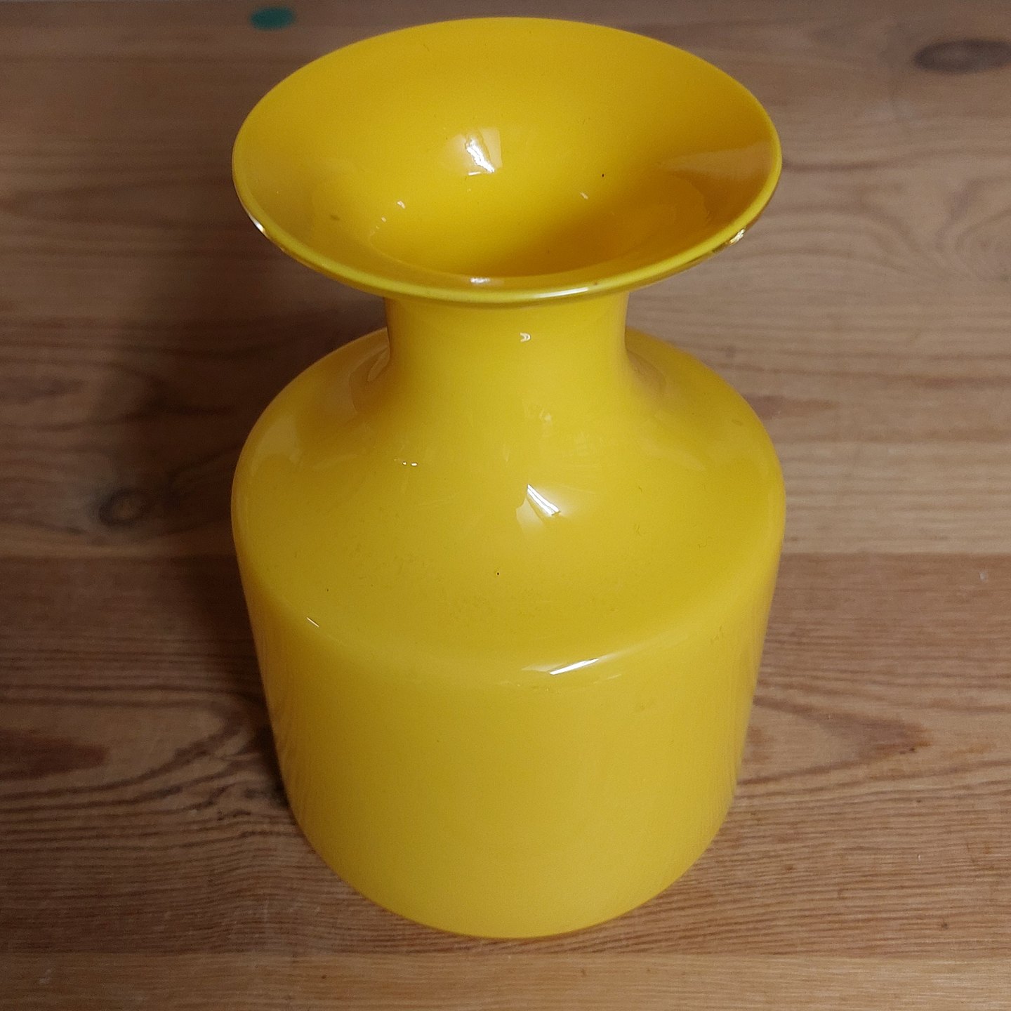 Total gul glasvase fra Holmegaard Glasværk fra palet serien designet af Per Lütken. Fremstår I god stand uden skader eller reparationer. H. 14,5 cm