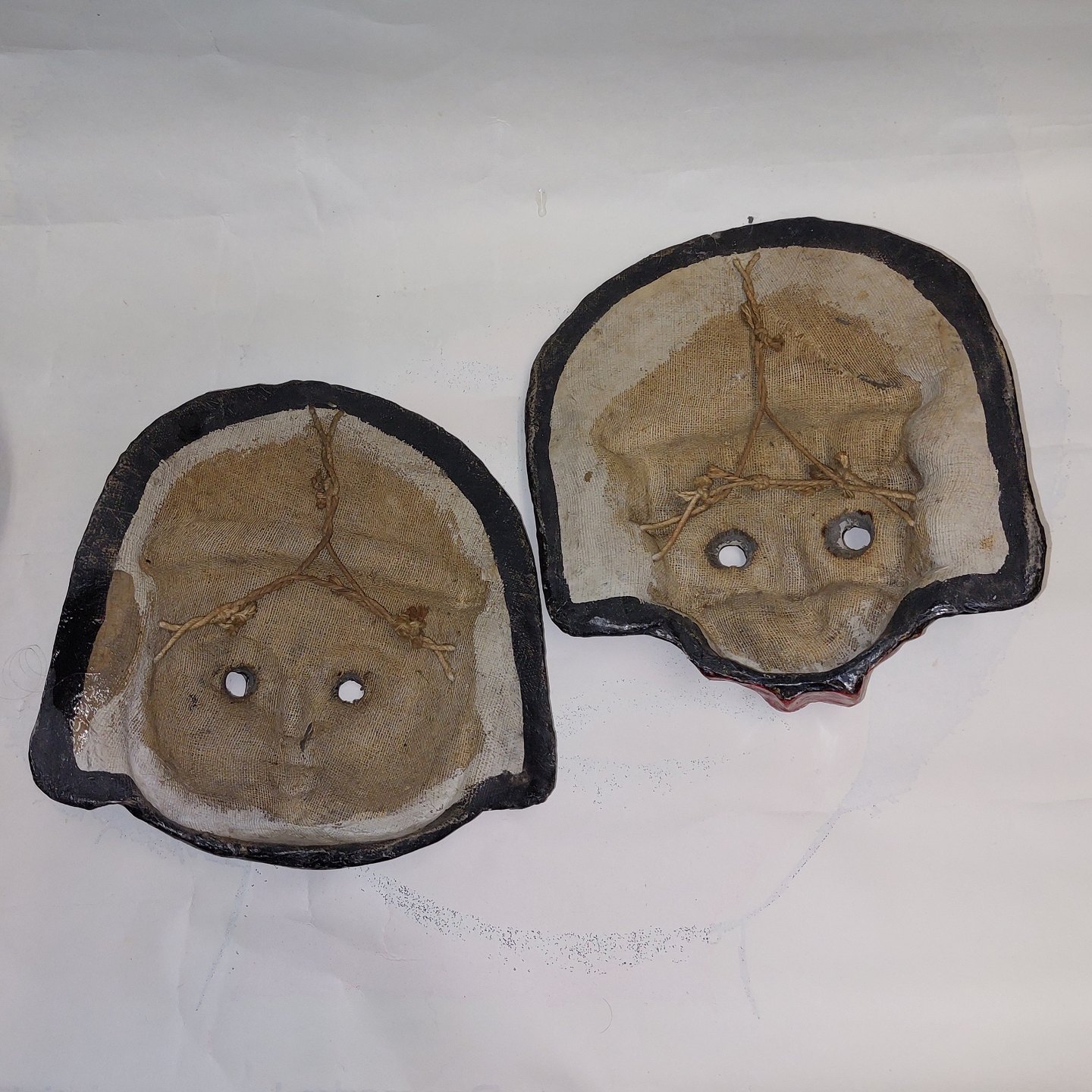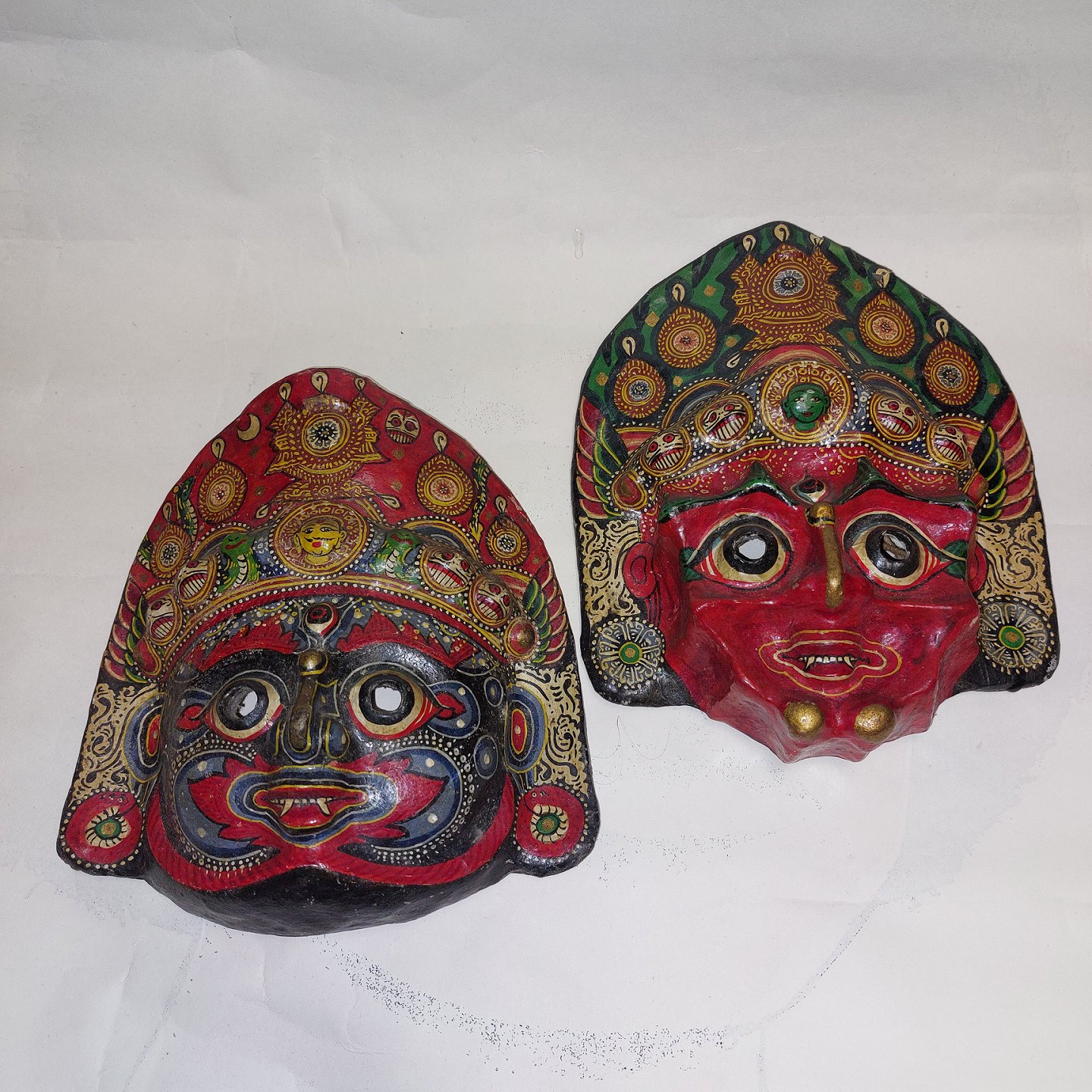 Pair of decorative painted masks In ceramics. Both appear to be in good condition with no damage or repairs. Made in India in the middle of the 20th century. H. 21 cm