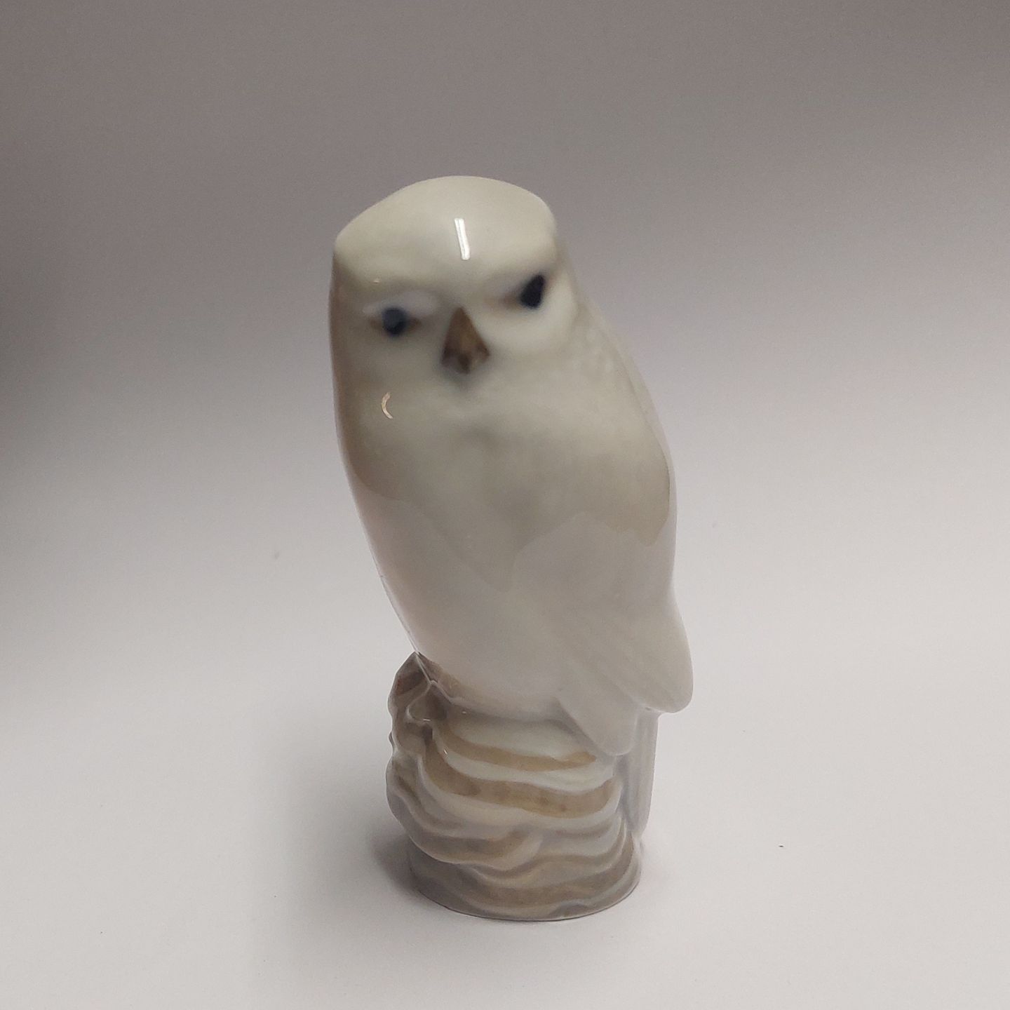 Royal Copenhagen: Figur af ugle. Designet af Th. Madsen i 1915. I god stand uden skader eller reparationer. 1. Sortering. Fabriksmærketpåbunden. Modelnummer 1741. Mål: 9 cm