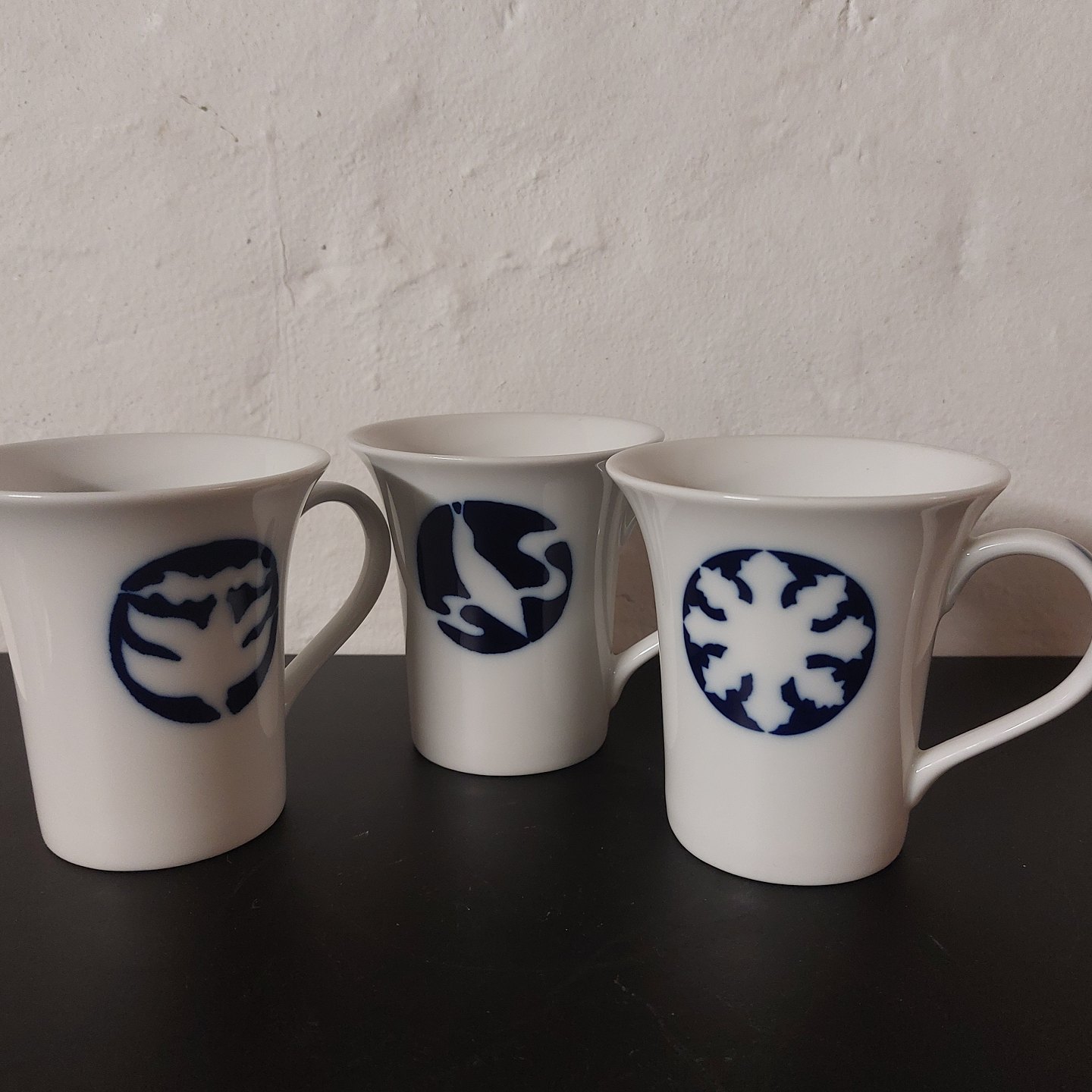 Hvidt krus i porcelæn med H. C. Andersen klip. Desigmet af Lin Utzon. I god stand. H. 10,5 cm