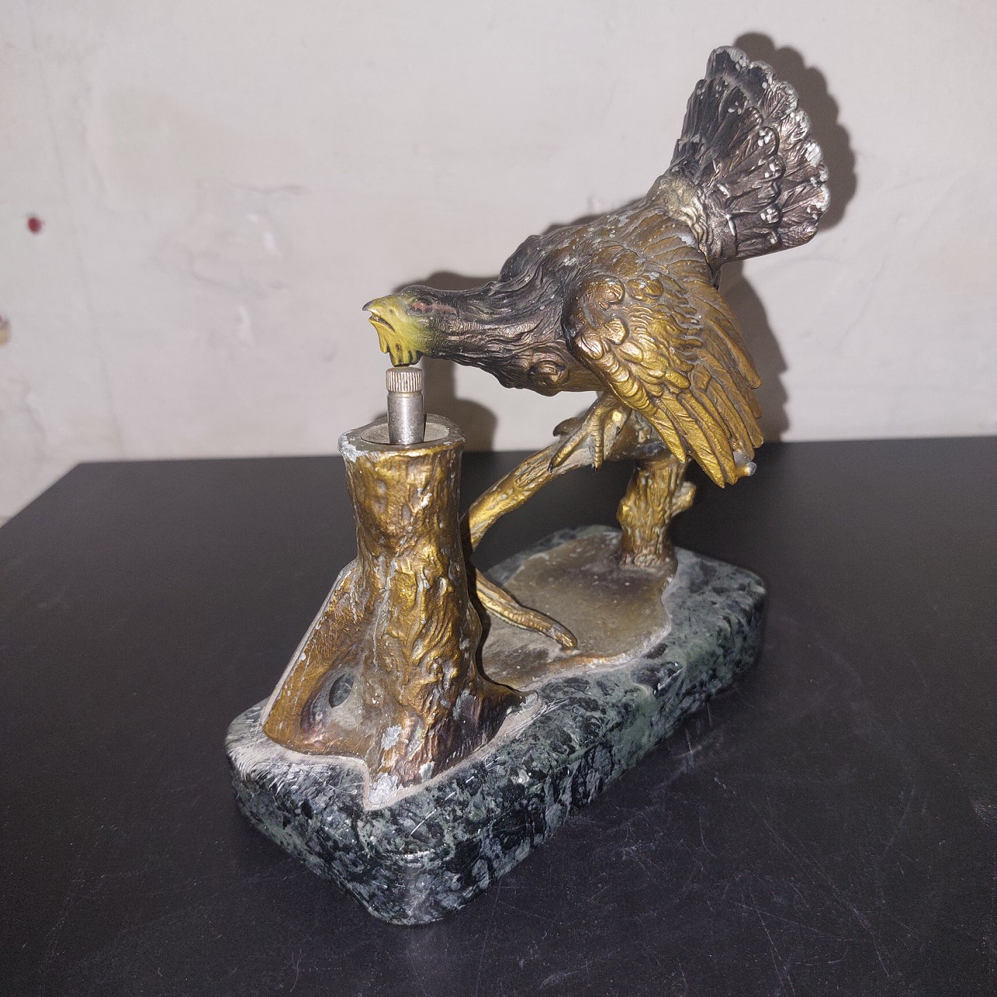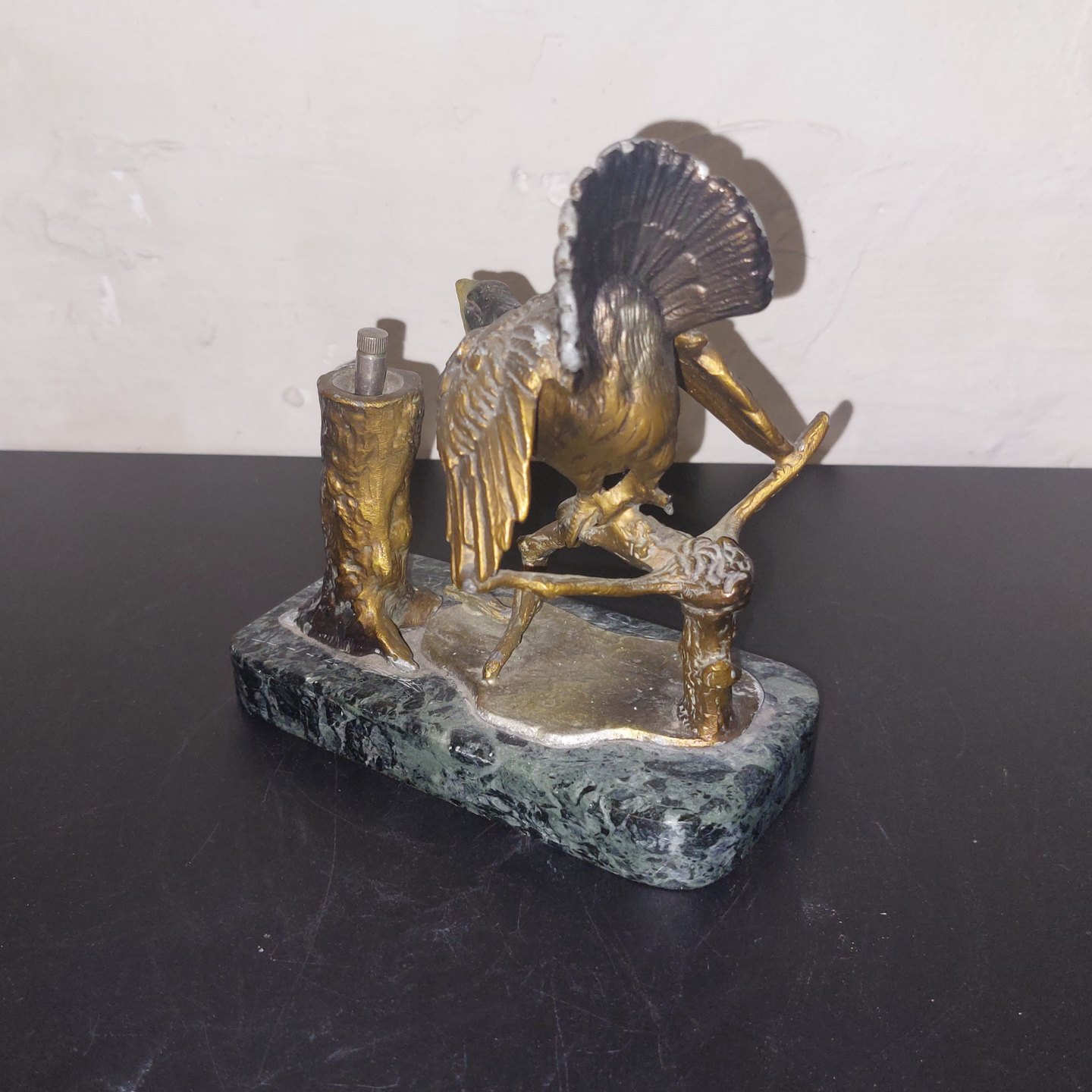 Bemalet figur af tjur på base ved siden af.træstub, der fungerer som fyrtøj. Fremstår I god funktionsduelig stand. Ingen skader eller reparationer. Ikke fabriksmærket. Mål: H. 15,5 cm. Basen måler 7 x 13,5 cm