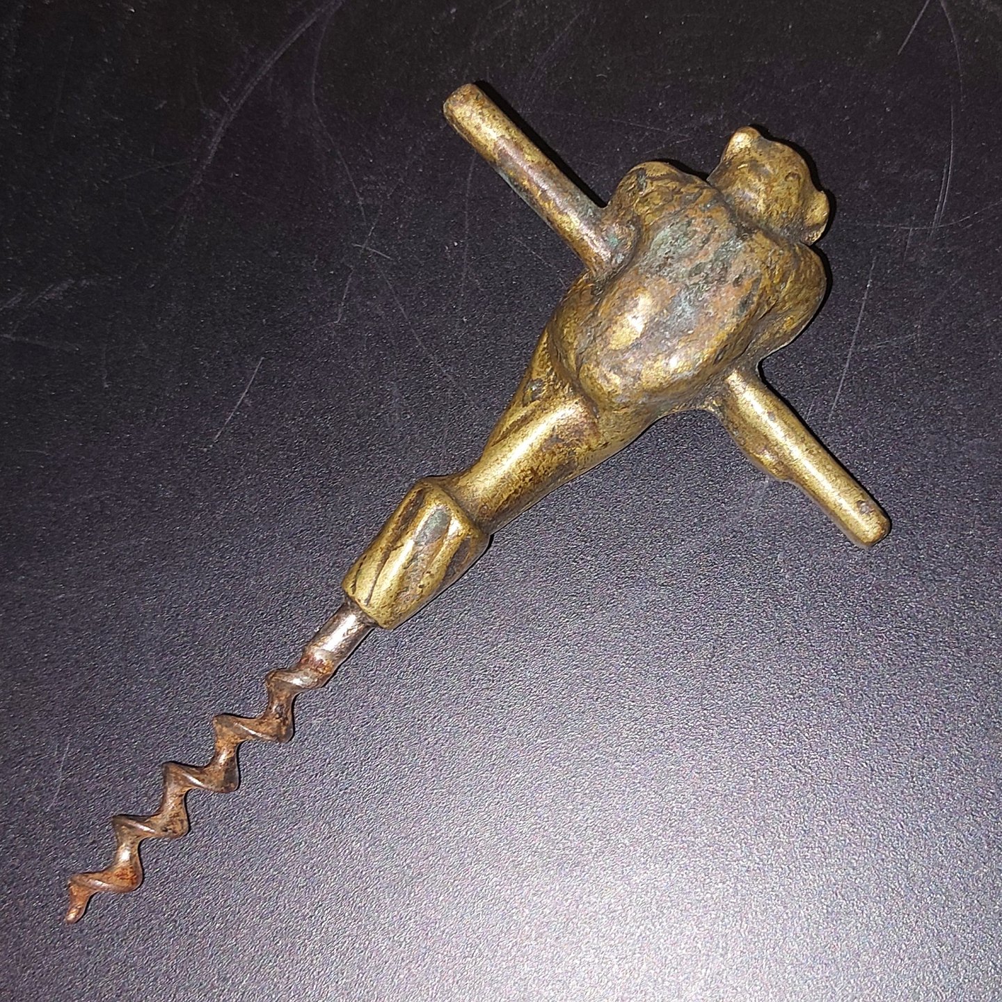 Danish corkscrew In the shape of a sitting or hanging monkey. Made in bronze around 1930. The screw a little rusty. Otherwise ready to be used.