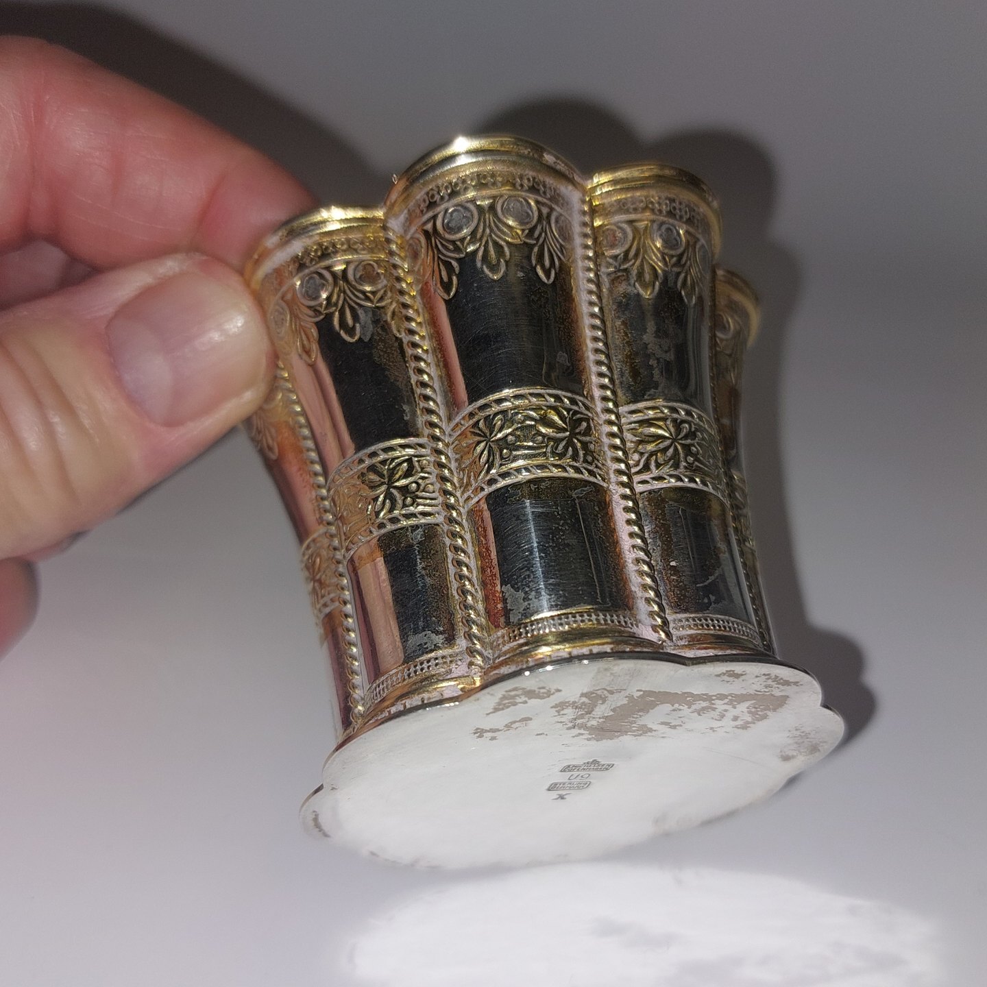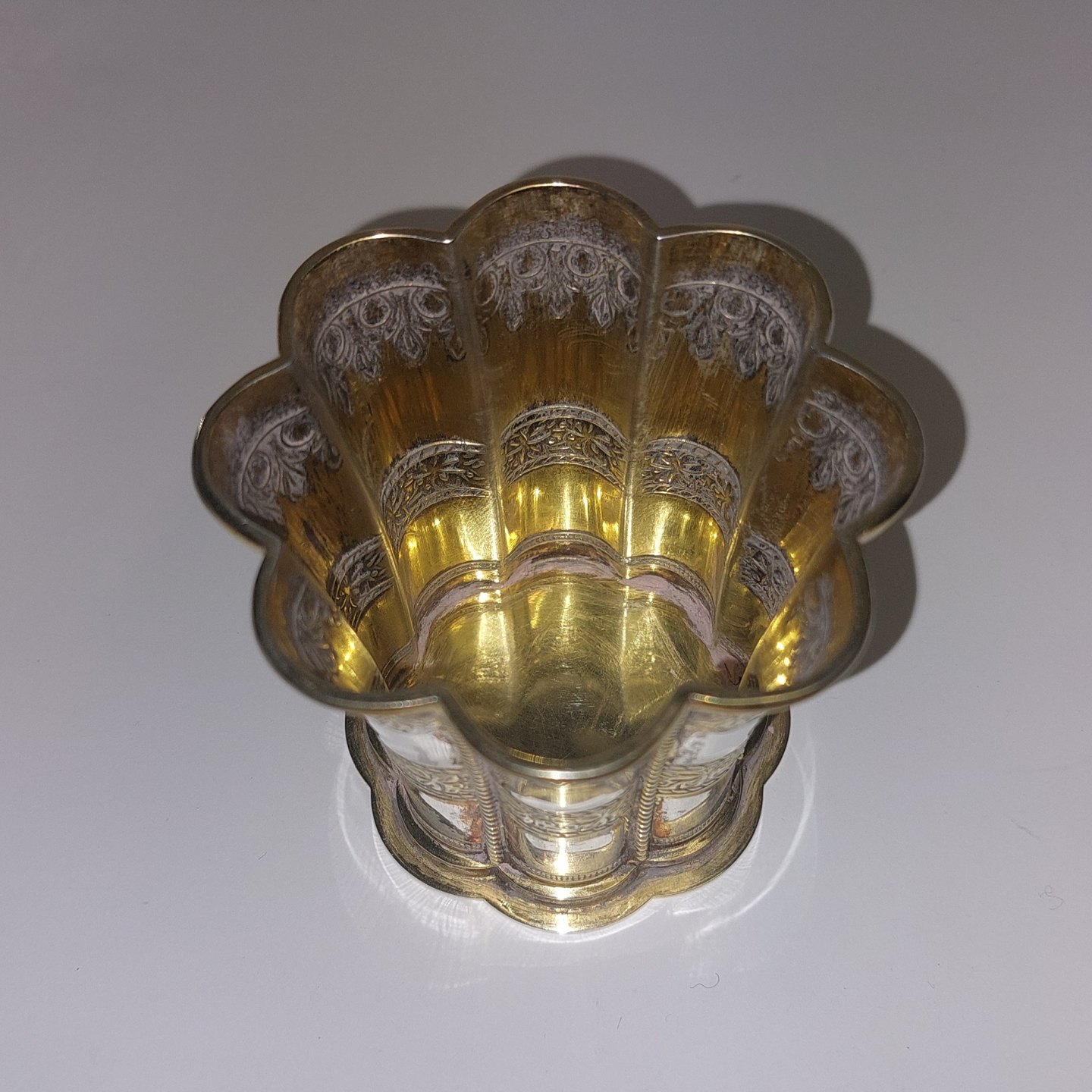 Anton Michelsen Margrethe bæger I sølv. Delvist forgyldt. Fremstår I god stand uden skader eller reparationer. Stemplet på bunden. H. 6 cm