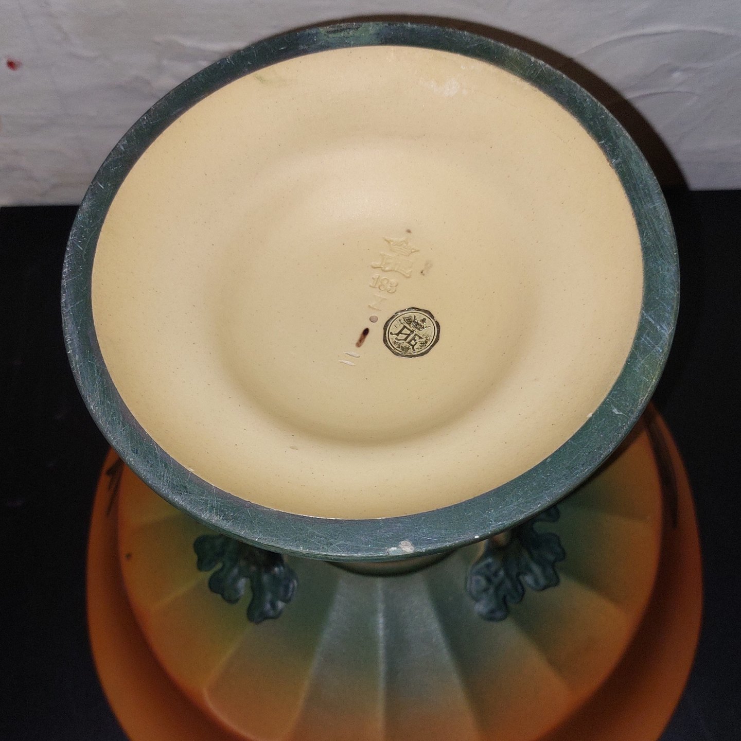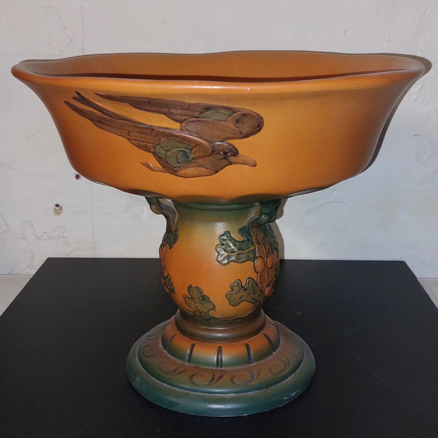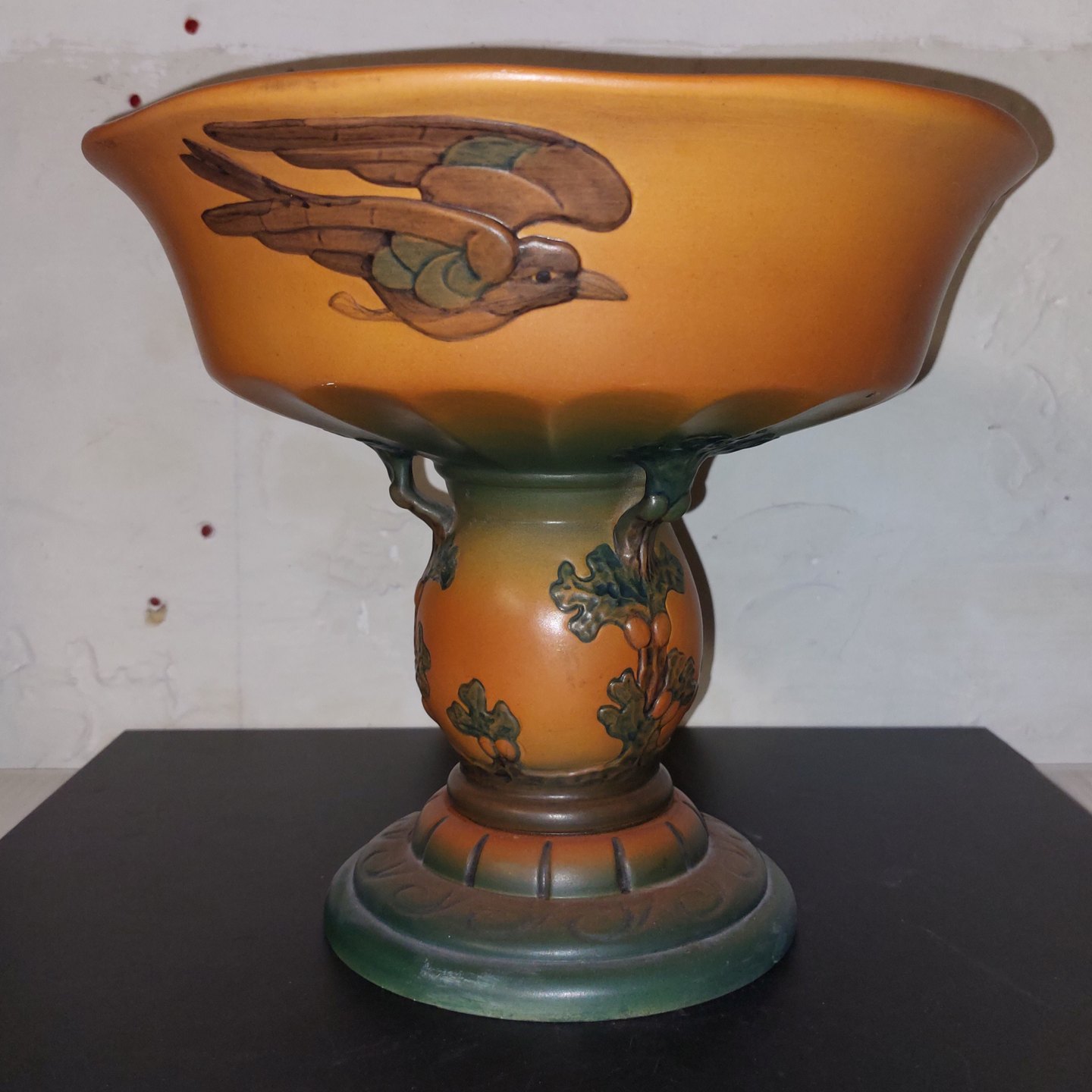 P. Ipsen: Stor opsats i keramik med dekoration med fugle, agern og bladværk. I god stand. Ingen skader eller reparationer. Fabriksmærket på bunden med PIE (Peter Ipsens Enke), krone og modelnummer 183. Endvidere påsat original papir label på bunden. Mål: H. 25 cm. Skålens diameter er 29,5 cm