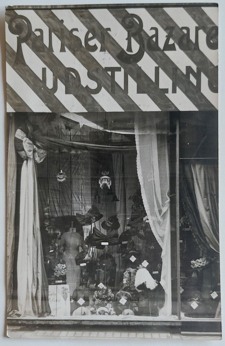 Postkort: Butiksfacade Pariser Bazare Udstilling I 1914