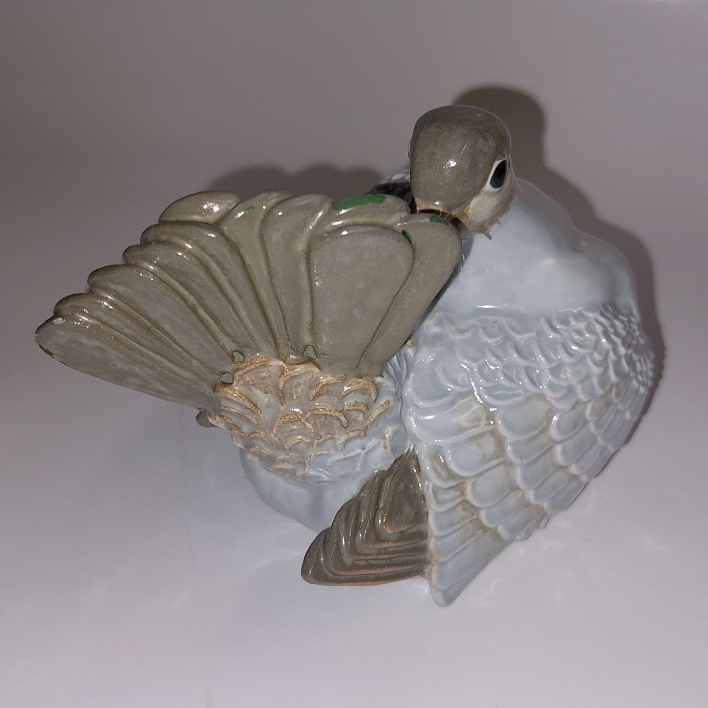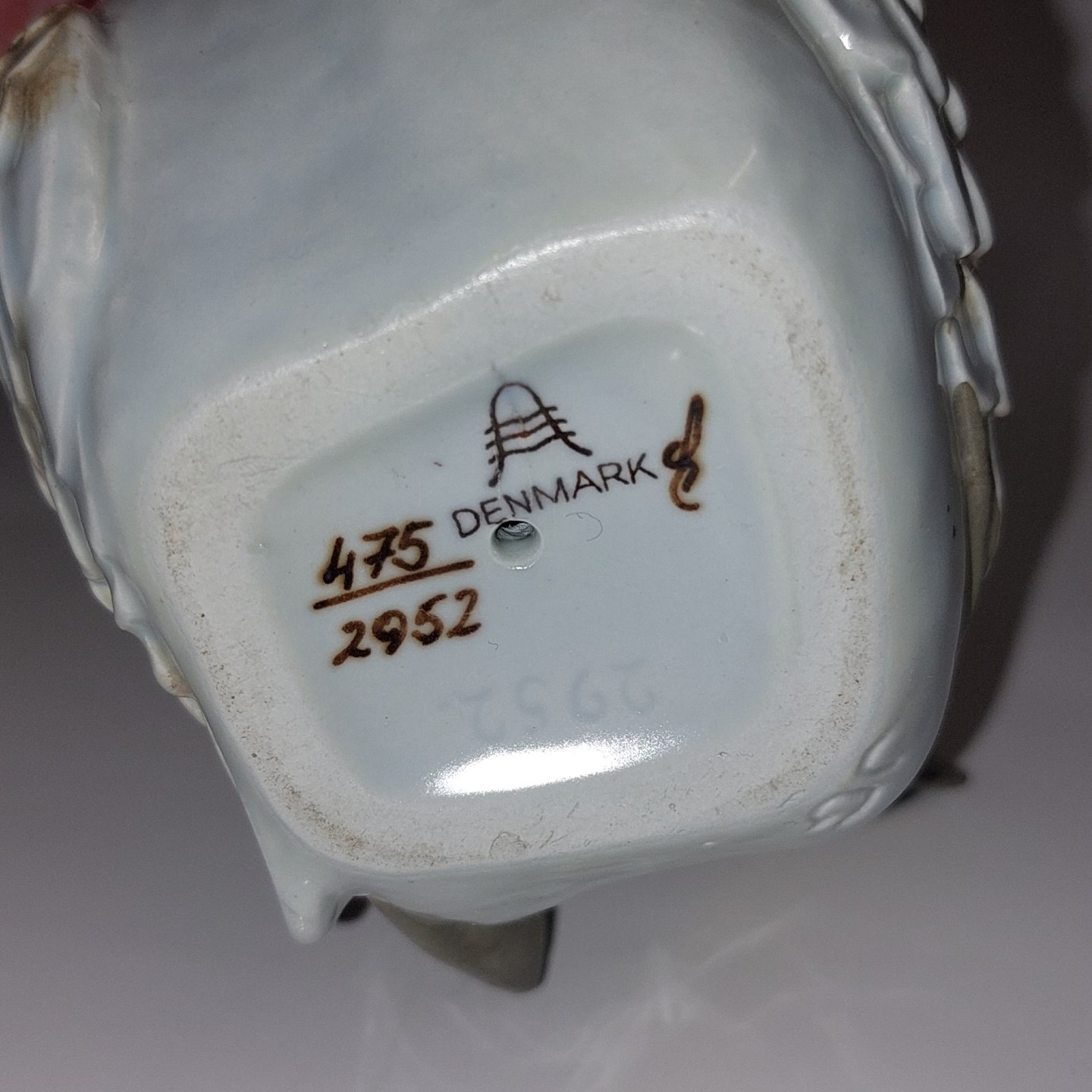 Aluminia Due Galpagos Figur i fajance med modelnummer 2952. Designet af Jeanne Grut. H. 8,5 cm. I god stand uden skader eller reparationer Fabriksmærket på bunden. Signeret med J. G
