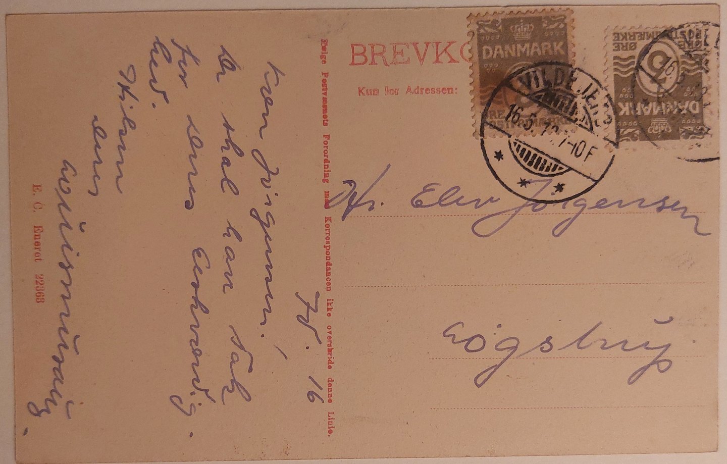 Postkort: Vildbjerg station (ved Herning egnen) Annulleret VILDBJERG i 1916. I god stand
