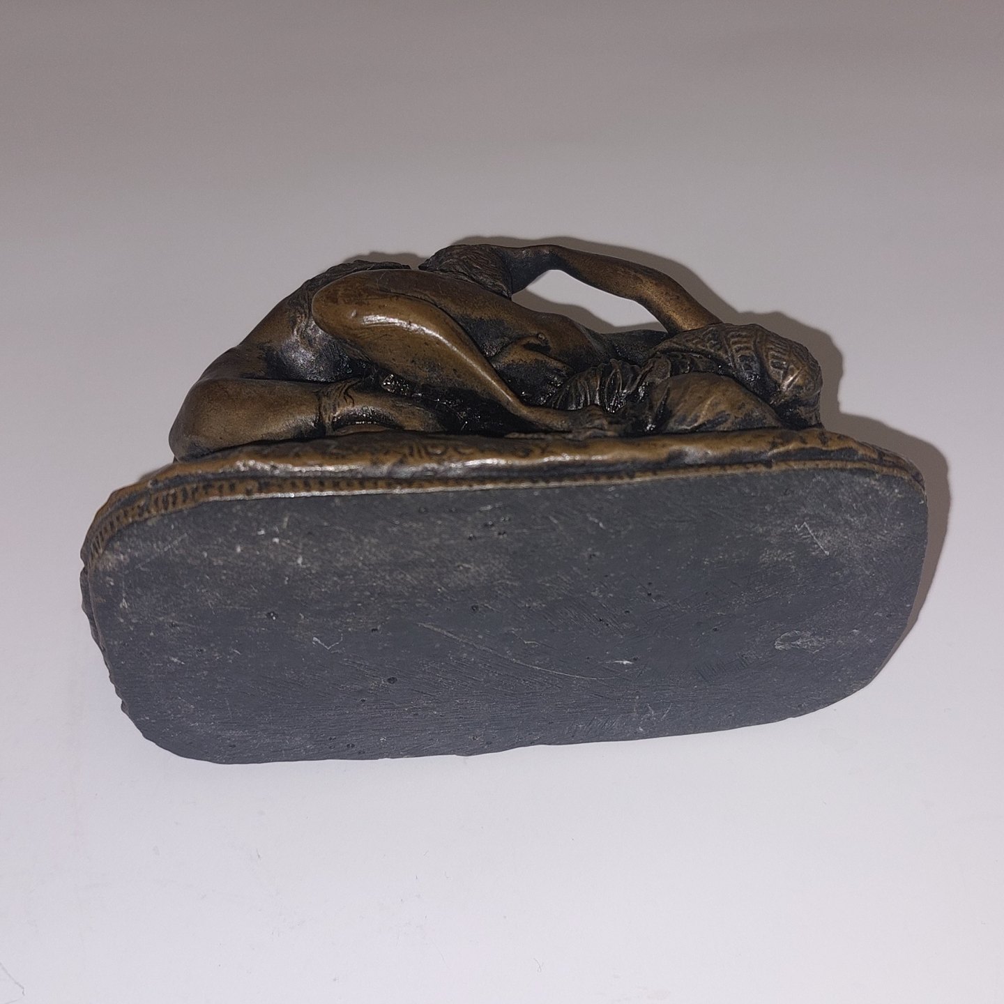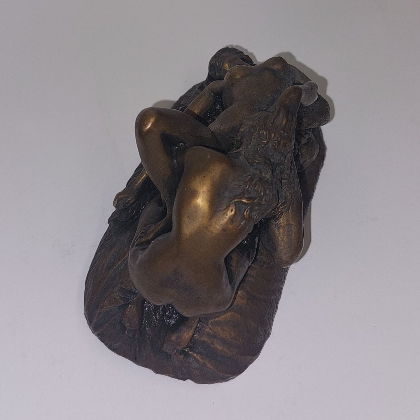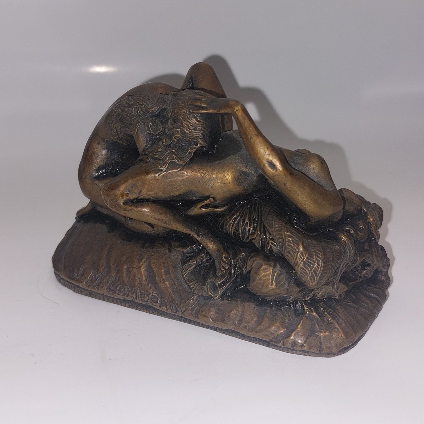 J. M. Lambeaux: Heavy bronze patinated figure of two women in love. In good condition. Good condition with no damage or repairs. Signed by the artist on one side of the plinth. Weighs 1100 grams. H. 7.3 cm L. 11.5 cm.