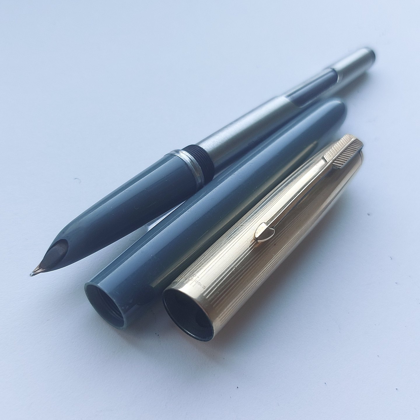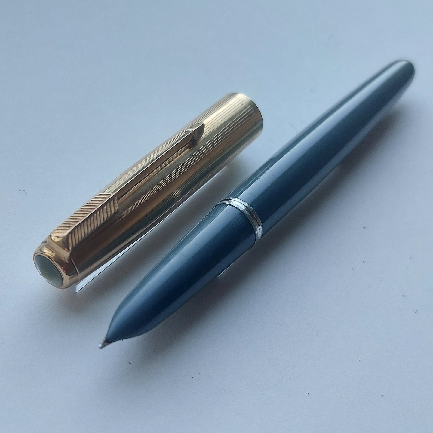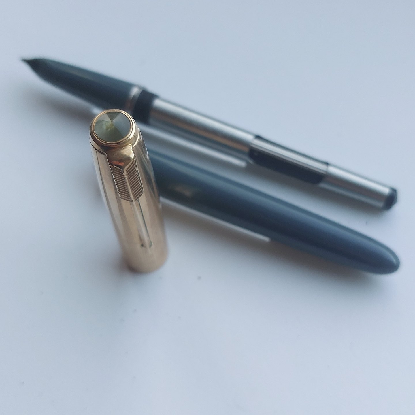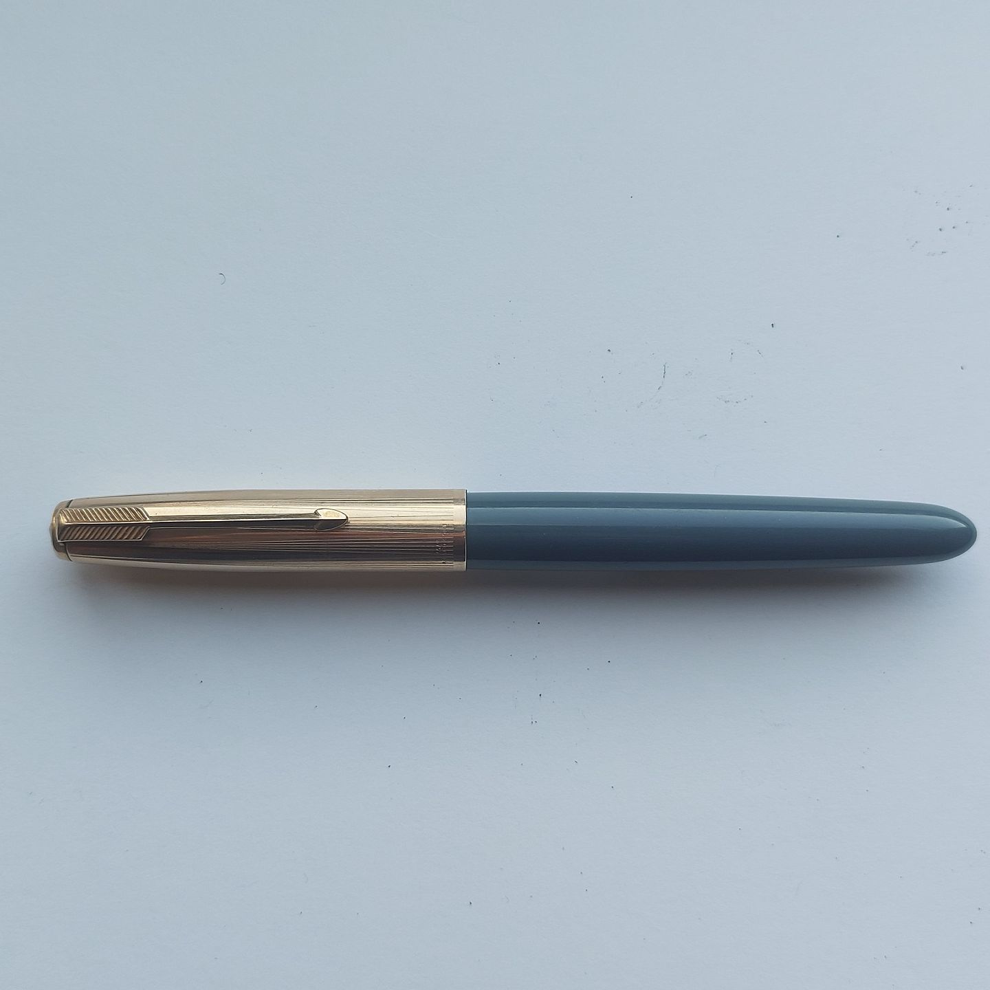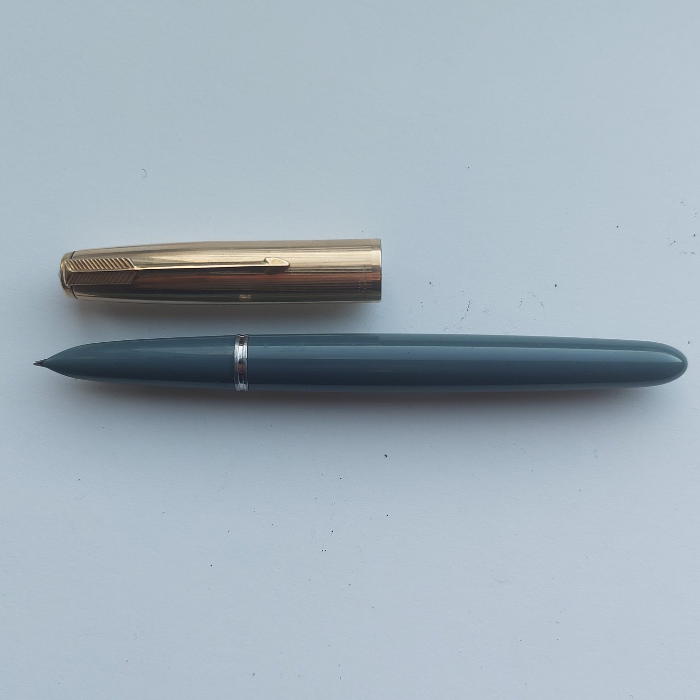 Gray Parker 51 fountain pen with gold-double cap