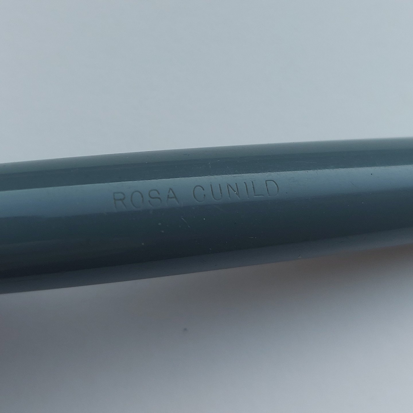 Gray Parker 51 fountain pen with gold double cap with mother-of-pearl button on the top of the cap. Engraved personal name. The fountain pen is functional and ready to be used with the old rubber sac. Appears in good condition. L. 13.5 cm.