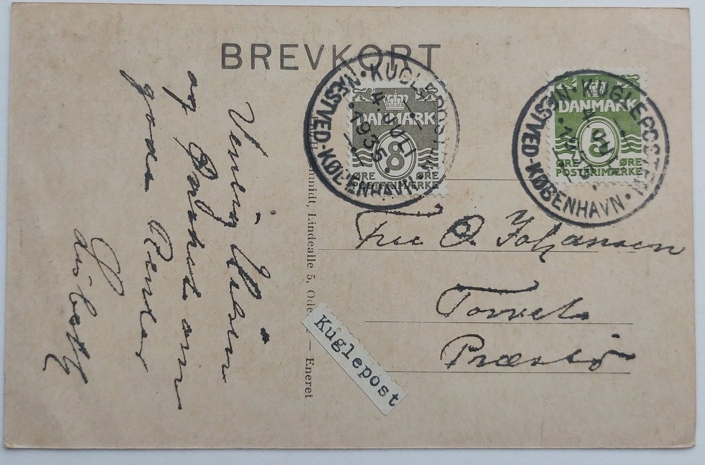 Postkort: Præstø by set fra Kirketårnet (kuglepost) Annulleret Kuglepost NÆSTVED-KØBENHAVN I 1935. I god stand
