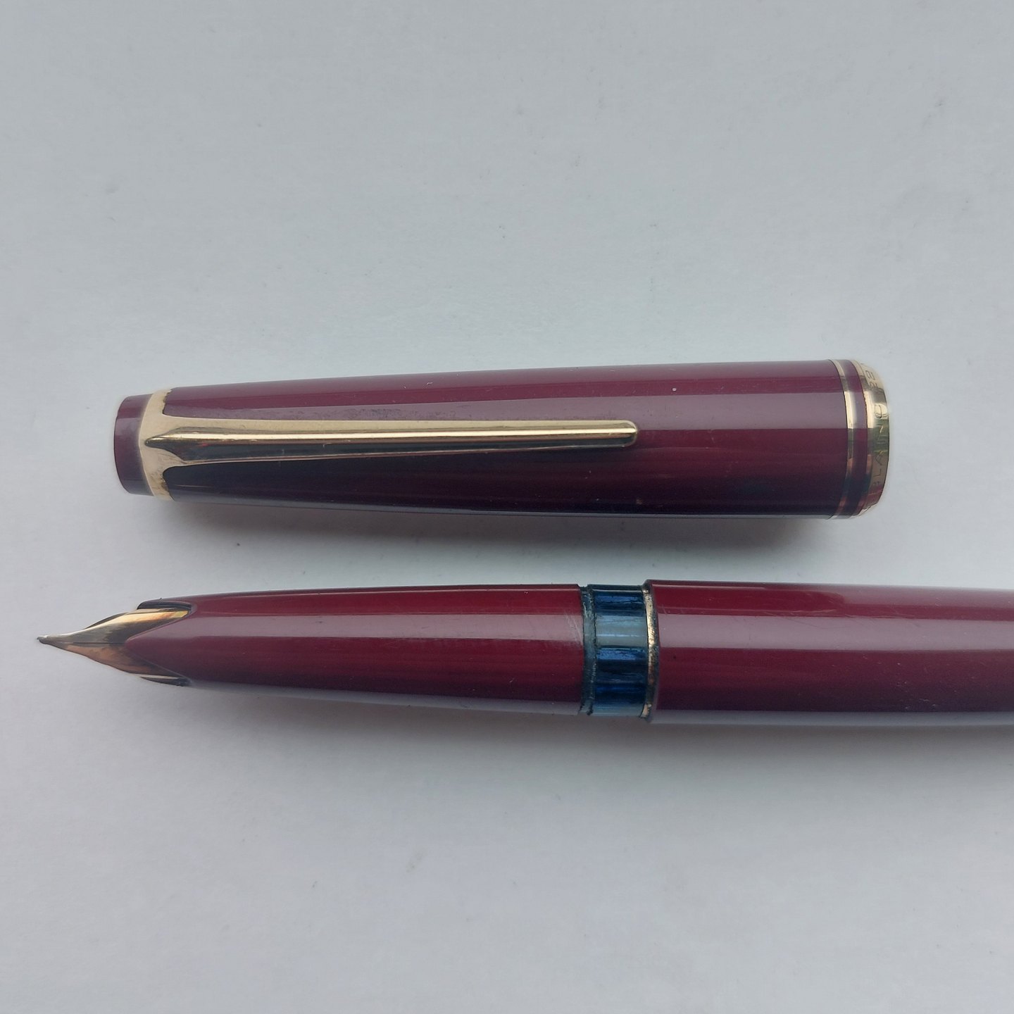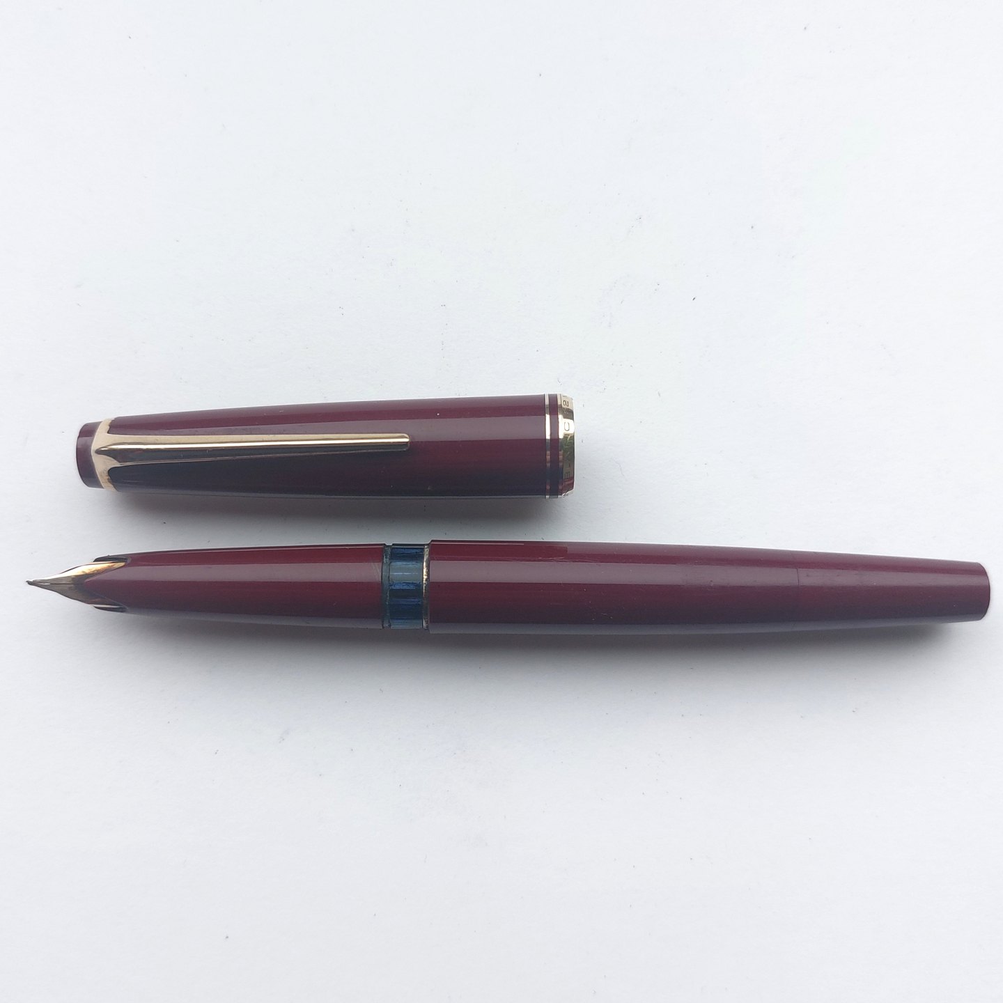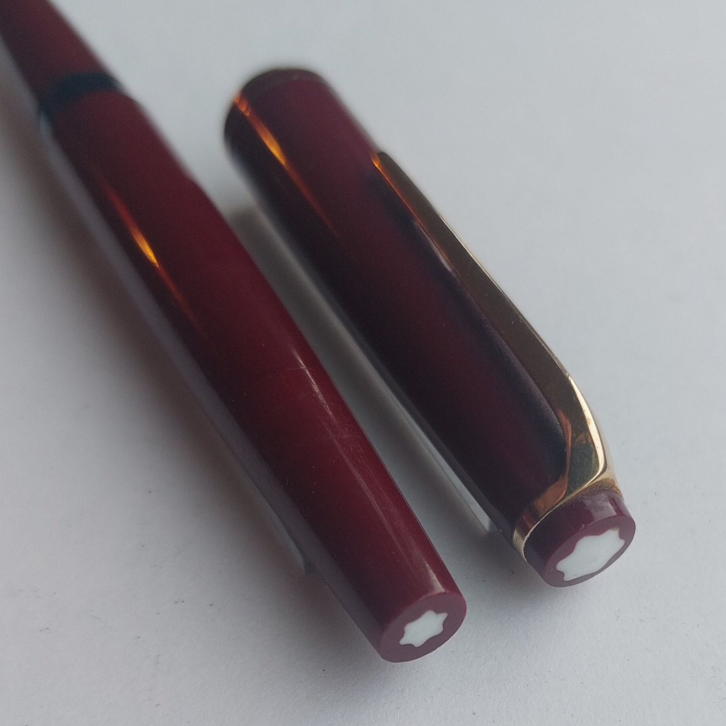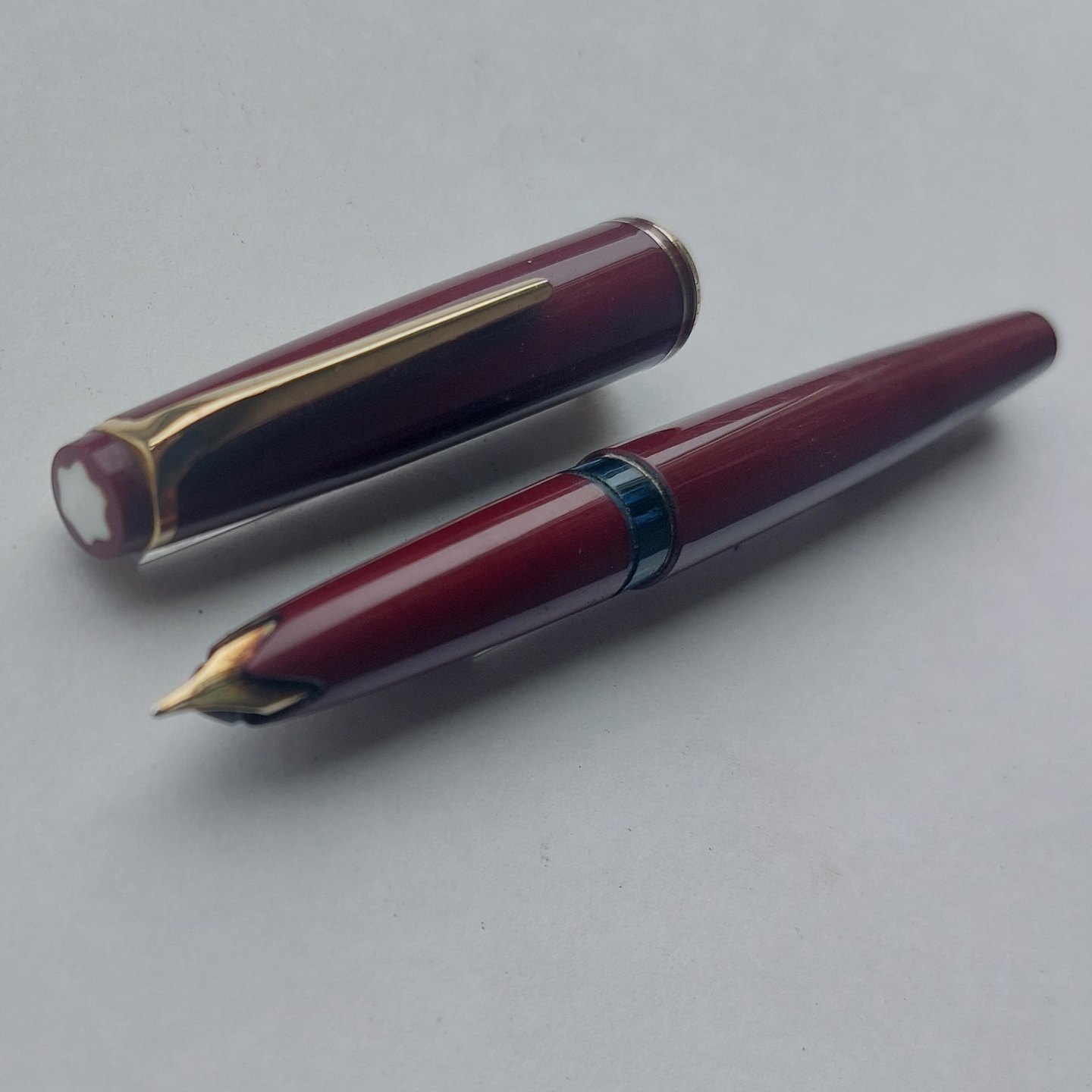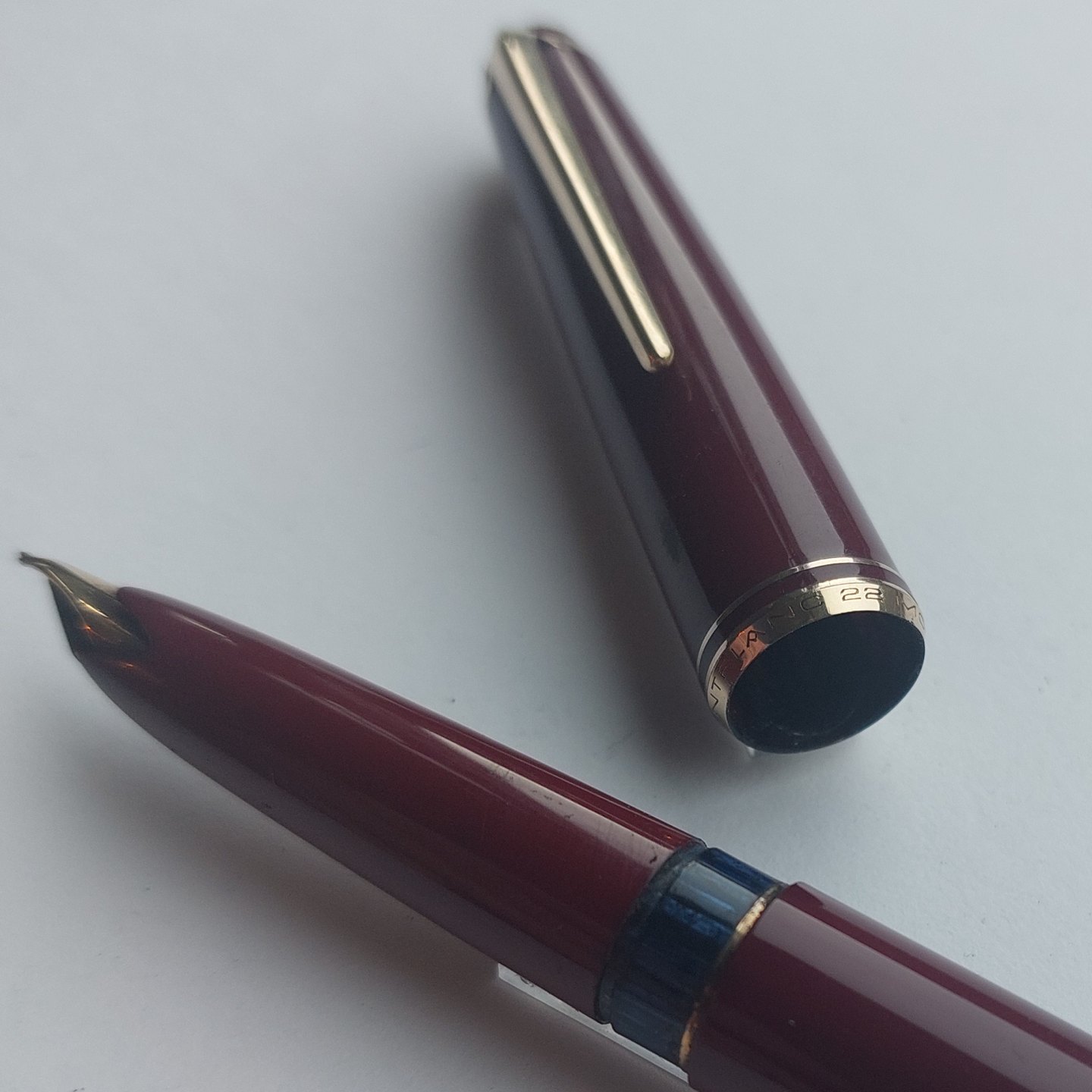 Slank bordeaux Montblanc nr. 22 fyldepen. Piston filler. Klar til at blive brugt. Alle dele originale Montblanc dele inclusiv 14 karat guld spids. L. 13 cm