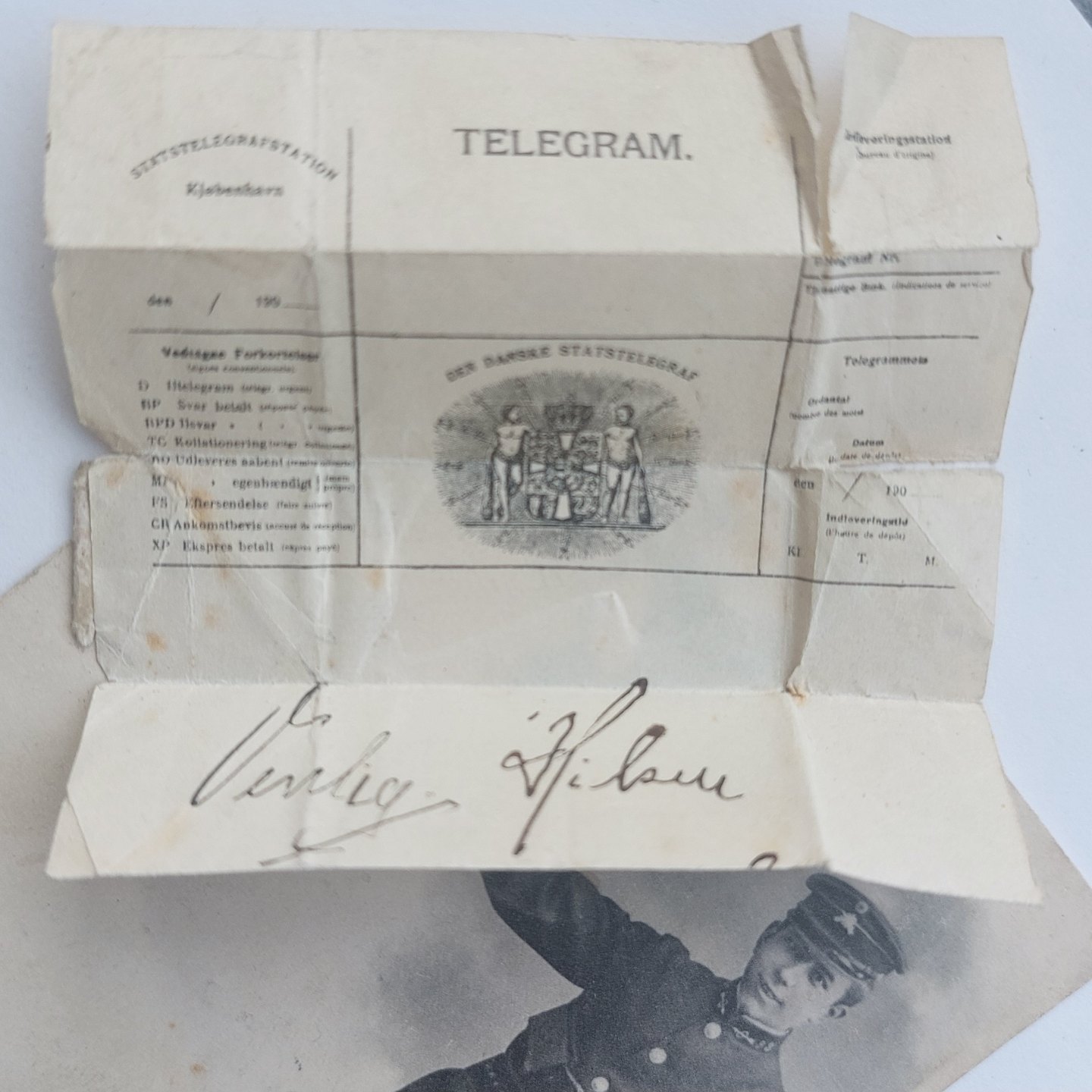 Postkort: Bud i uniform på cykel med telegram. Annulleret NÆSTVED i 1904. Mindre "hul" i nederste venstre hjørne. Lidt overflade brugsspor.Usædvanligt postkort. Stenders Forlag
